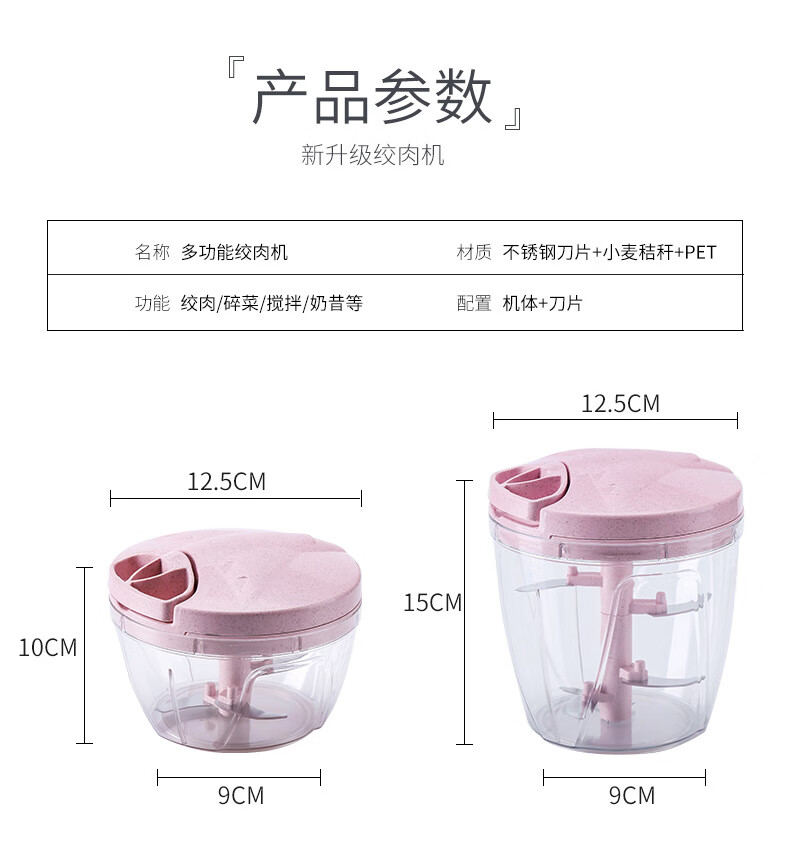 Hand-pulled meat grinder household small mixer juicer multi-function stuffing machine 900ml hand-pulled vegetable shredder Nordic blue