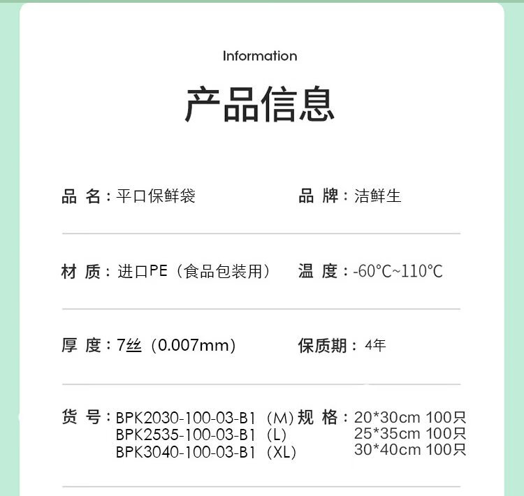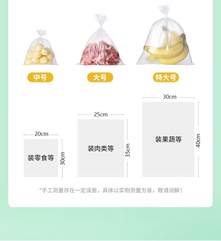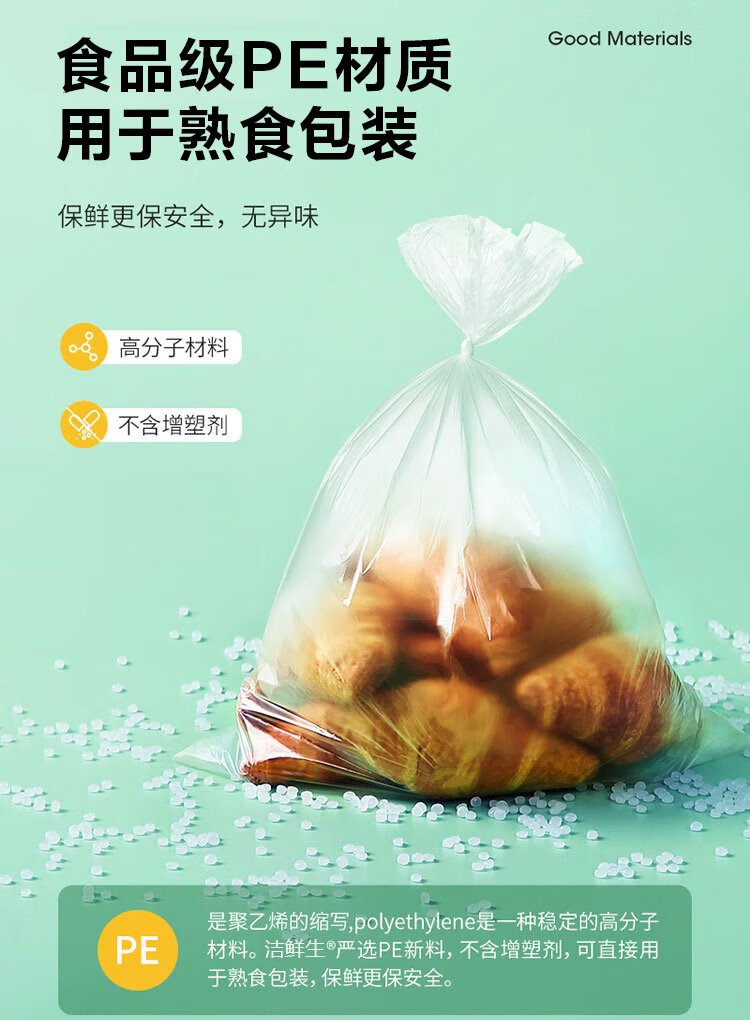 Jie Xiansheng fresh-keeping bag food grade point-break packaging convenient bag kitchen disposable plastic bag medium size 100 pieces 20*30cm