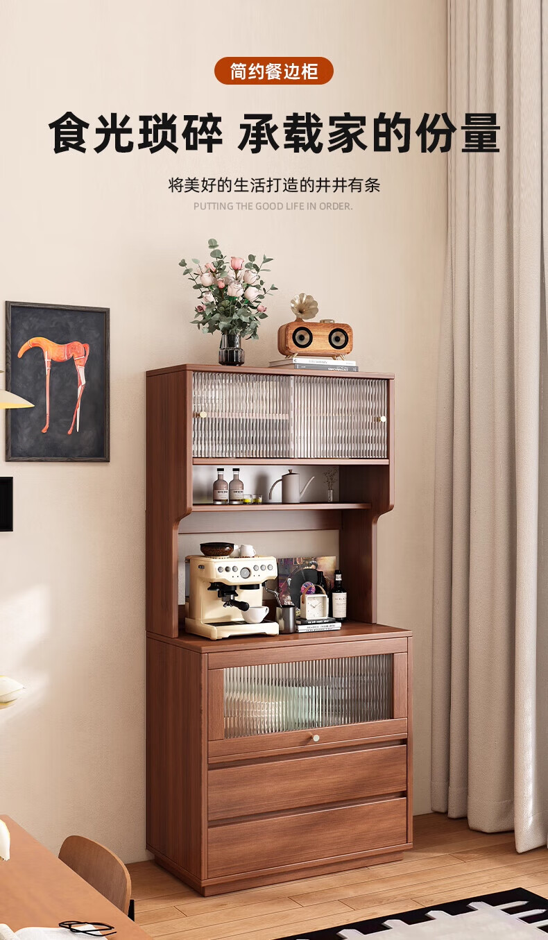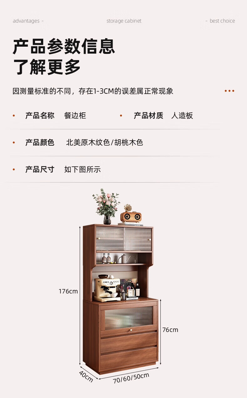 Tea cabinet, side cabinet, storage cabinet, narrow cabinet against the wall, household small water bar, antique style side cabinet, storage cabinet, high cabinet, door-to-door delivery, walnut color | 50*40*176cm