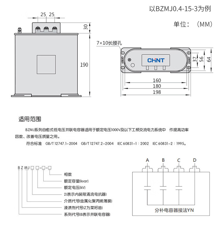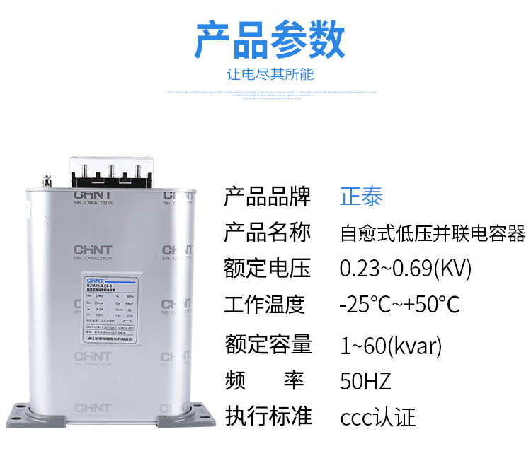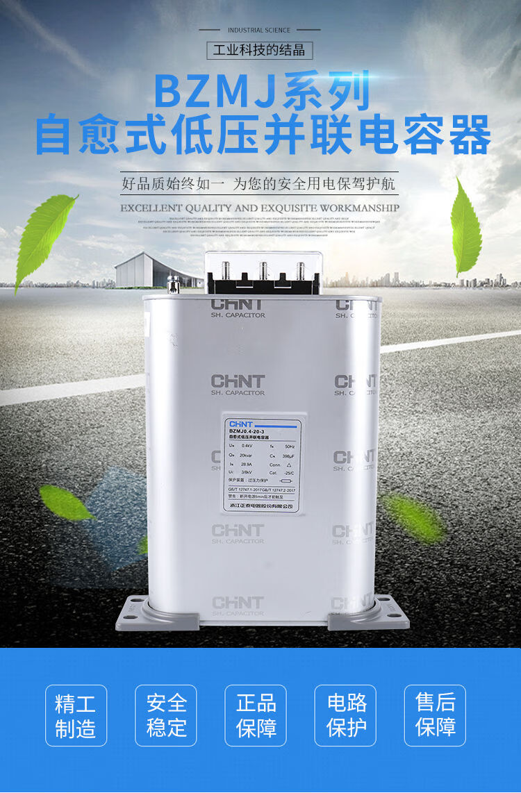 Chint self-healing low-voltage parallel capacitor BZMJ0.4-30-3 power compensator 16-3/20-3/25-3 BZMJ0.4-50-3