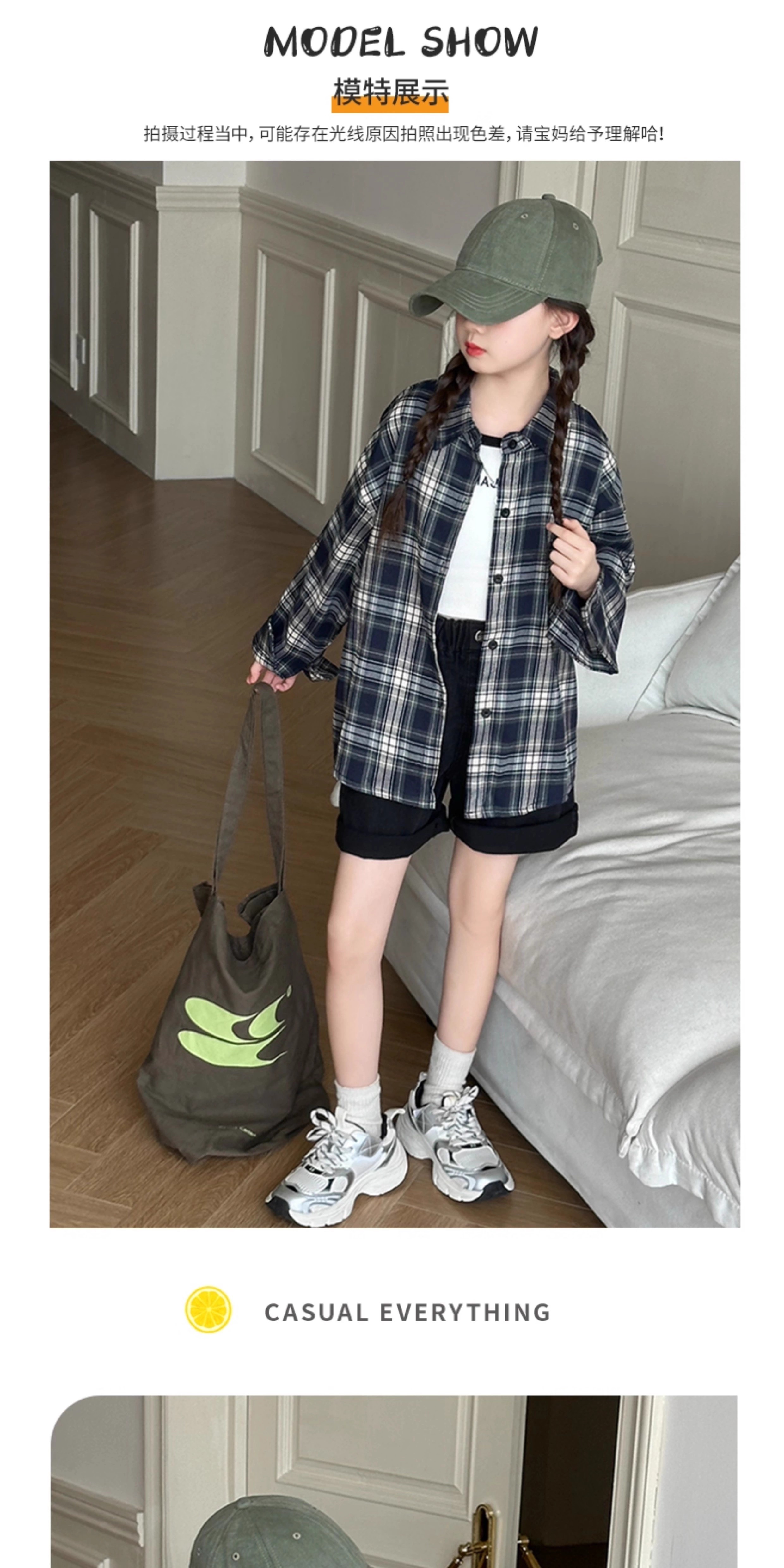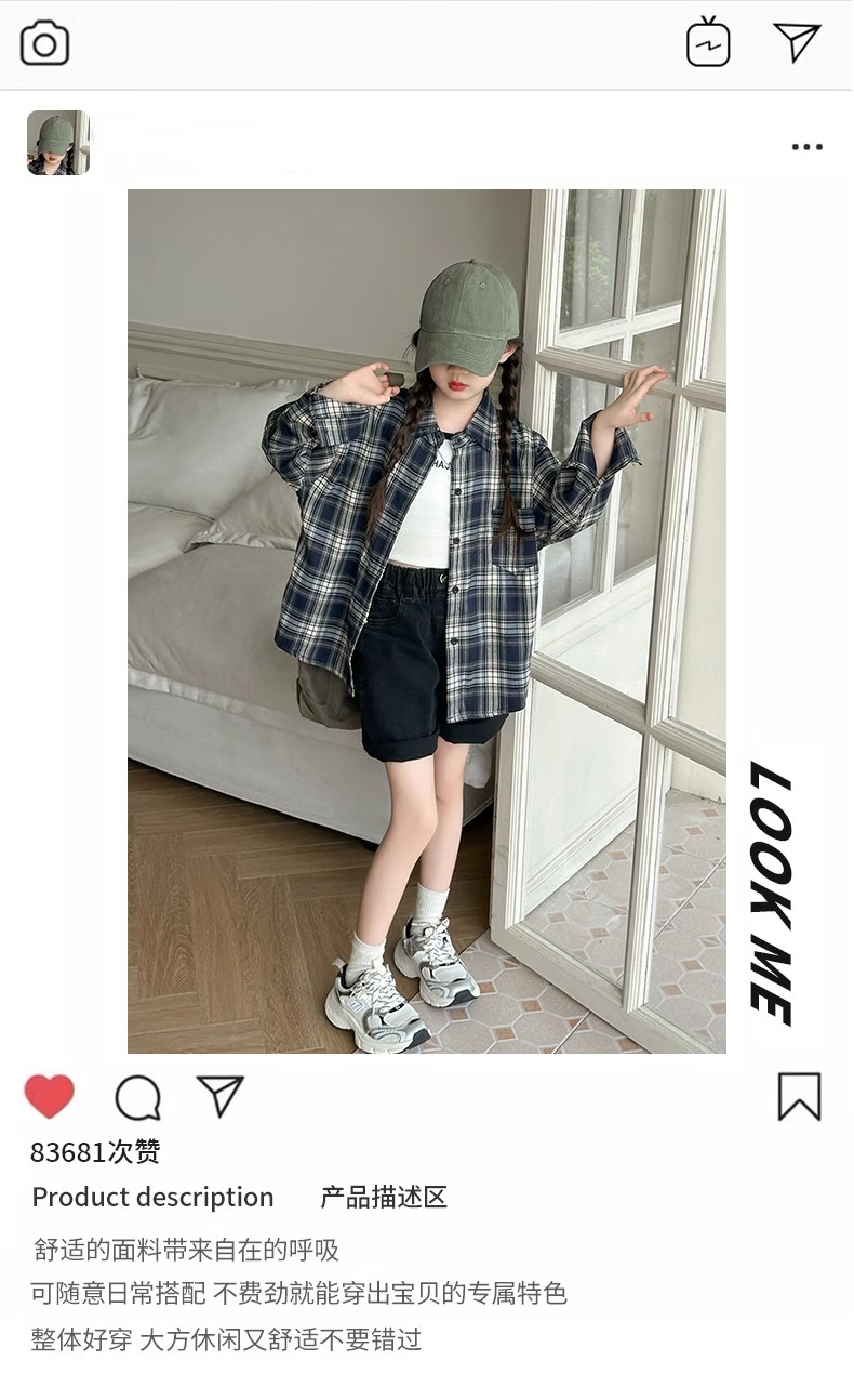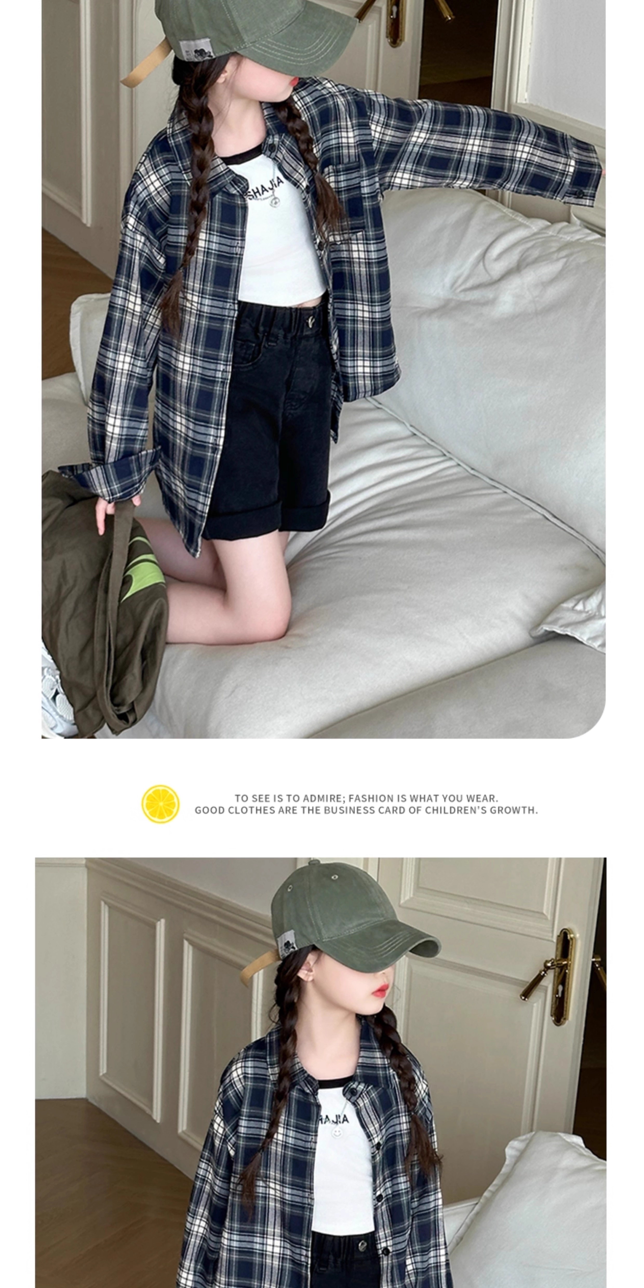 Girls' plaid shirt, spring and autumn, Korean style lazy style long-sleeved coat for older children, autumn children's fashionable shirt, autumn wear, navy 150