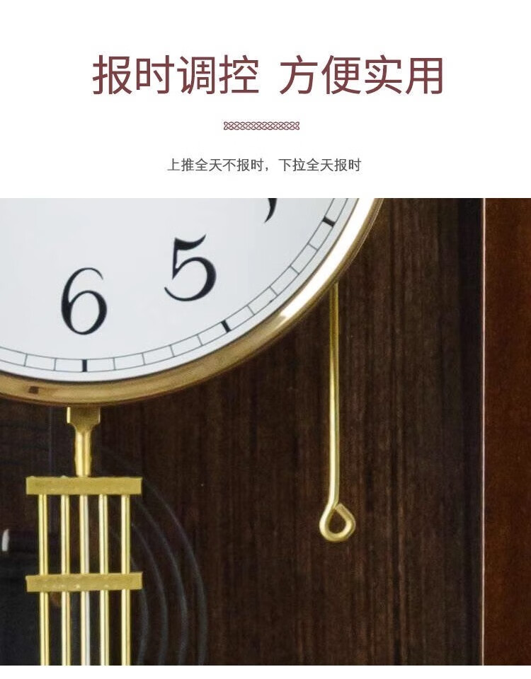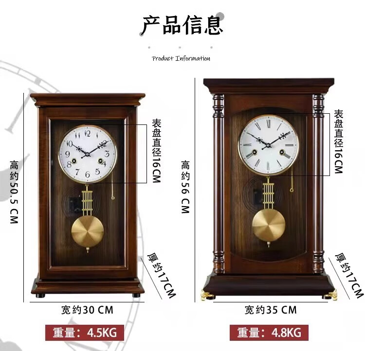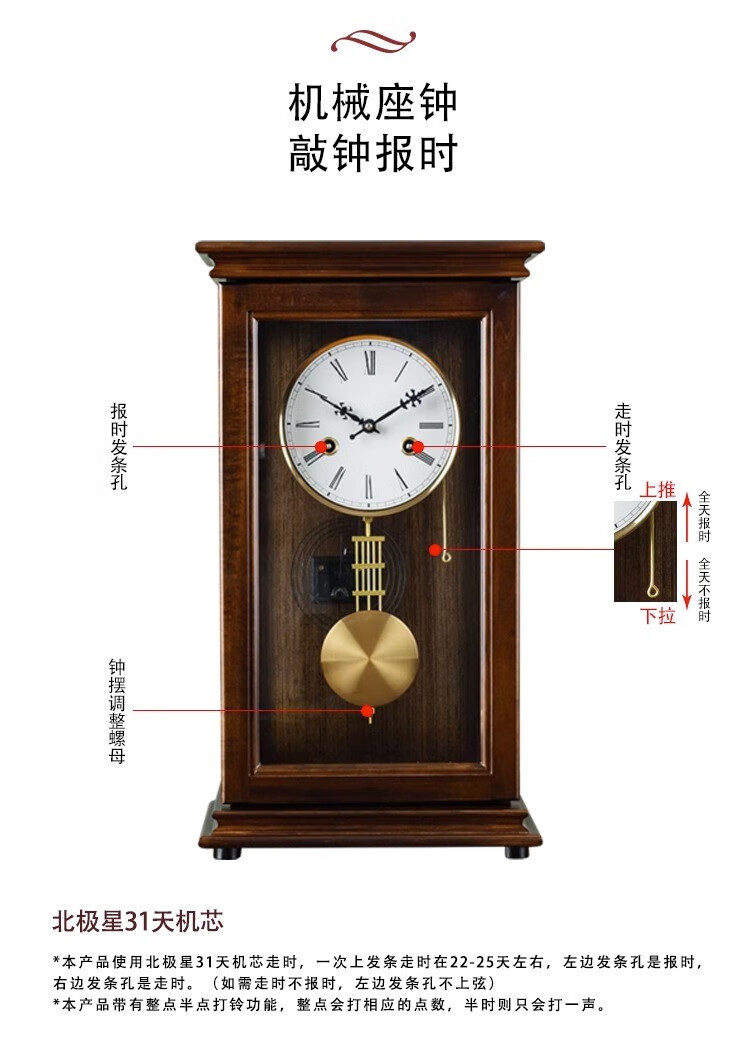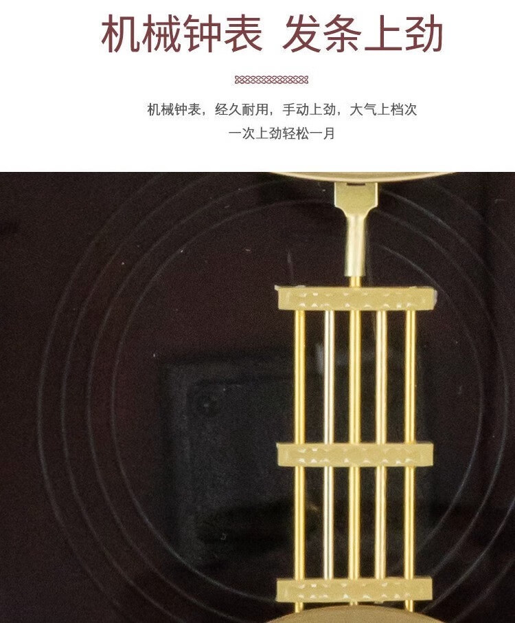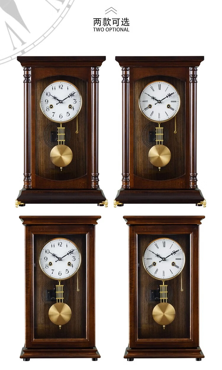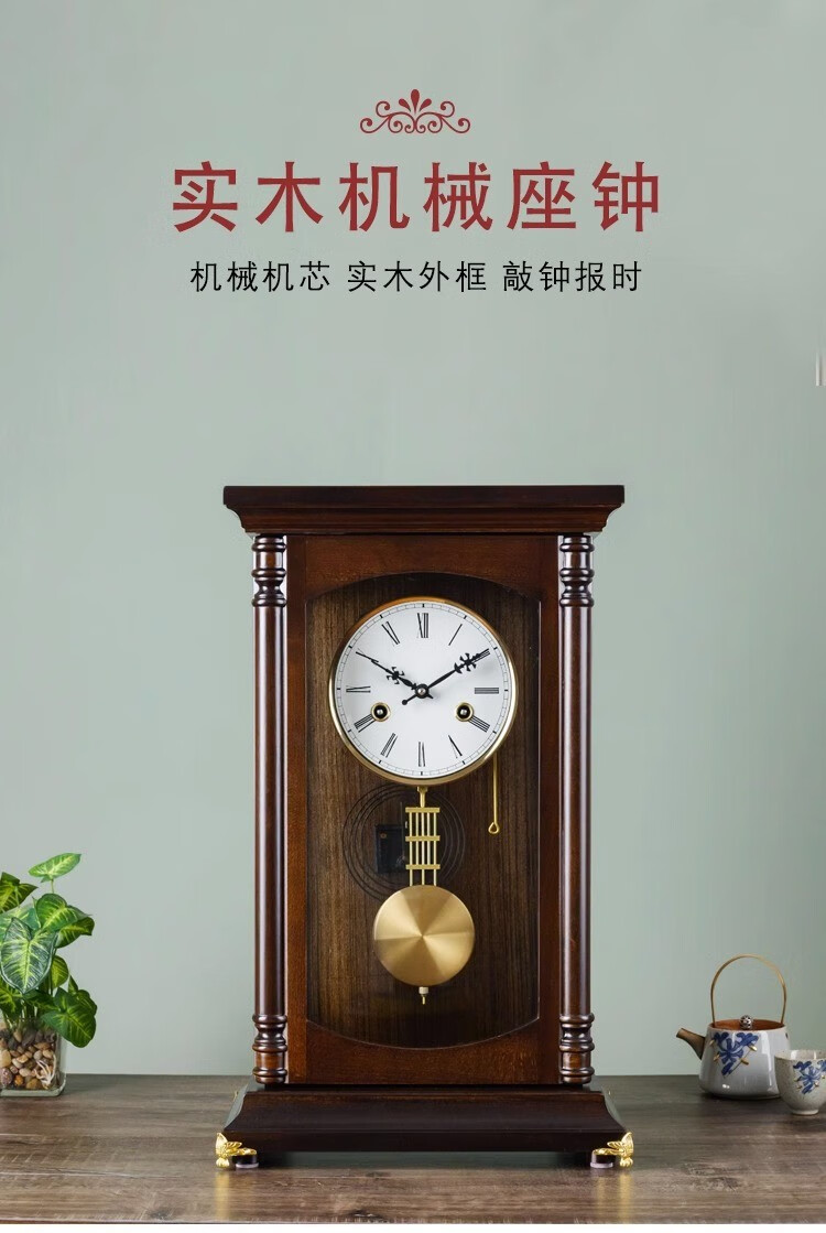 Honghe New Chinese Table Clock Copper Spring Movement Mechanical Table Clock Retro Simple Solid Wood Clock Time Living Room Ornament Toon Wood, New Gold Base 56cm Color Affected by Light Arabic Dial