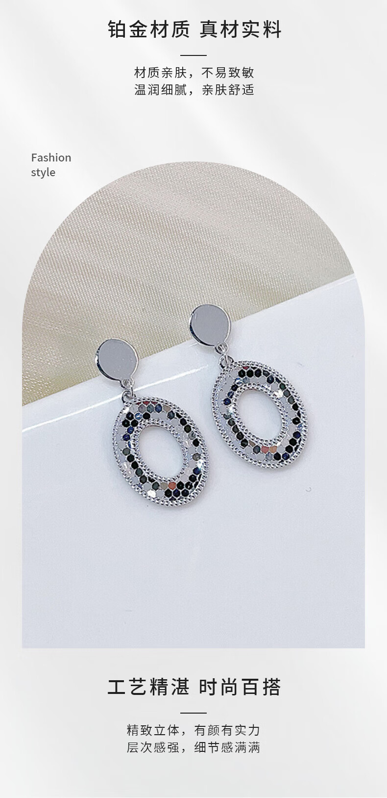 China Gold (CHINA GOLD) platinum earrings minimalist geometric earrings as a gift for your girlfriend as a gift, about 5.17g