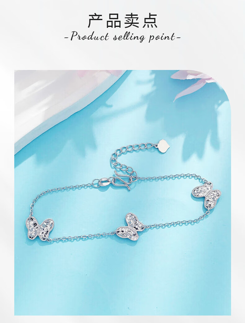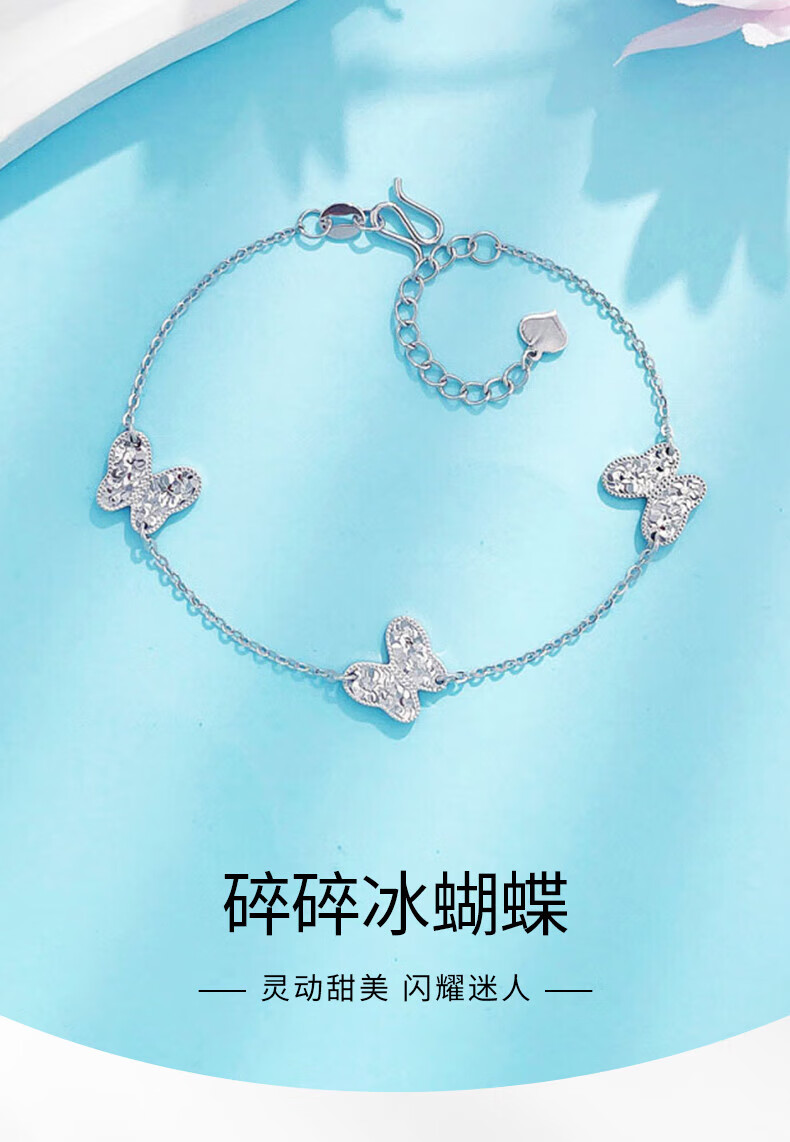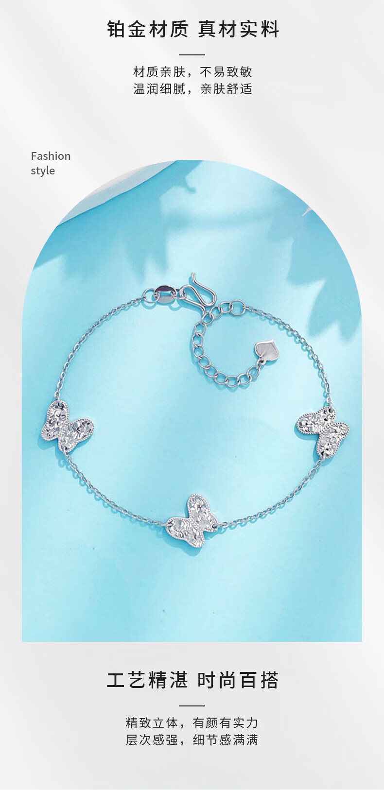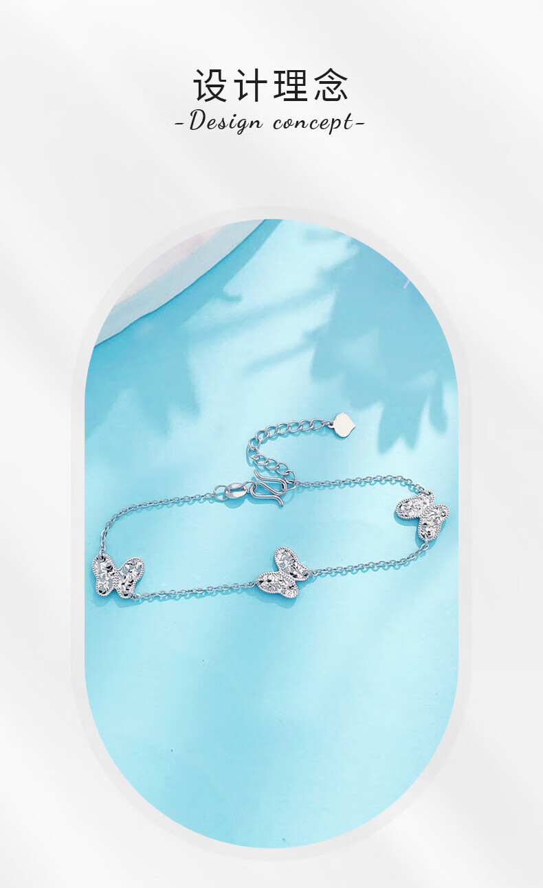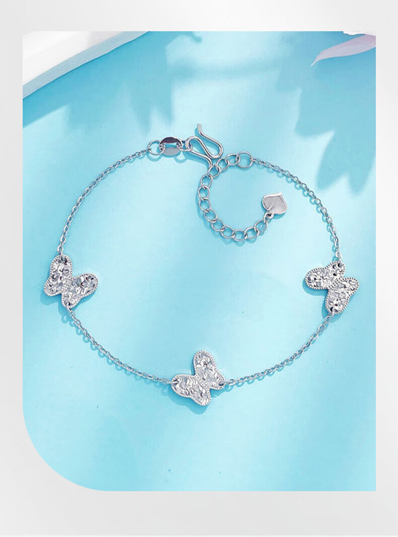 CHINA GOLD Platinum Solid Adjustable Crushed Ice Morpho Butterfly Bracelet About 5.65g