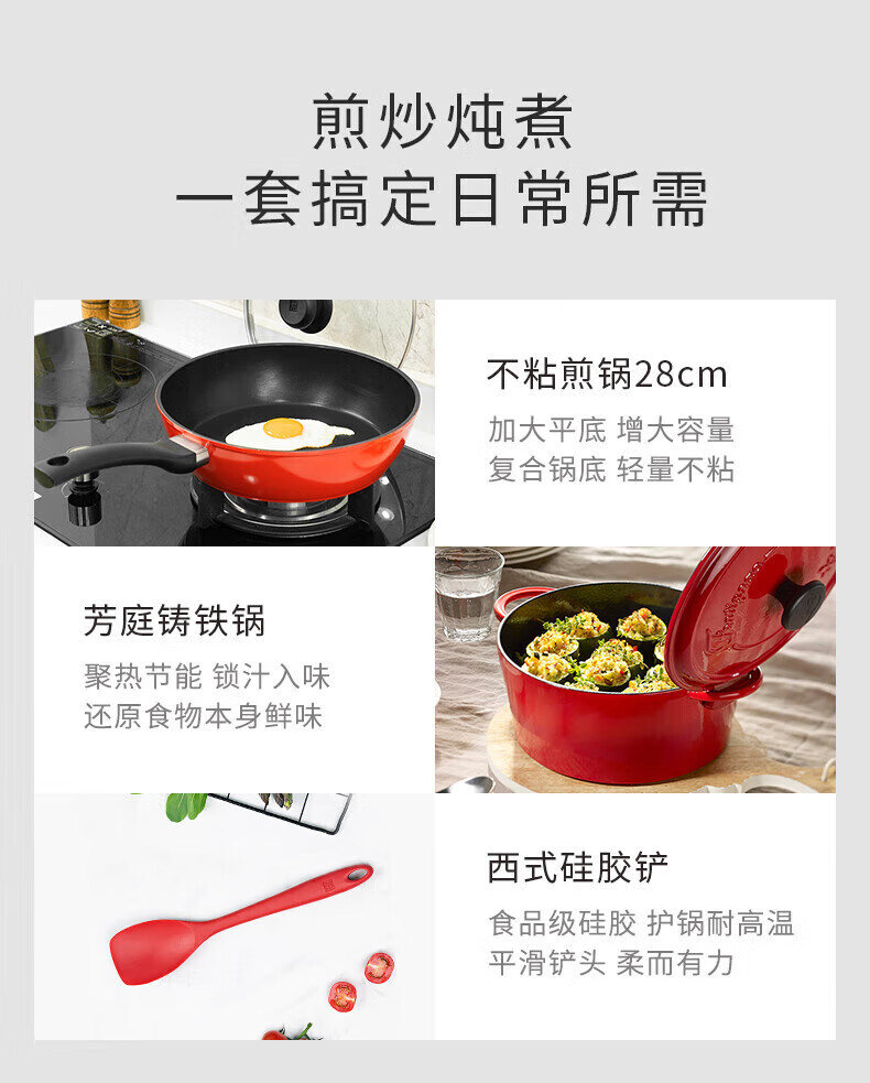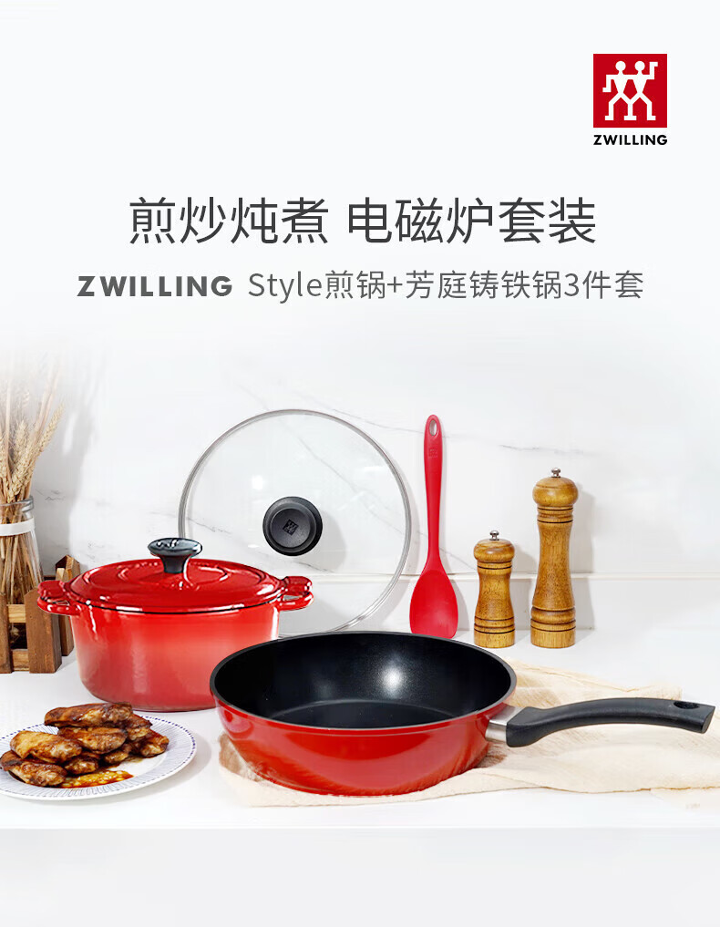 Zwilling one-person cooking pot set non-stick frying pan, stew cast iron pot enamel pot 3-piece set (Zwilling cast iron pot 24cm)