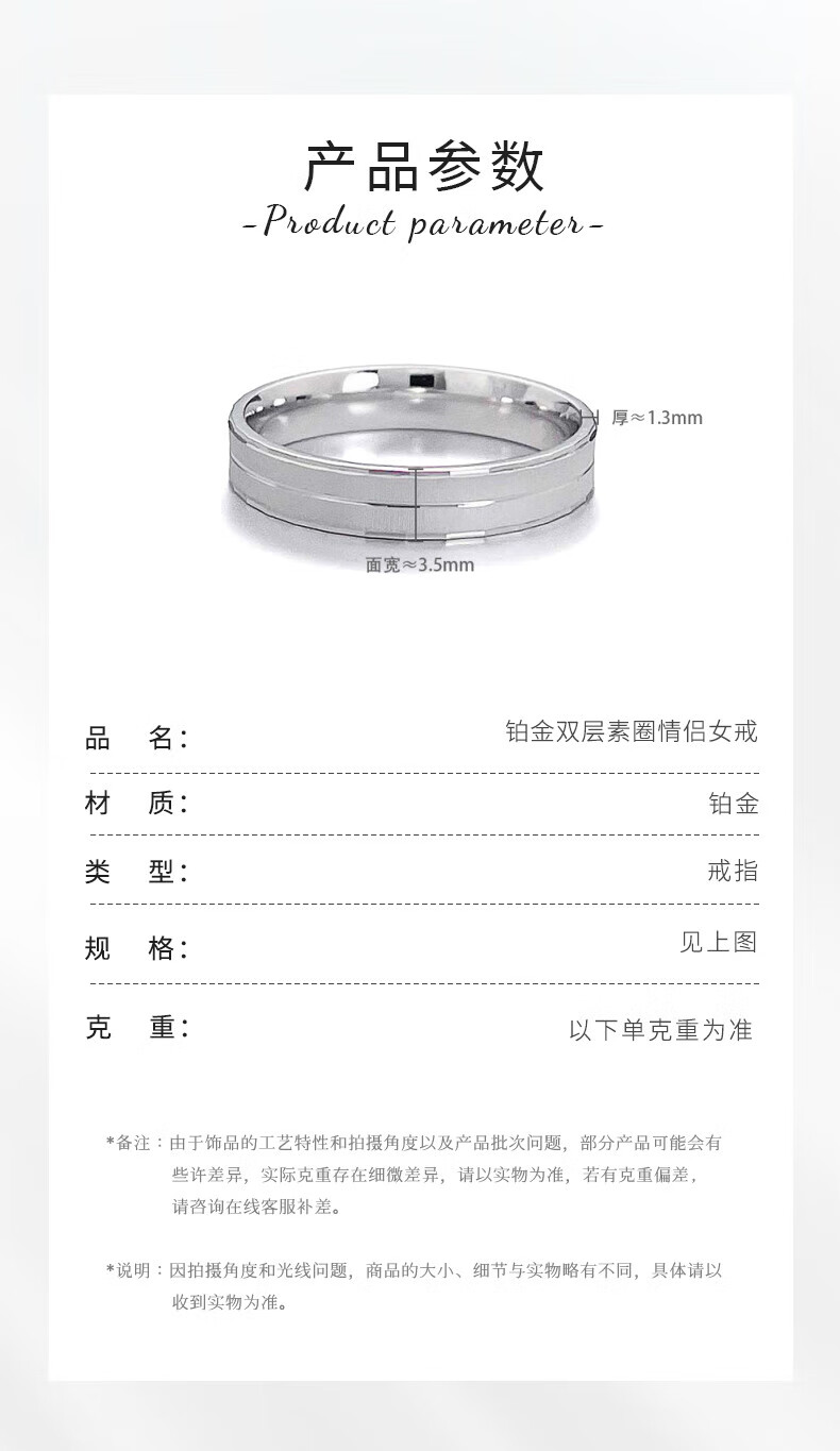 China Gold (CHINA GOLD) Platinum Ring Platinum Double Layer Ring Couple Ring Gifts Girlfriend Gifts Women's Ring Approximately 4.15g