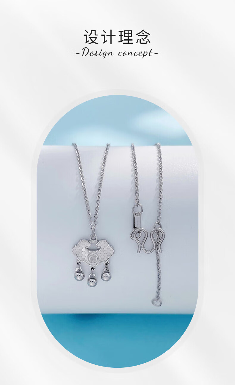 China Gold (CHINA GOLD) platinum peace and luck bell fish scale blessing lock set chain as a gift for your girlfriend as a gift, about 4.48g