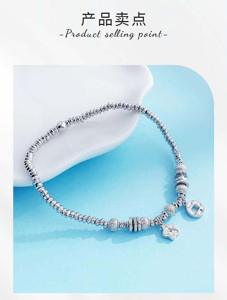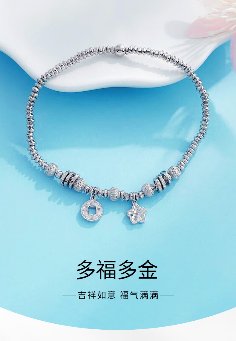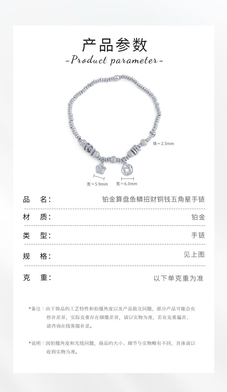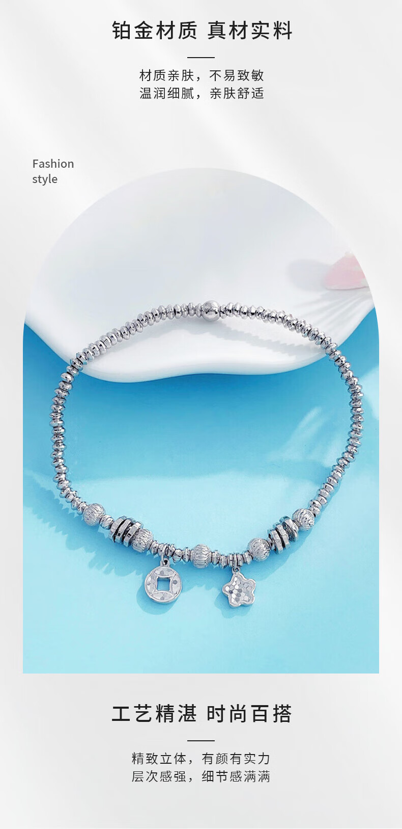 CHINA GOLD platinum bracelet pt950 platinum star copper coin transfer bead bracelet birthday Valentine's Day gift for girlfriend and wife about 10.15g