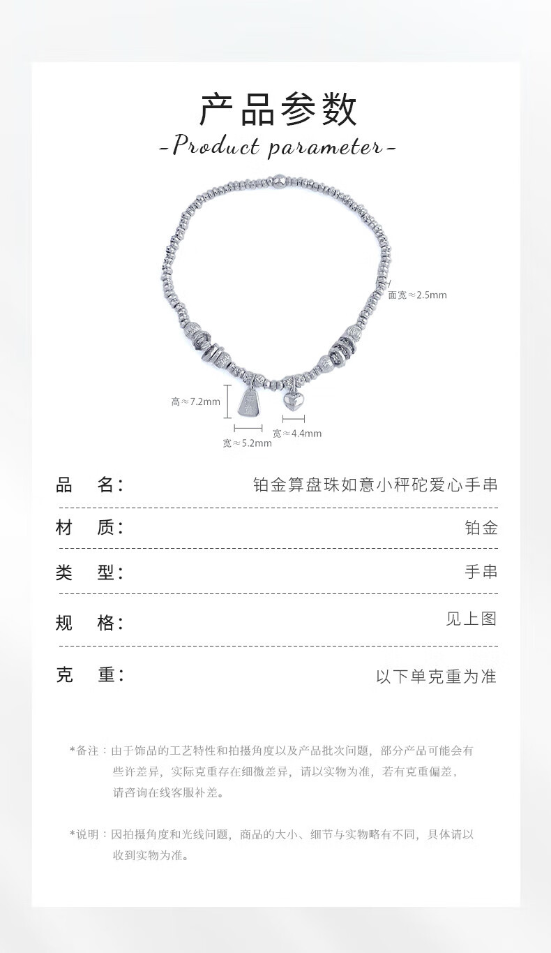 CHINA GOLD Platinum Bracelet pt950 Platinum Love Scale Abacus Bead Bracelet Birthday Valentine's Day Gift for Girlfriend and Wife About 9.65g