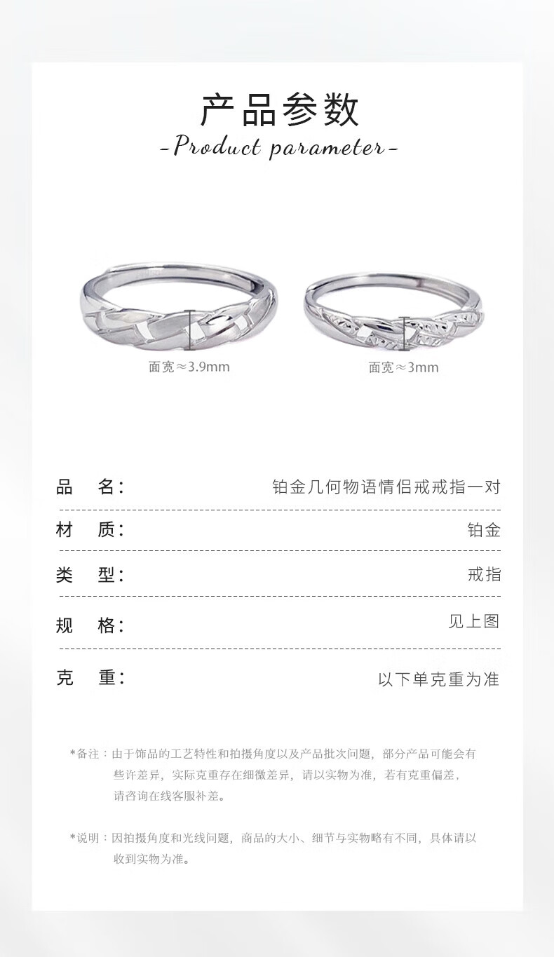 China Gold (CHINA GOLD) Platinum Solid Living Ring Geometry Story Couple Ring Approximately 6.59g
