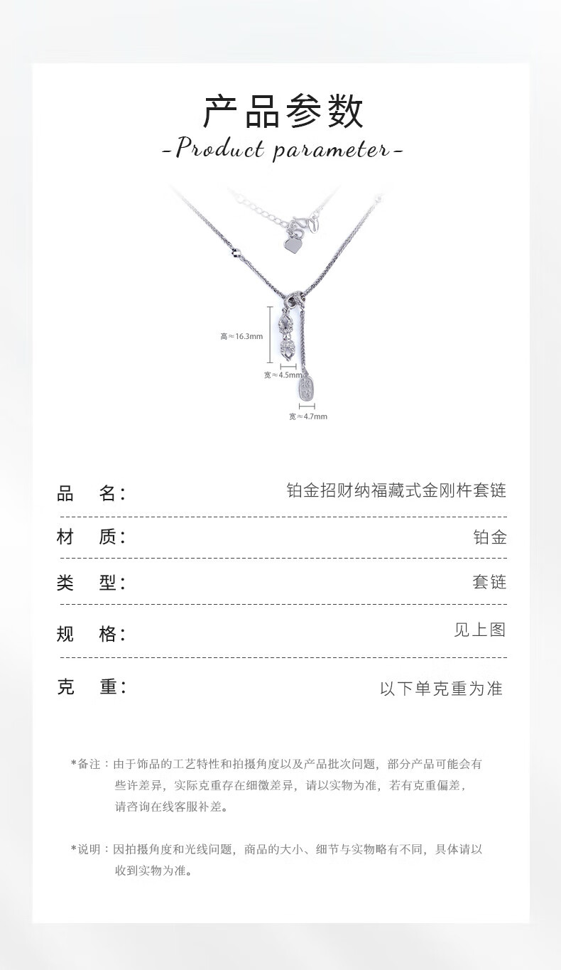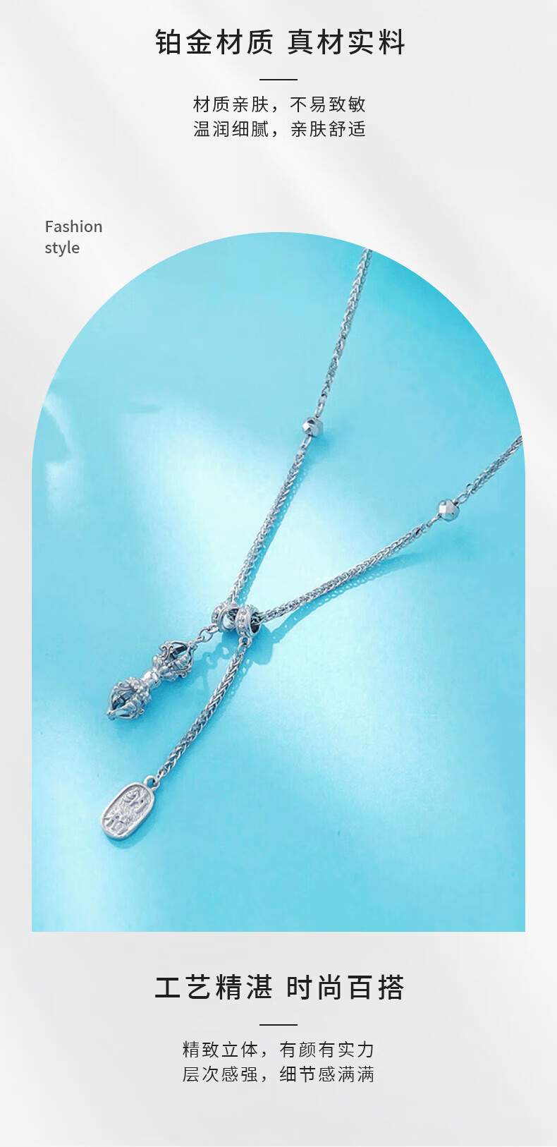 China Gold (CHINA GOLD) platinum necklace to attract wealth and blessings, Tibetan vajra set chain, gift to girlfriend, gift to others, about 7.22g