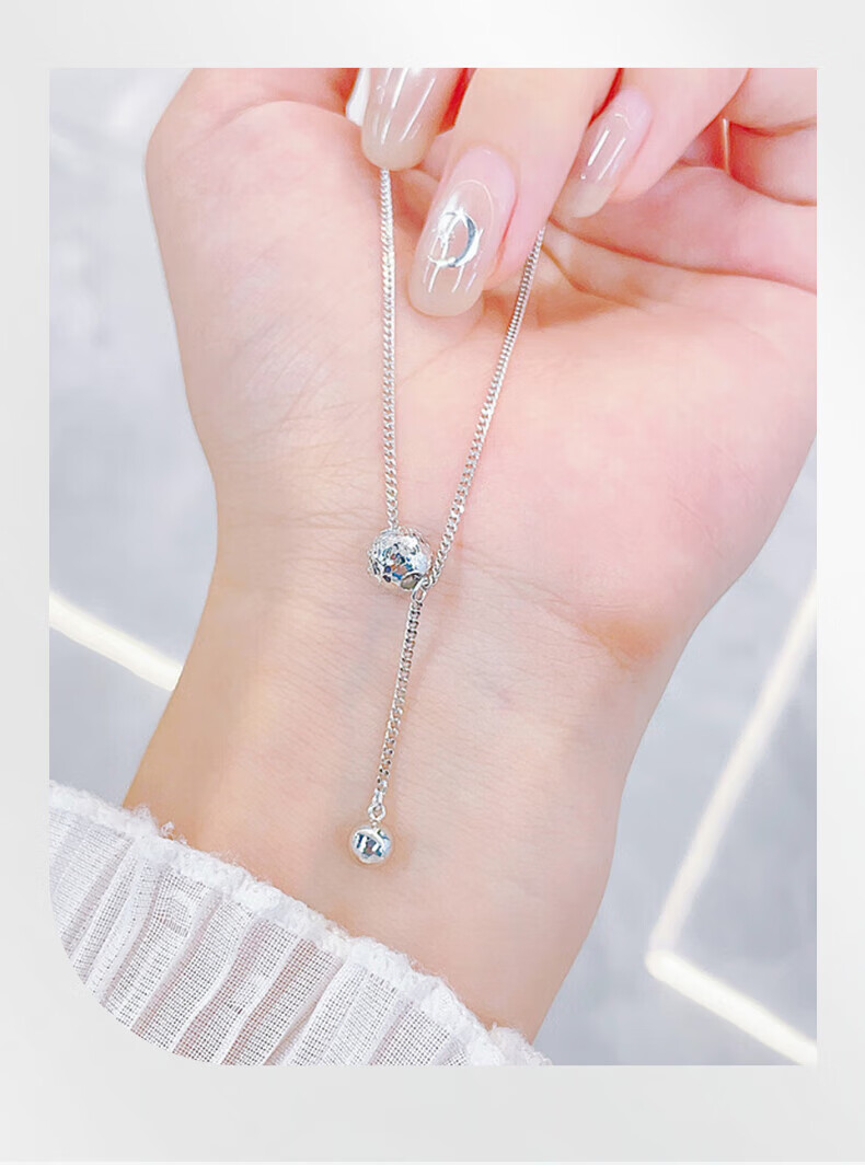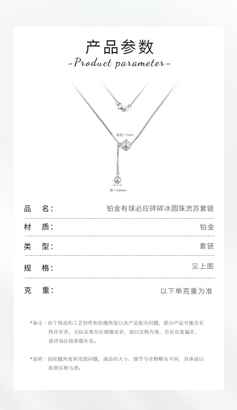 China Gold (CHINA GOLD) Platinum Necklace with Ball Bing Crushed Ice Beads Tassel Set Chain as a Gift for My Girlfriend as a Gift, About 5.48g