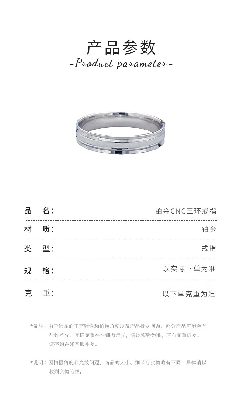 China Gold (CHINA GOLD) Platinum solid solid CNC three-ring ring (width is about 3.8-4.2mm, thickness is about 1.2mm) Platinum solid solid CNC three-ring ring (about 4.75g)