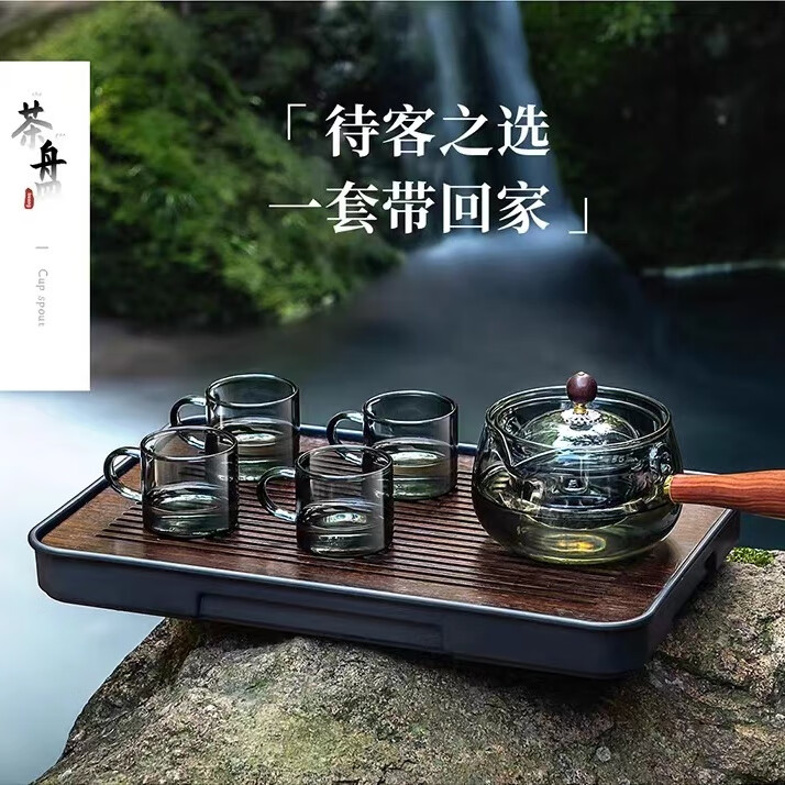 Jianyang 360 Rotating Xiaoyao Pot, High Temperature Resistance, Thickened Fair Cup, New Glass Tea Making Teapot, Teacup and Tea Set Set, Xiaoyao Pot, Transparent-Heatable, Advanced Transparent Color