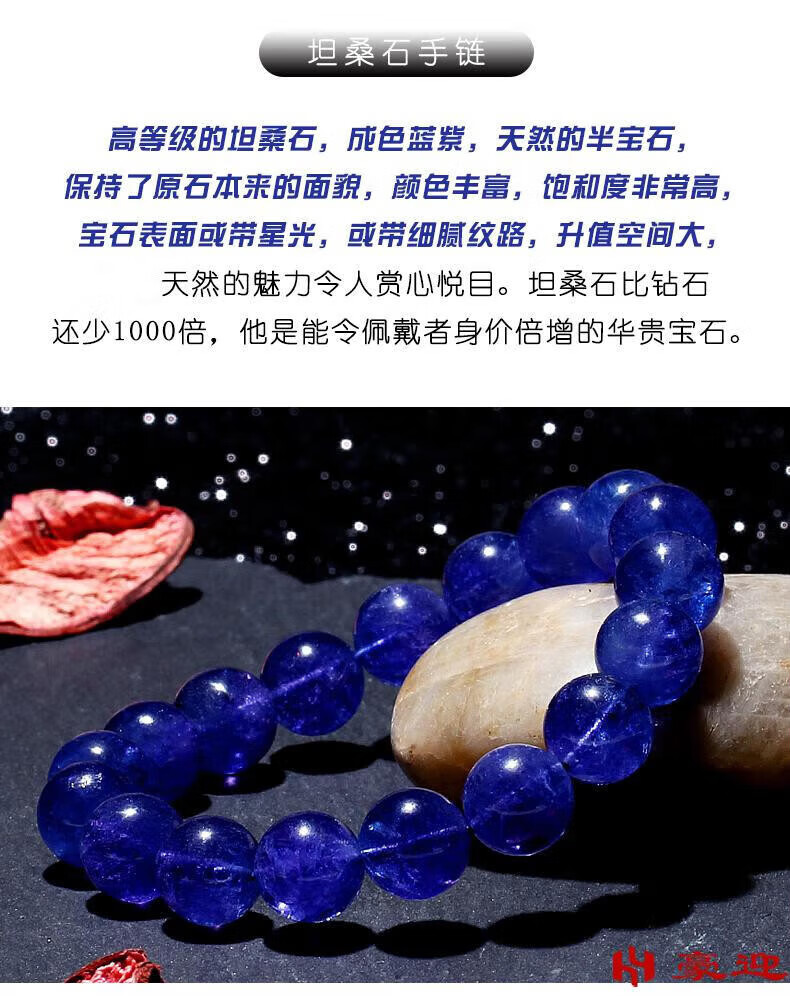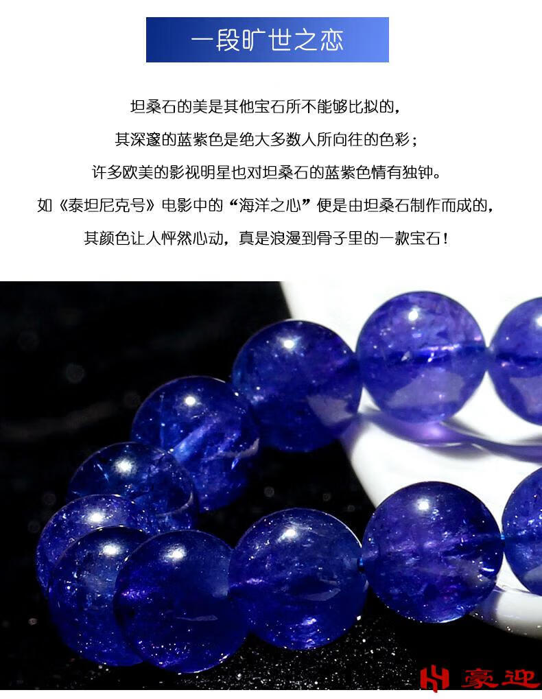 Beimixing Natural Tanzanite Bracelet Women's Collection Ocean Heart Tanzanite Purple Sapphire Crystal Bracelet Palace Grade Tanzanite 8mm Bracelet