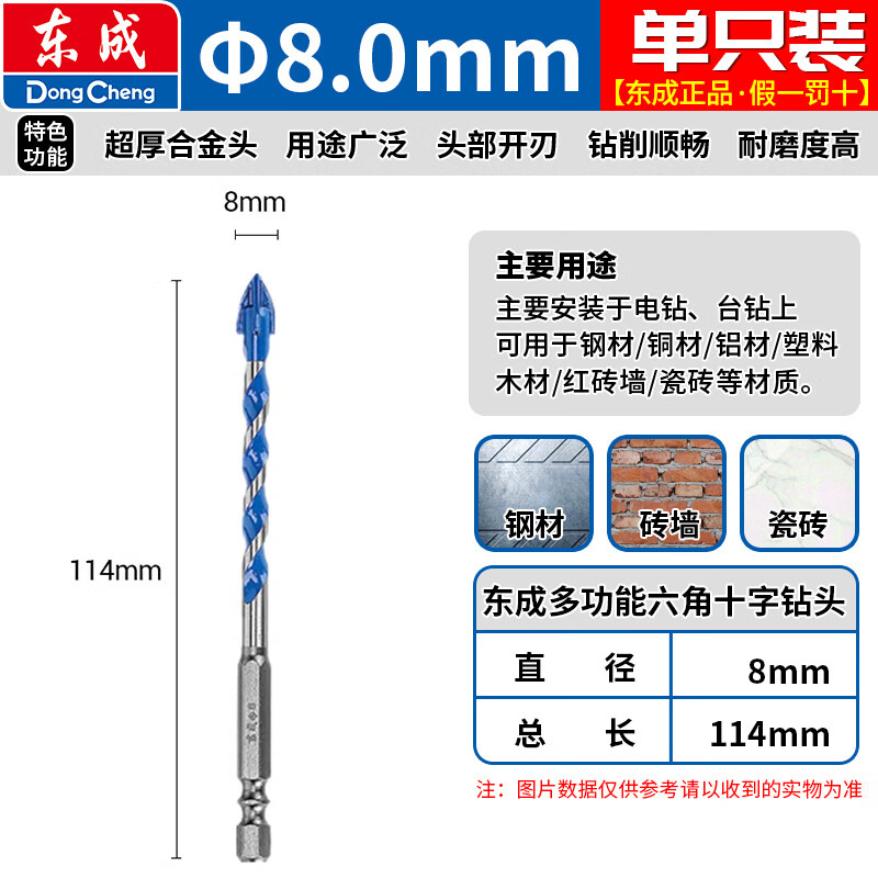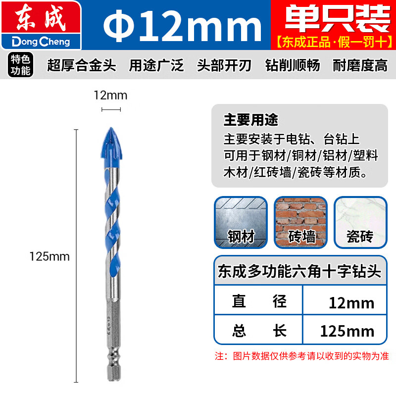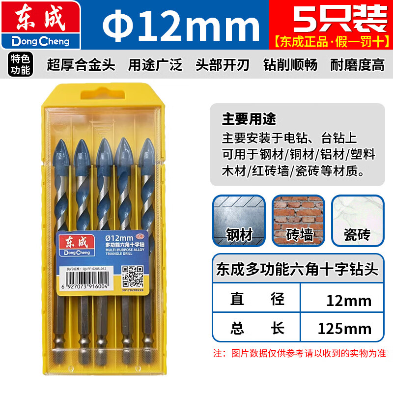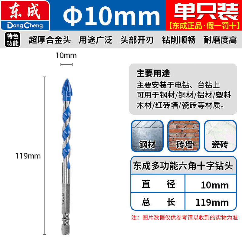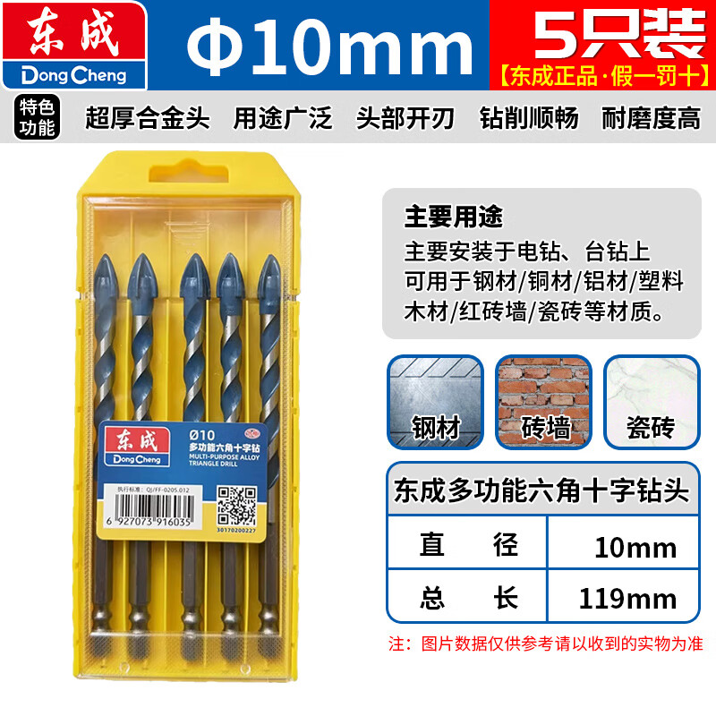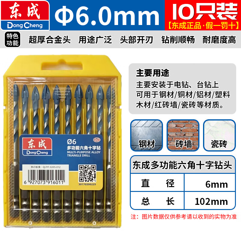 Dongcheng tile drill bit Overlord glass drill bit 10mm concrete carbide four-edged hexagonal drill electric drill wall drill bit multi-functional hexagonal cross drill 6mm one pack