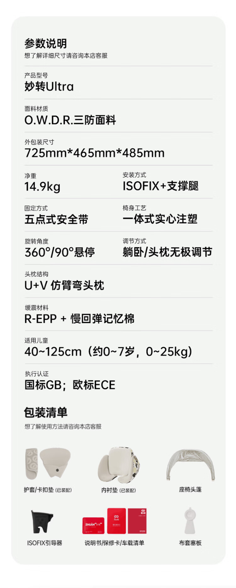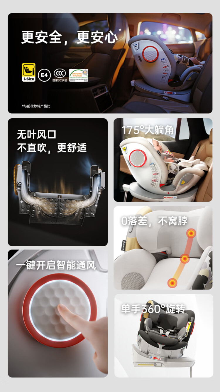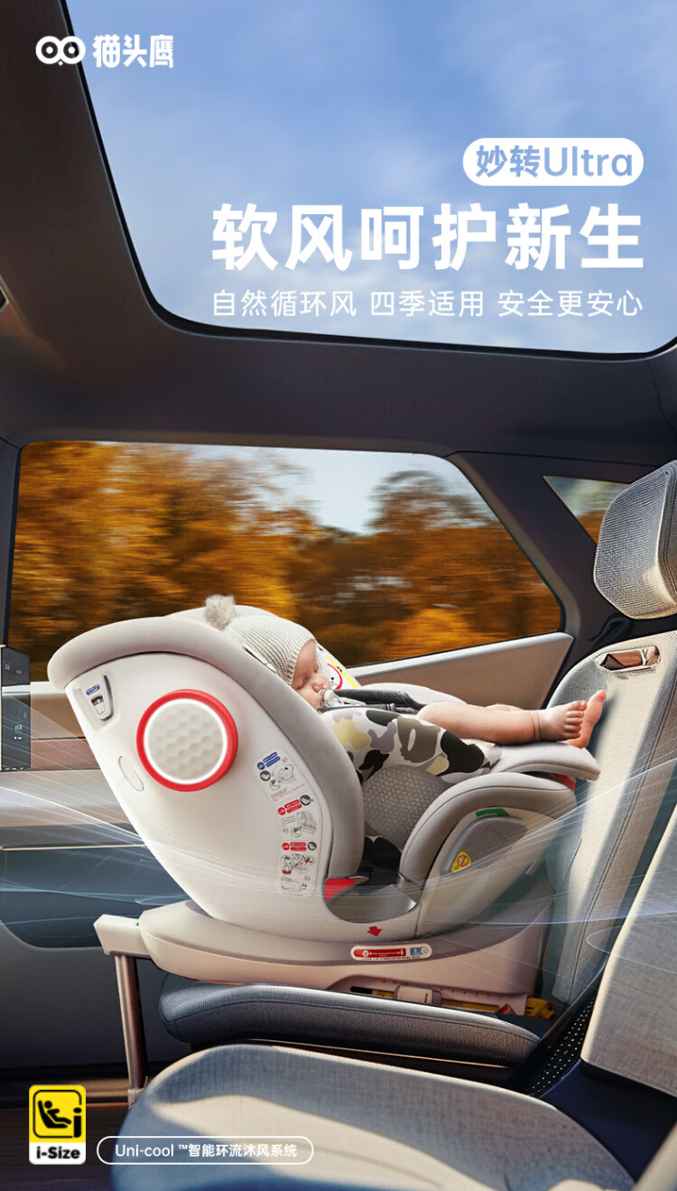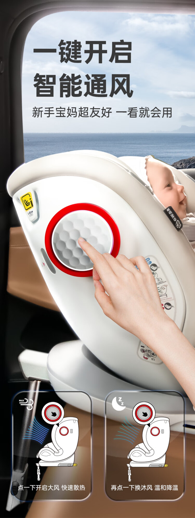 Owl Miaozhuan Ultra child safety seat 0-7 years old baby seat baby smart ventilation new regulations - Miaozhuan ultra silver white