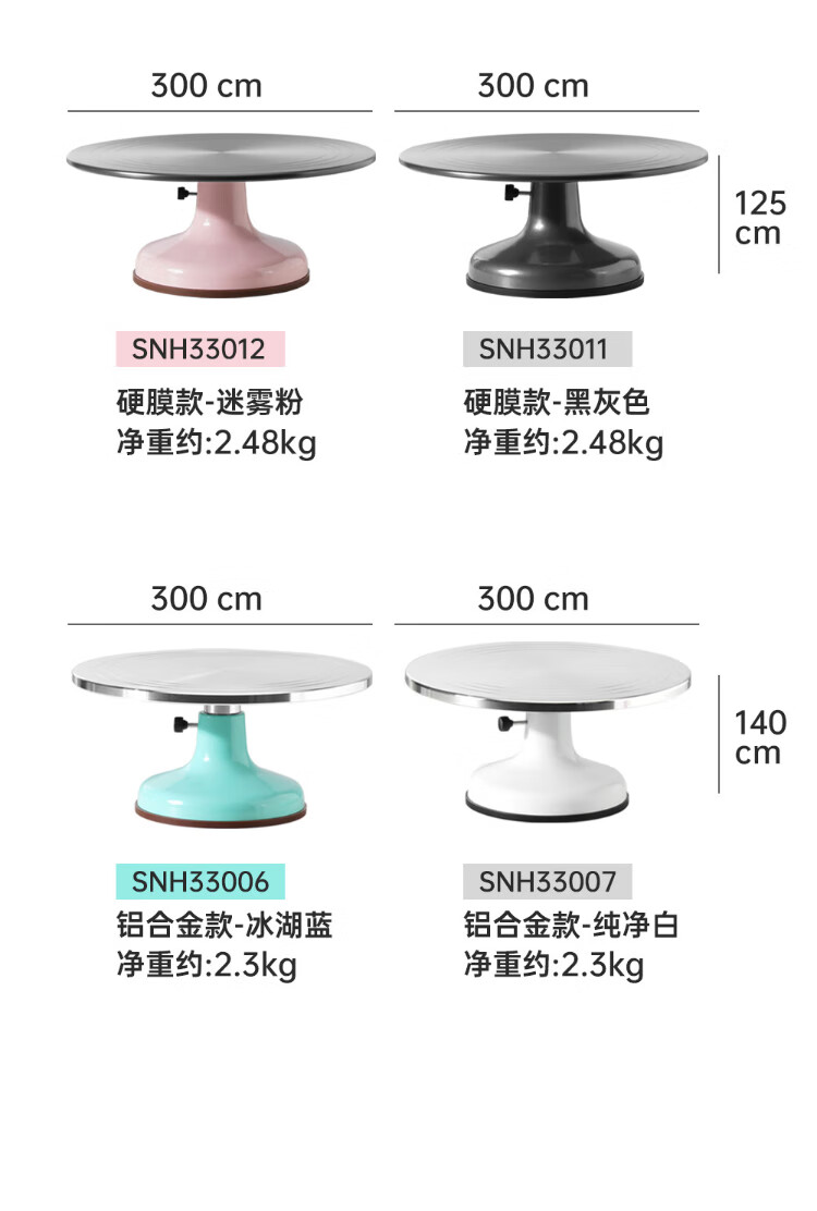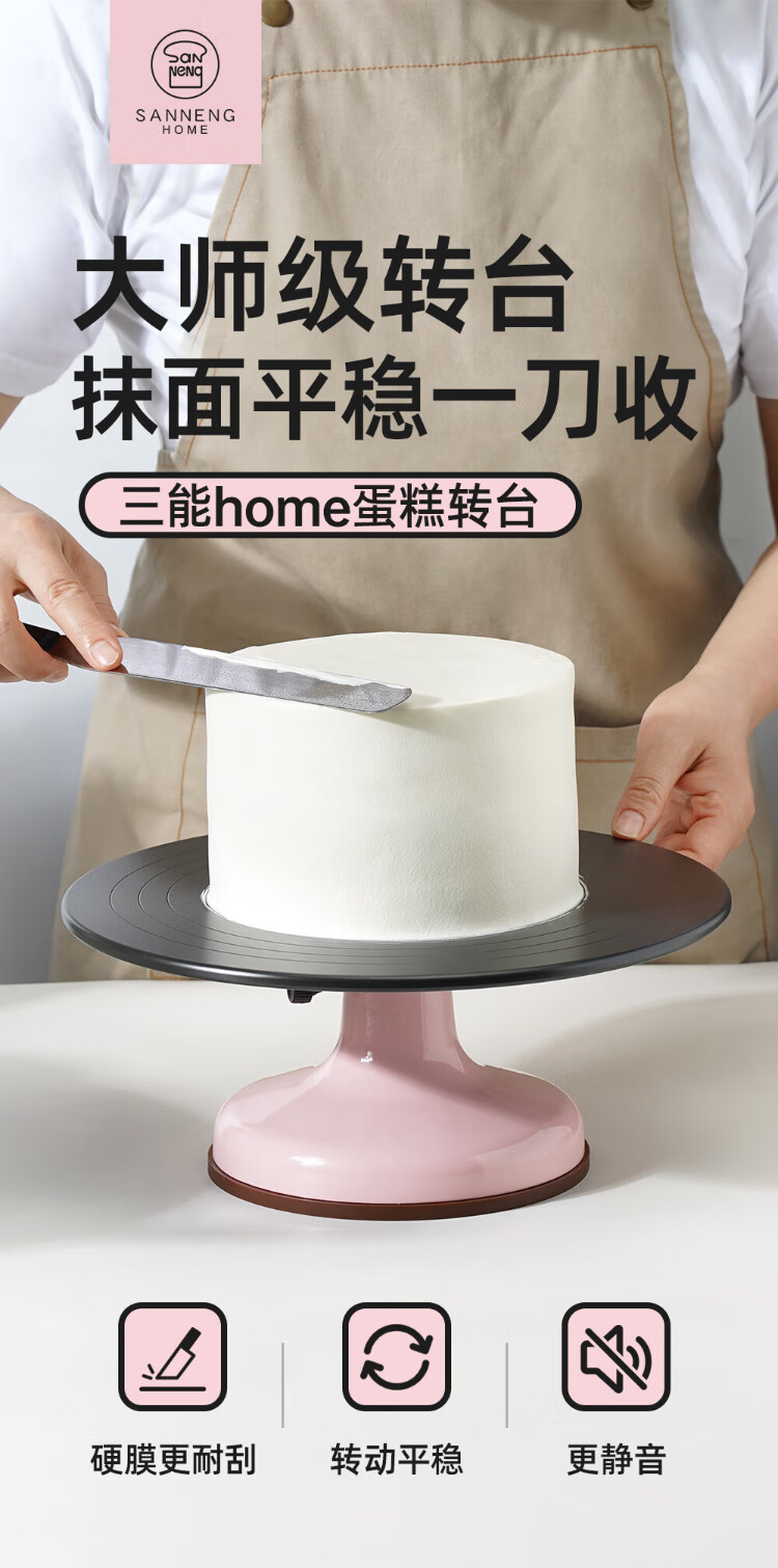 SANNENG Decoration Turntable Turntable All-metal Commercial Cake Dessert Display Table Hard-Coated Silicone Anti-Slip Decoration Table SNH33007 Cake Turntable-Pure White