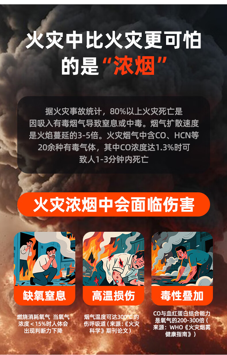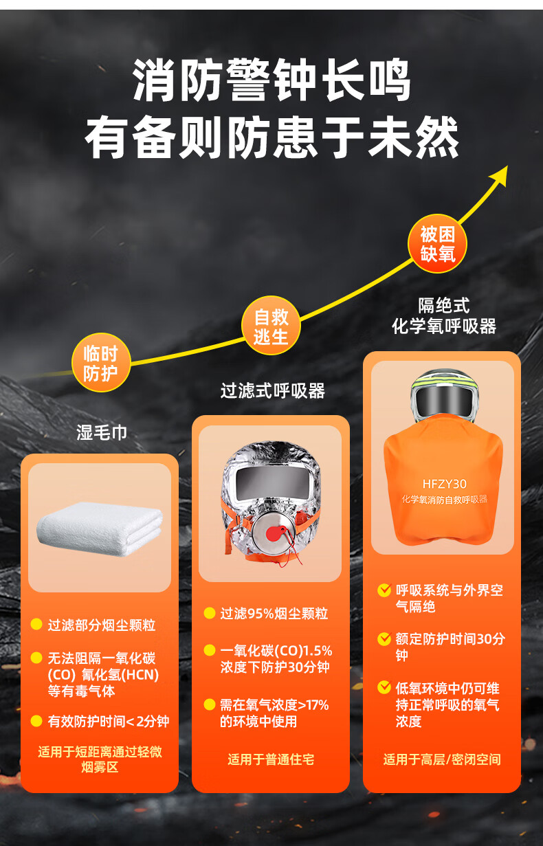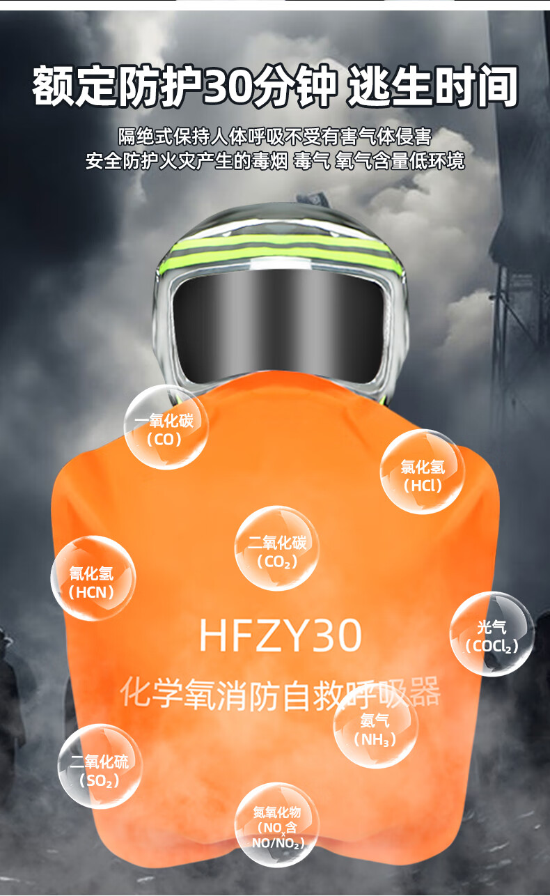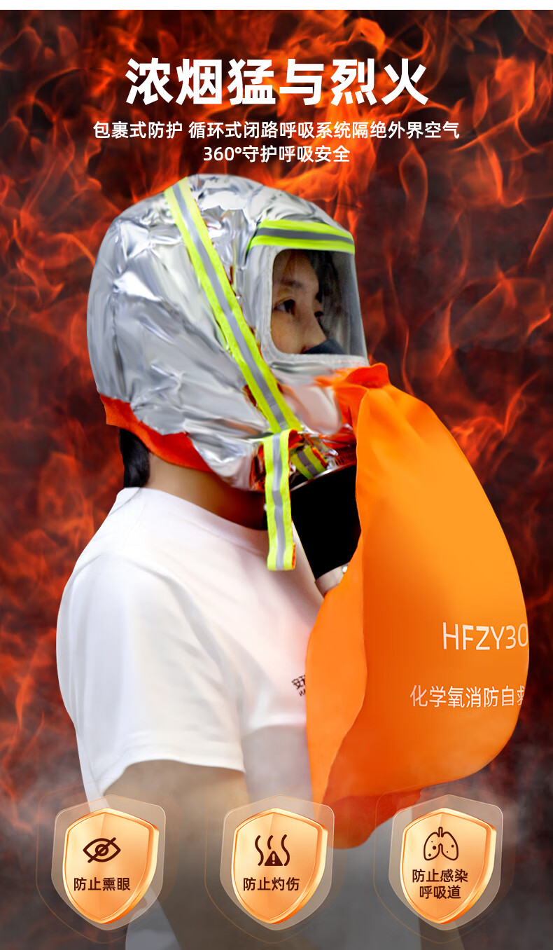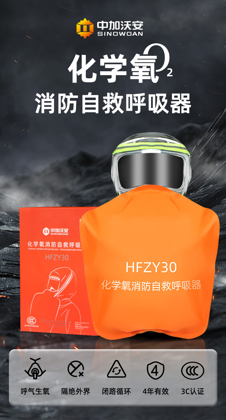 UOSEN chemical oxygen firefighting self-rescue respirator 3C certified household anti-fire escape fire mask anti-virus and anti-smoke mask HFZY30 chemical oxygen firefighting self-rescue respirator