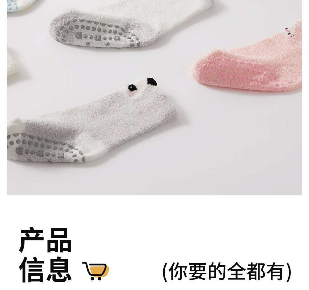 Betis baby floor socks autumn and winter double-sided velvet children's non-slip cooling insulation thickened infant and toddler anti-slip socks Jin gray panda 0-1 years old 7-11cm