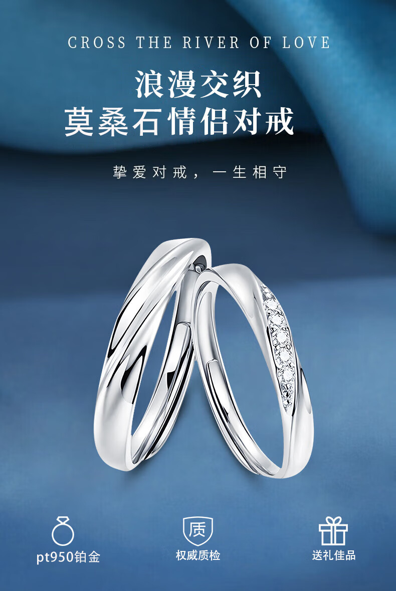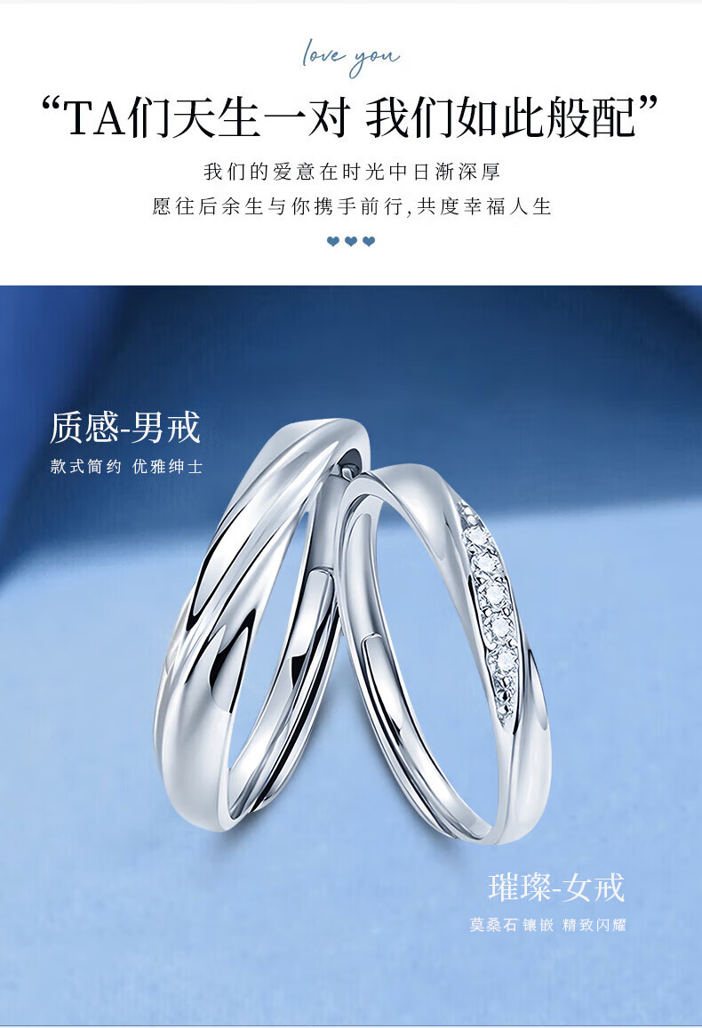 Grace Girl Platinum Love Couple Ring Moissanite Proposal Ring Birthday Confession Gift for Girlfriend and Wife Platinum 18K Gold Couple Ring-Inlaid with South African real diamonds