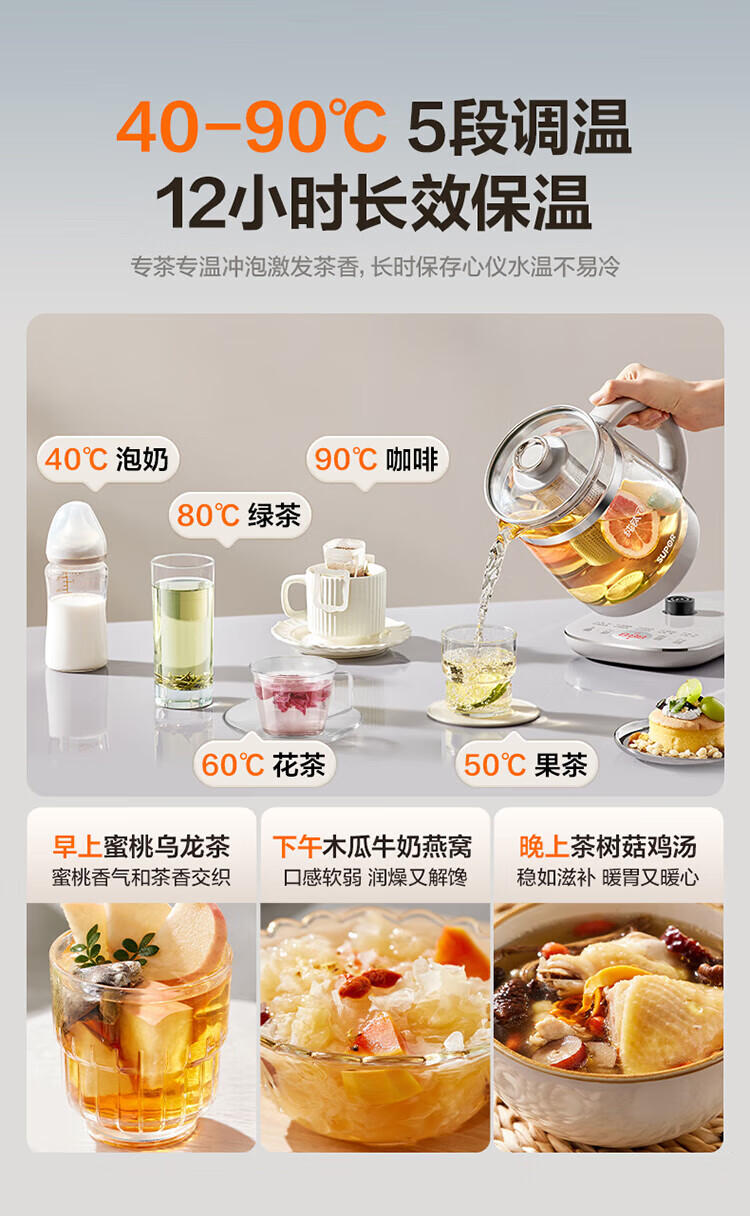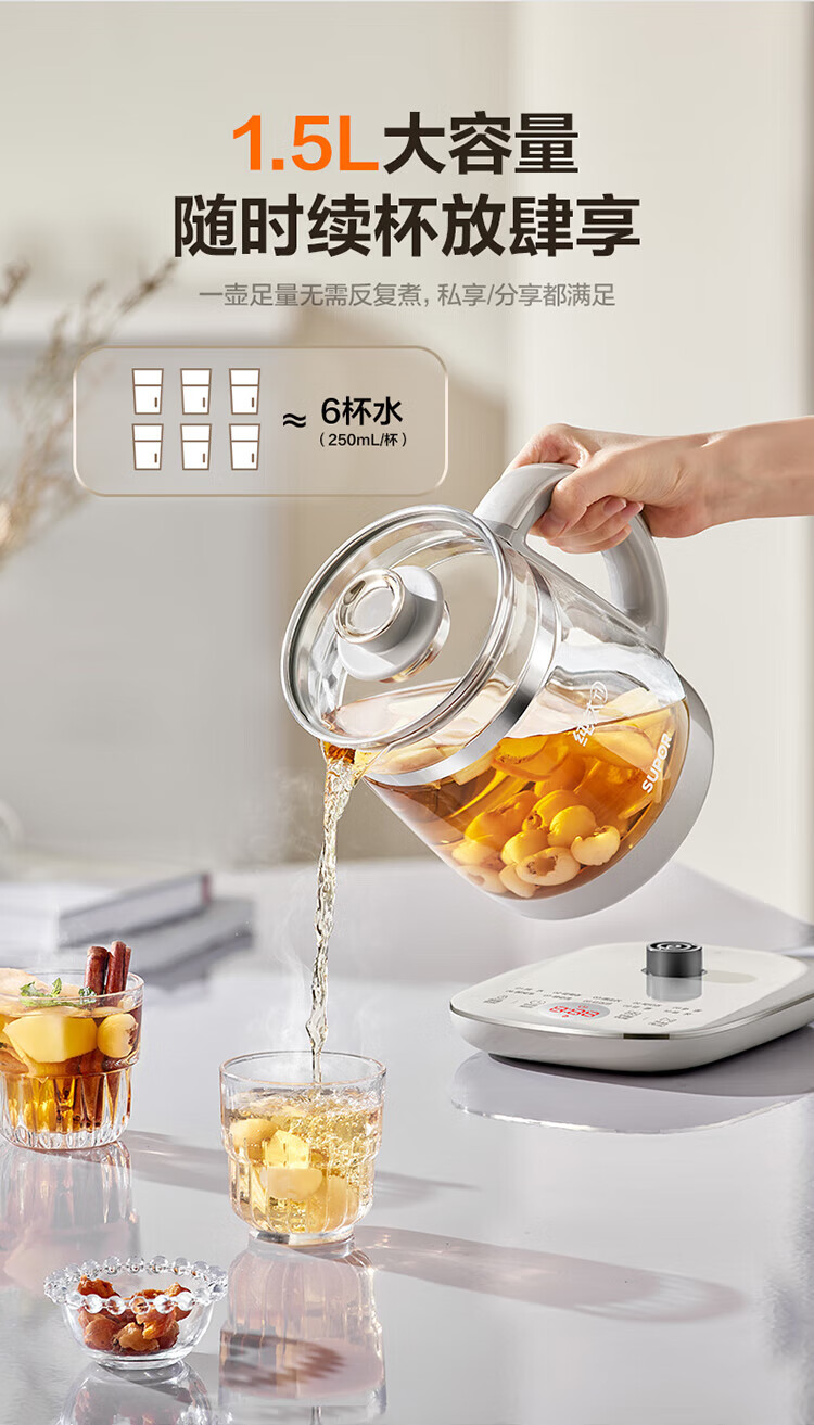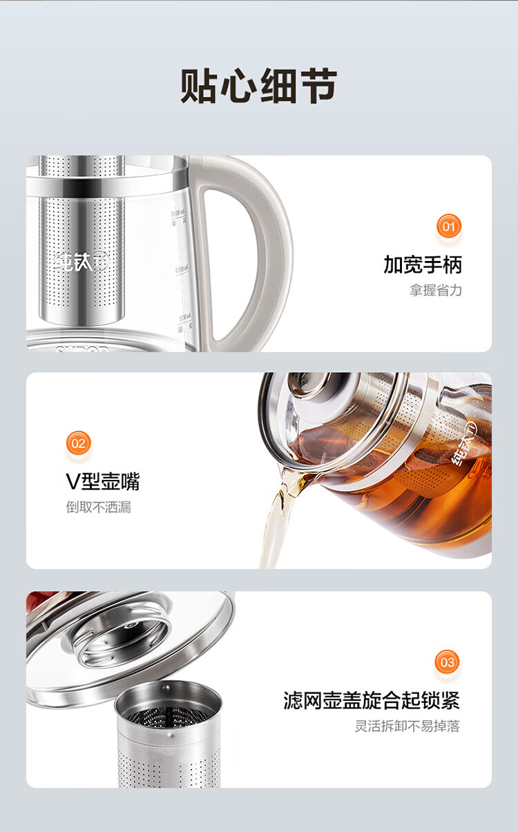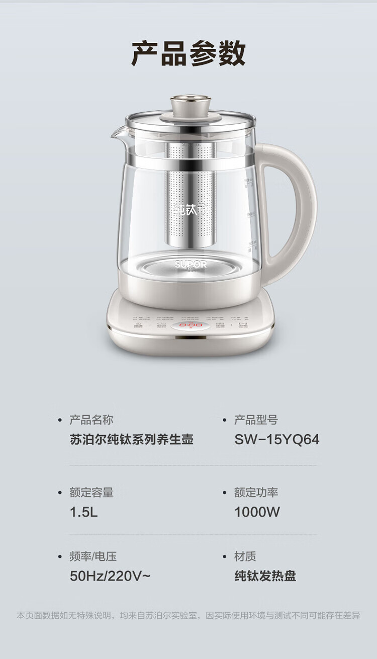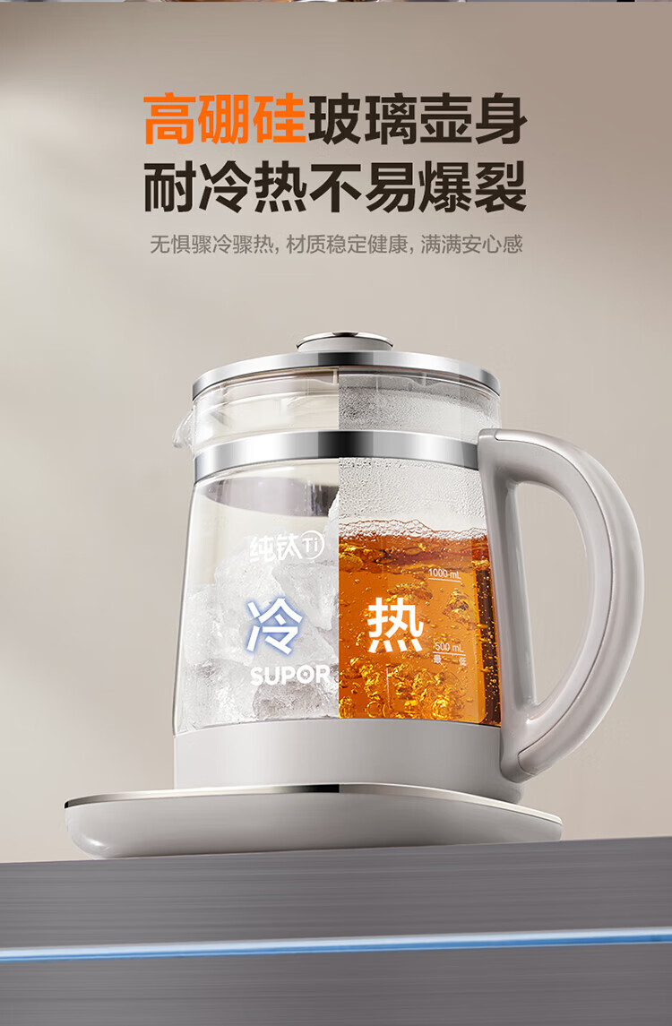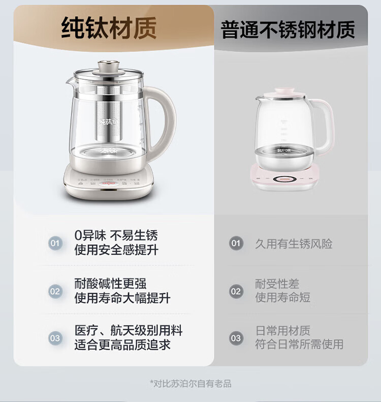SUPOR pure titanium health kettle teapot kettle electric kettle electric kettle teapot flower teapot 316L stainless steel pure titanium 0 coating multi-stage constant temperature insulation 1.5L titanium heating plate 316L filter