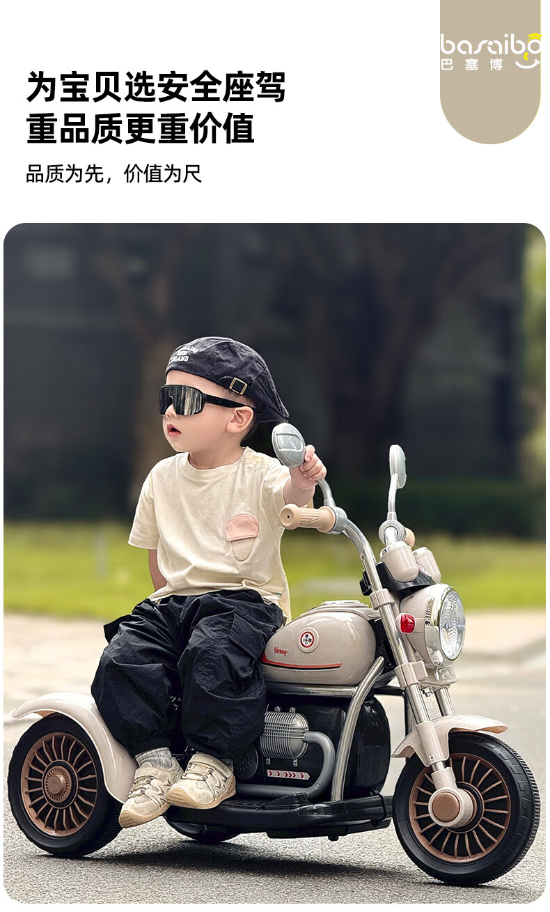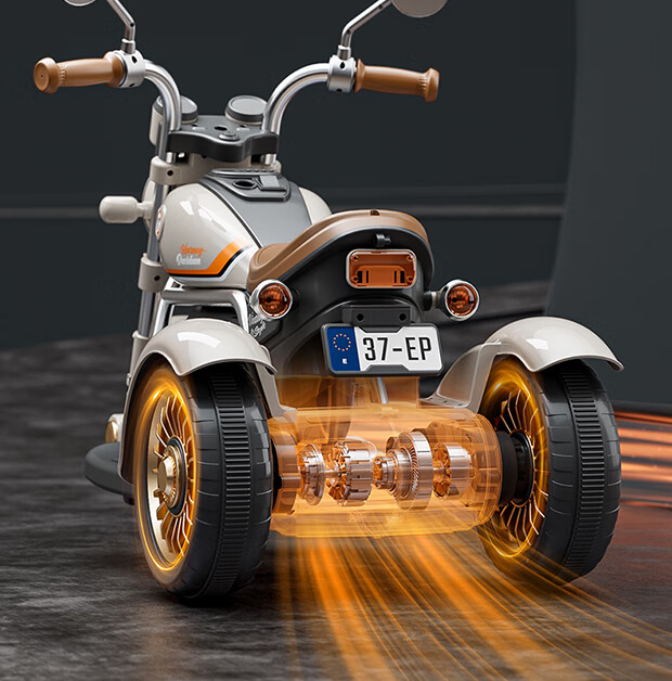 Kachi Muning children's electric motorcycle can sit on excavator, male and female children's driving toy, early education music gift, can be controlled remotely, enlarged model, remote control dual drive, brown gold +12V enlarged battery, electric drive