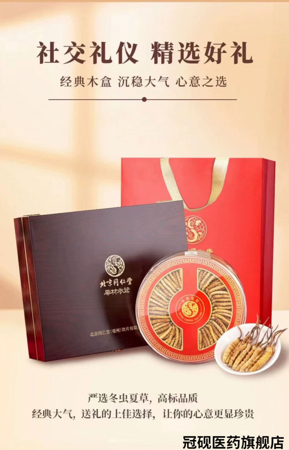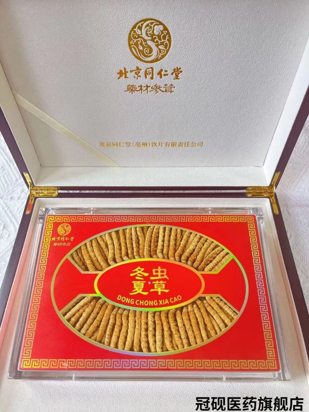 Die Wirksamkeit des authentischen Cordyceps von Beijing Tong Ren Tang, hochwertige tibetische schneebedeckte Cordyceps-Trockenware, schlanke Cordyceps-Geschenkbox, 15-g-Geschenkbox