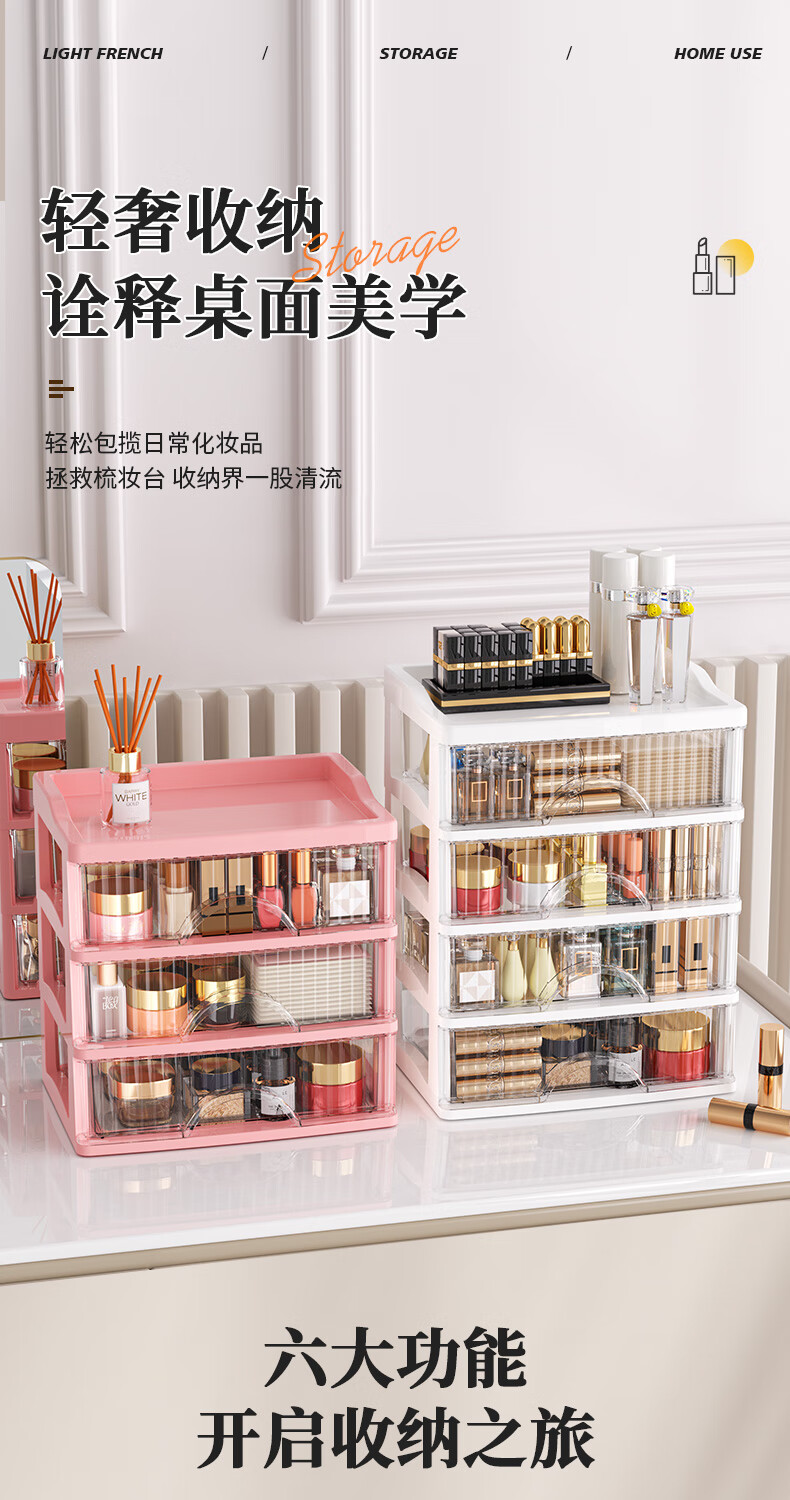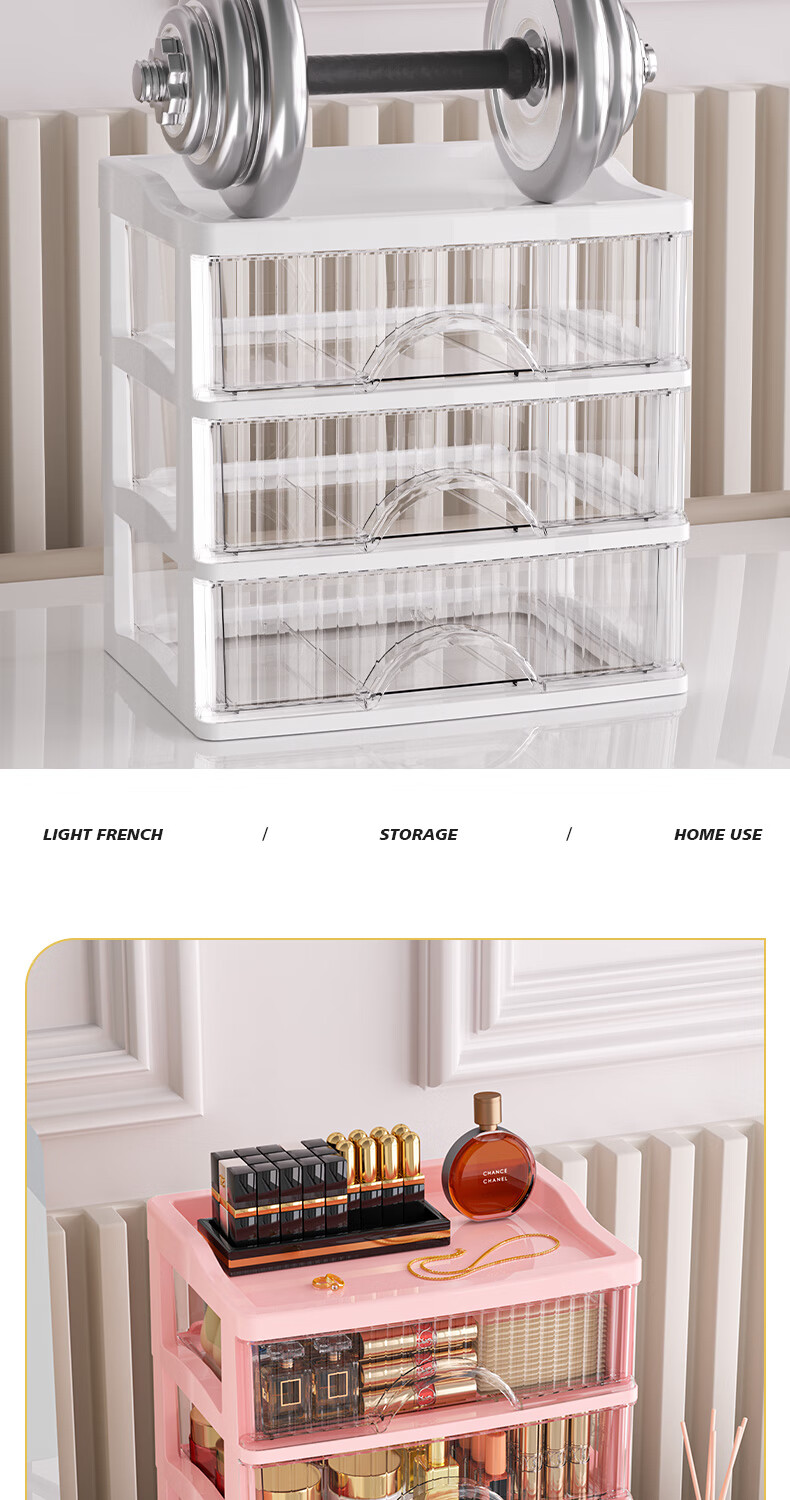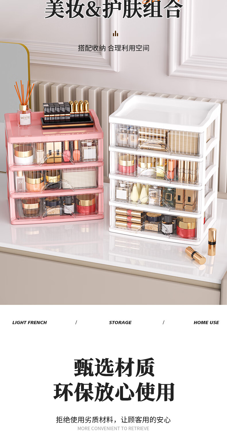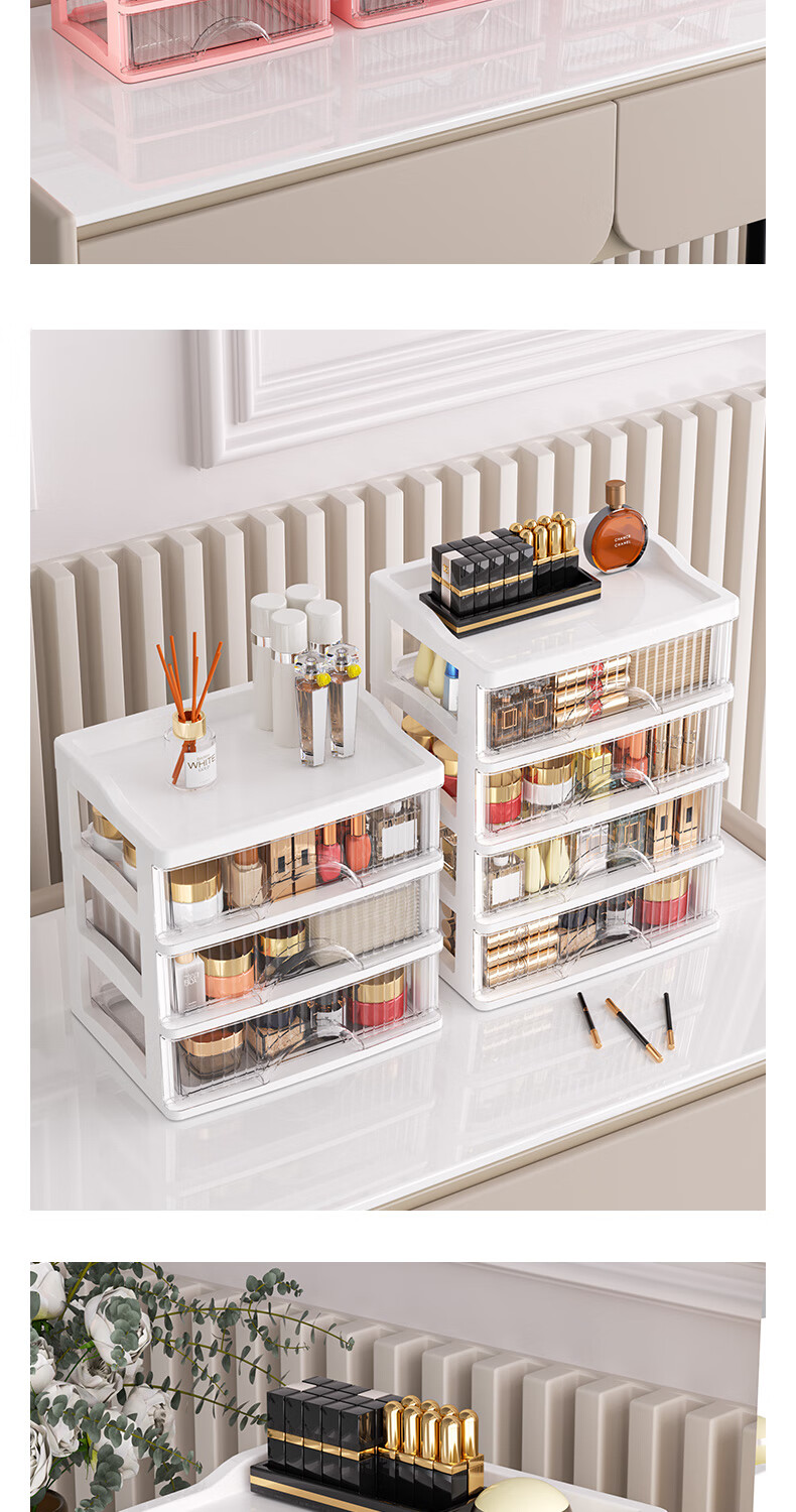 Drawer-type desktop storage box cosmetics dressing table with large capacity to store skin care products, divided rack, 3 layers, 3 drawers, white, 22*16.5*21.5cm