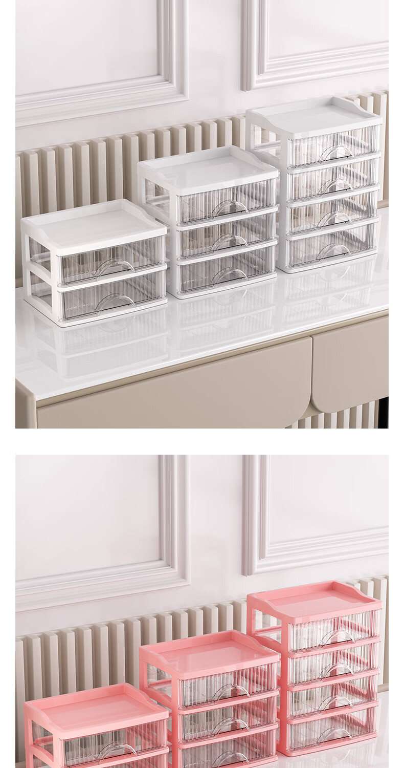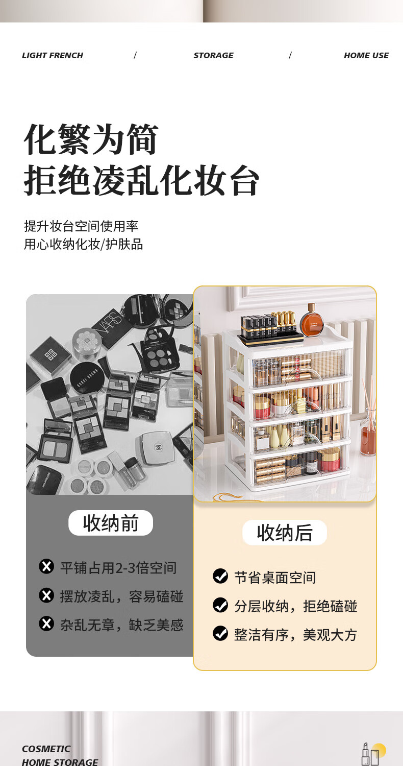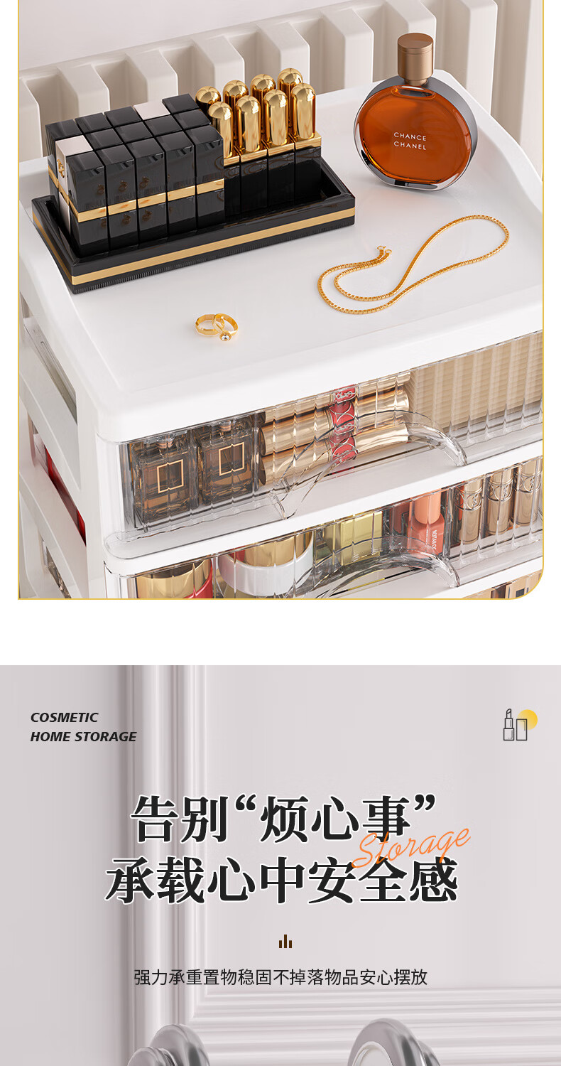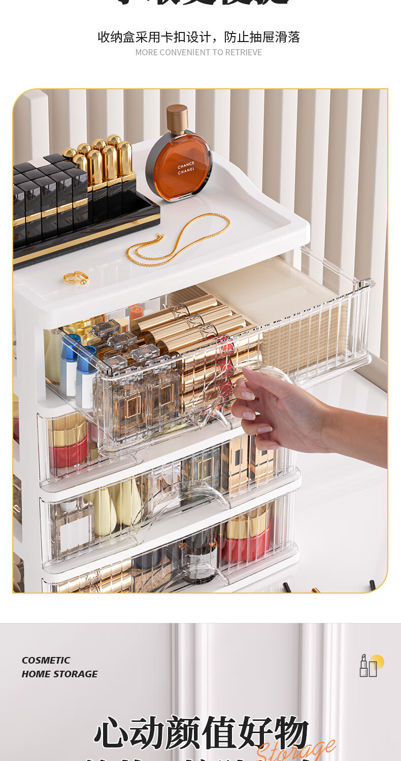 Drawer-type desktop storage box cosmetics dressing table with large capacity to store skin care products, divided rack, 3 layers, 3 drawers, white, 22*16.5*21.5cm