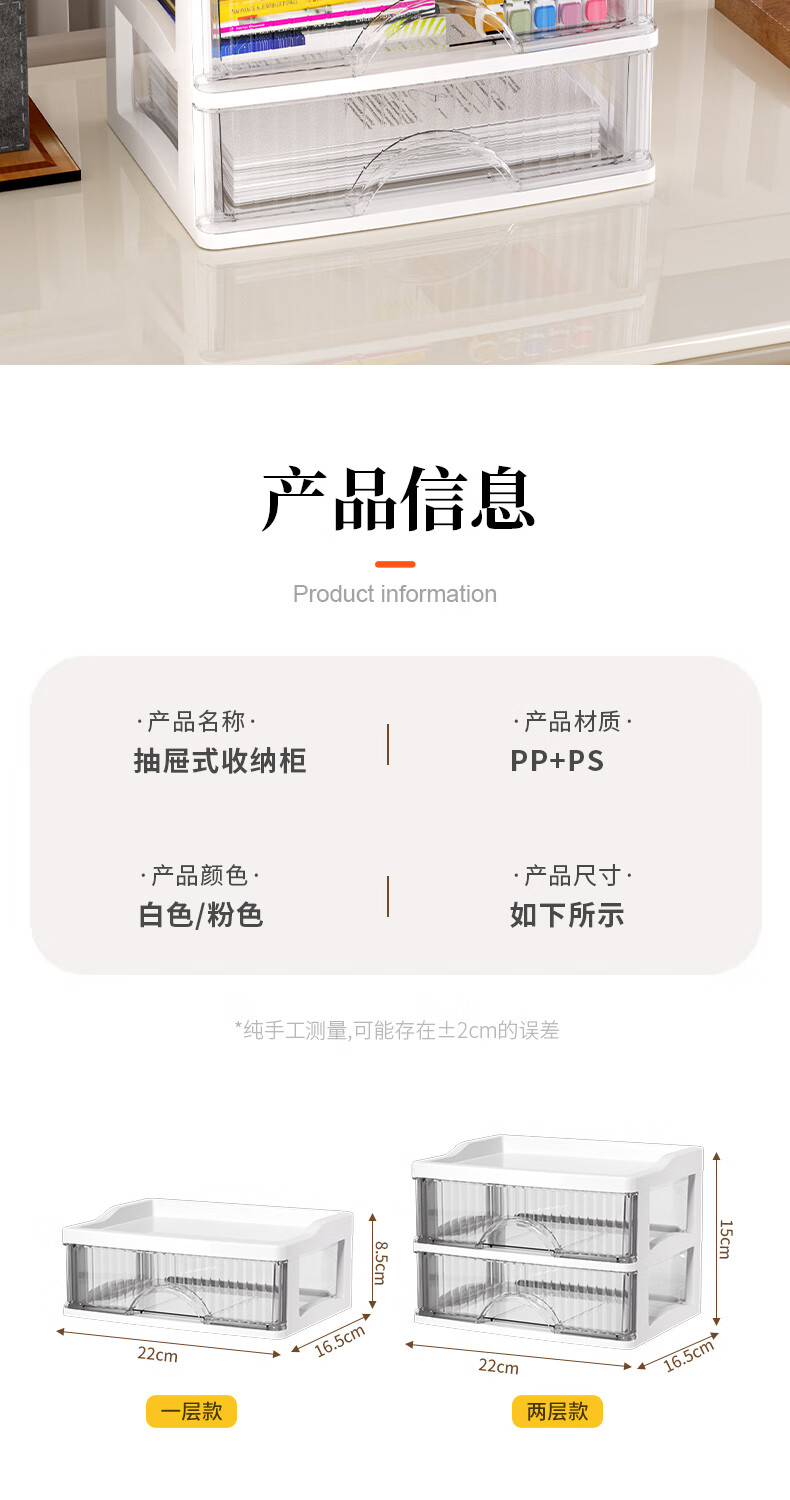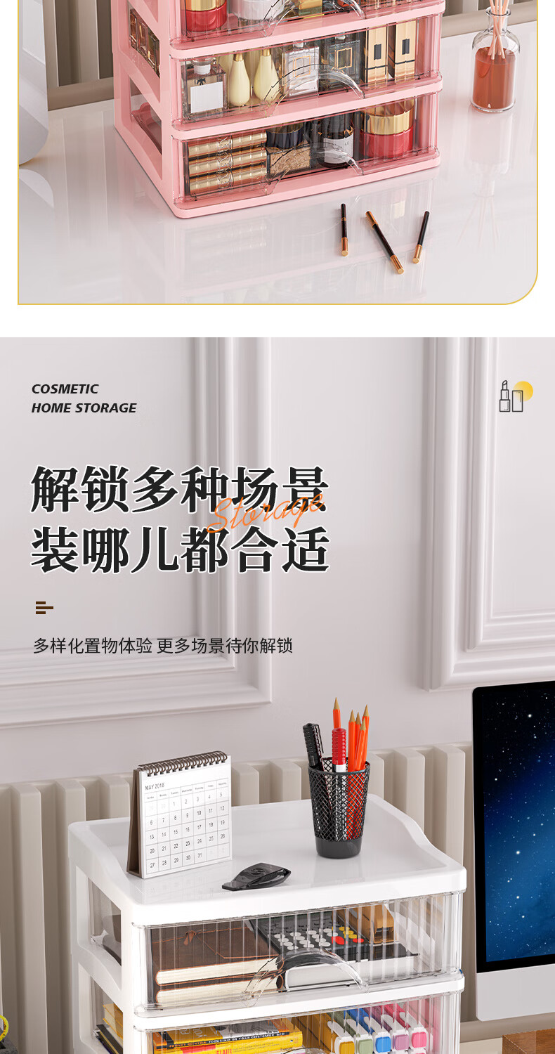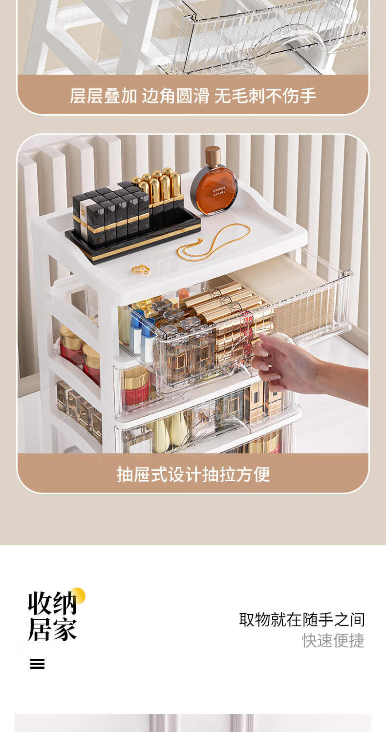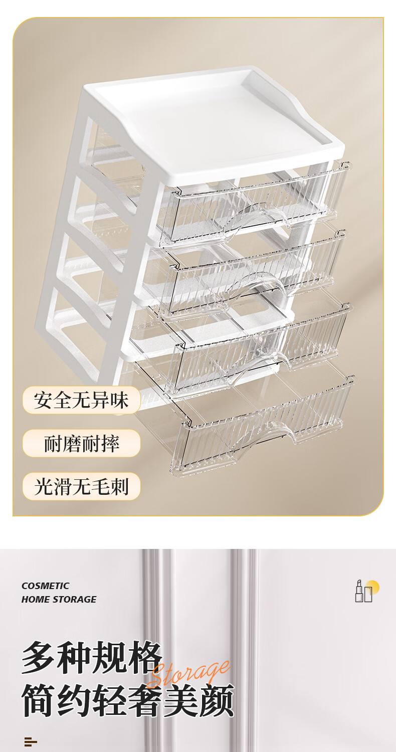 Drawer-type desktop storage box cosmetics dressing table with large capacity to store skin care products, divided rack, 3 layers, 3 drawers, white, 22*16.5*21.5cm