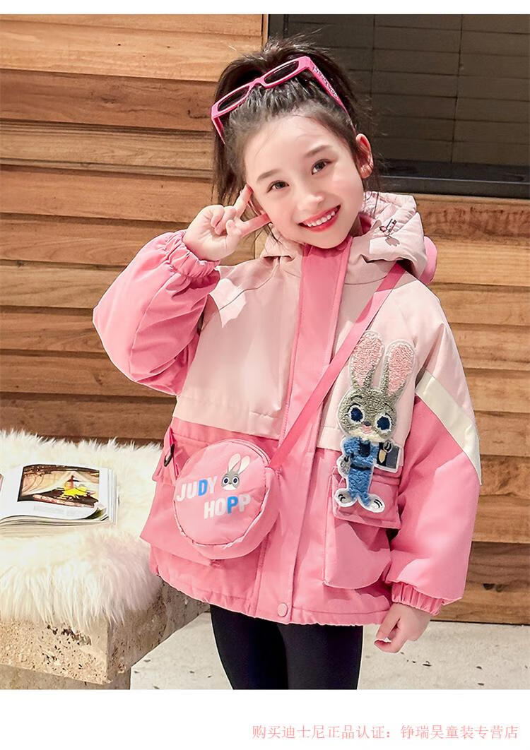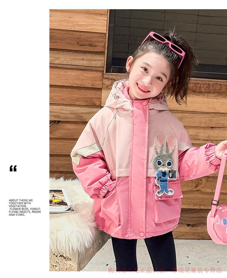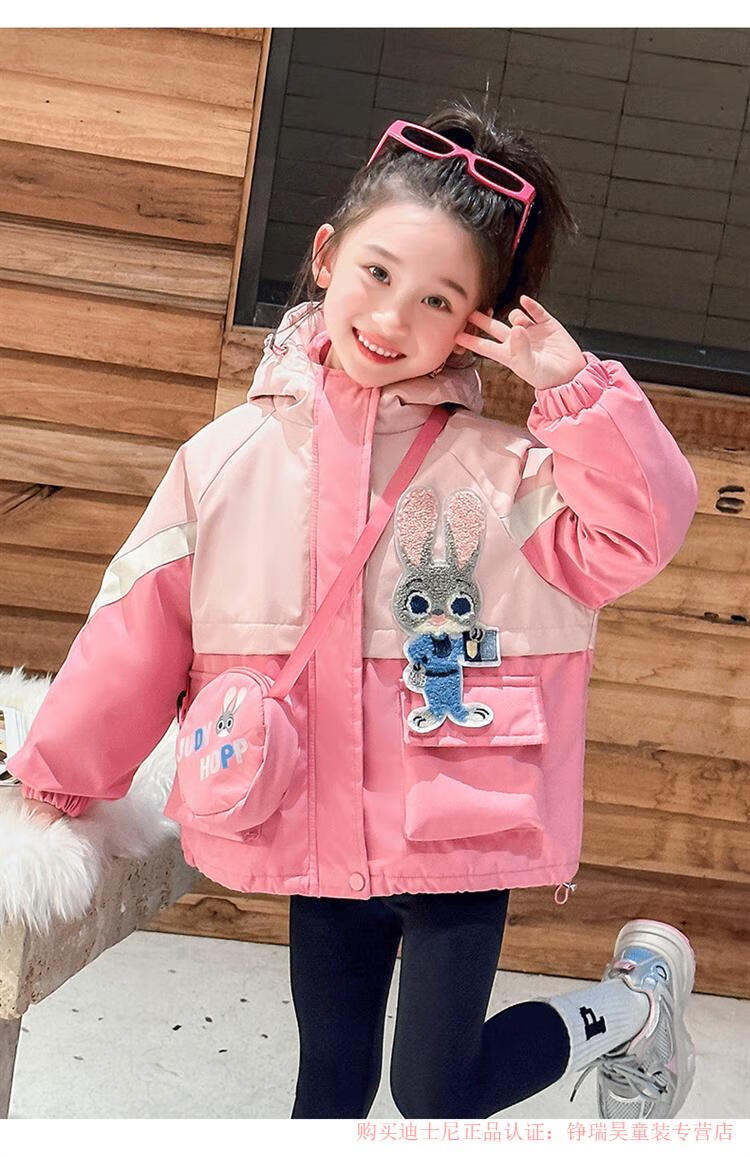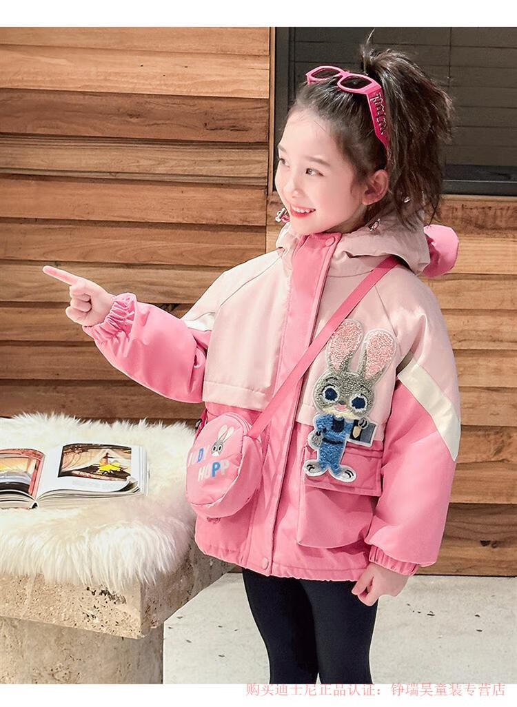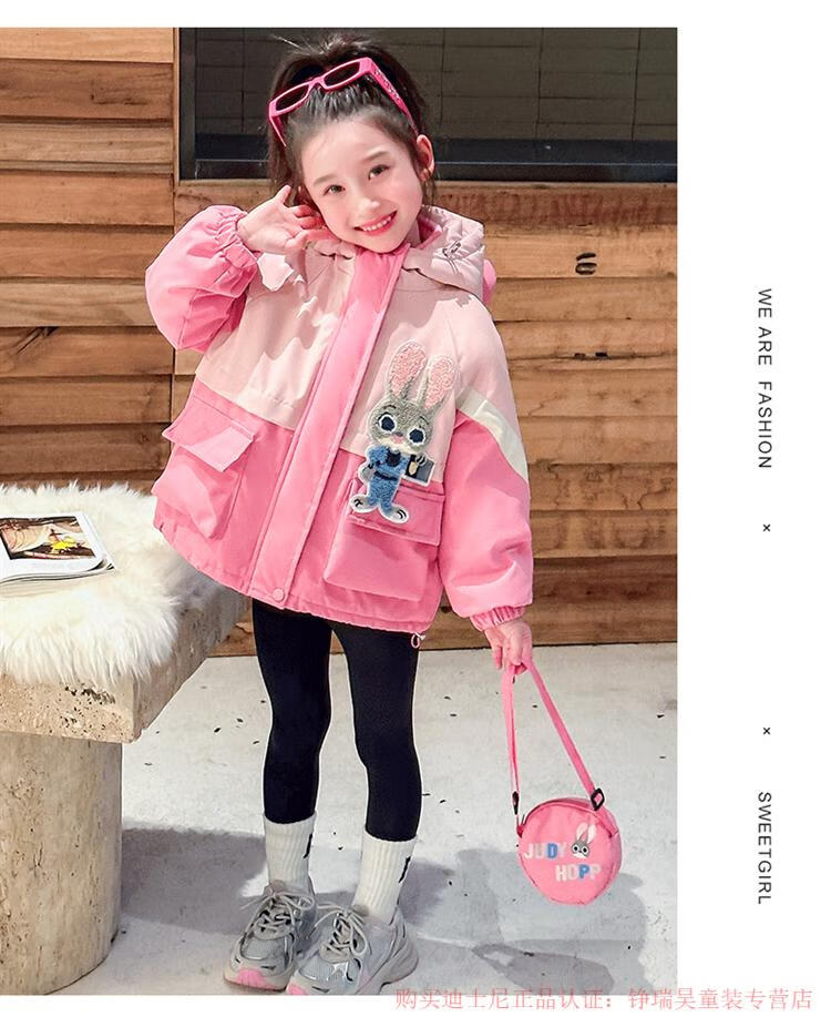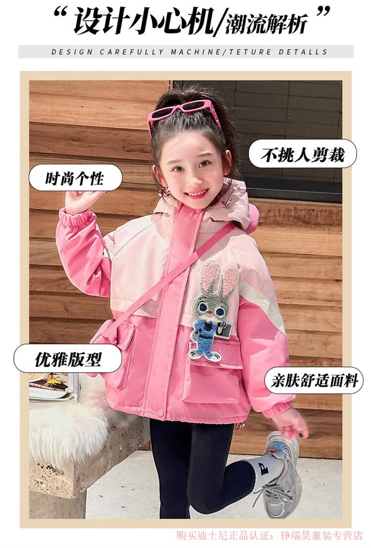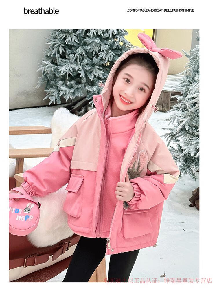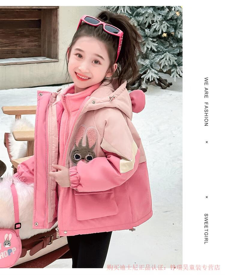 G.DUCKKIDS Girls Rabbit Police Jacket Three-in-one Padded Thickened Jacket Autumn and Winter 2025 New Children's Cotton Clothes Pink Jacket Padded Thickened 110