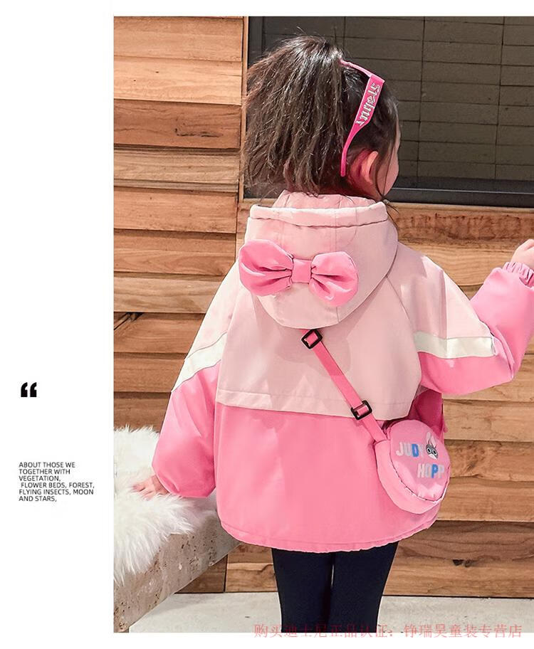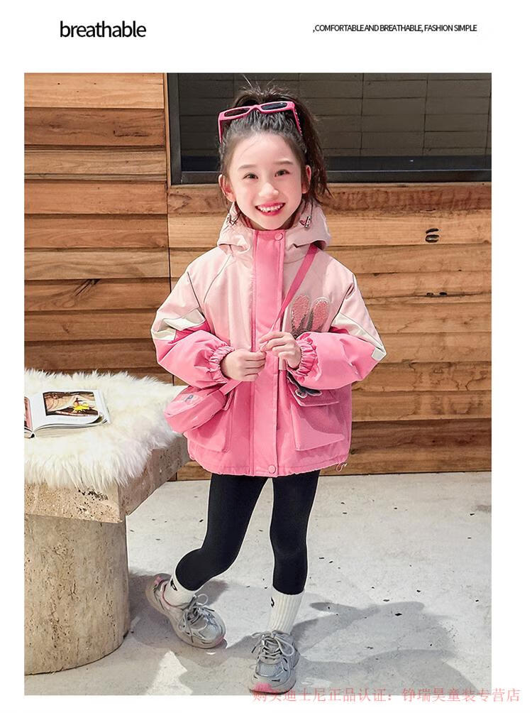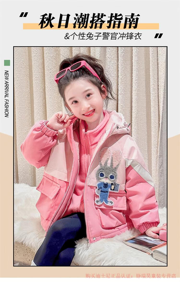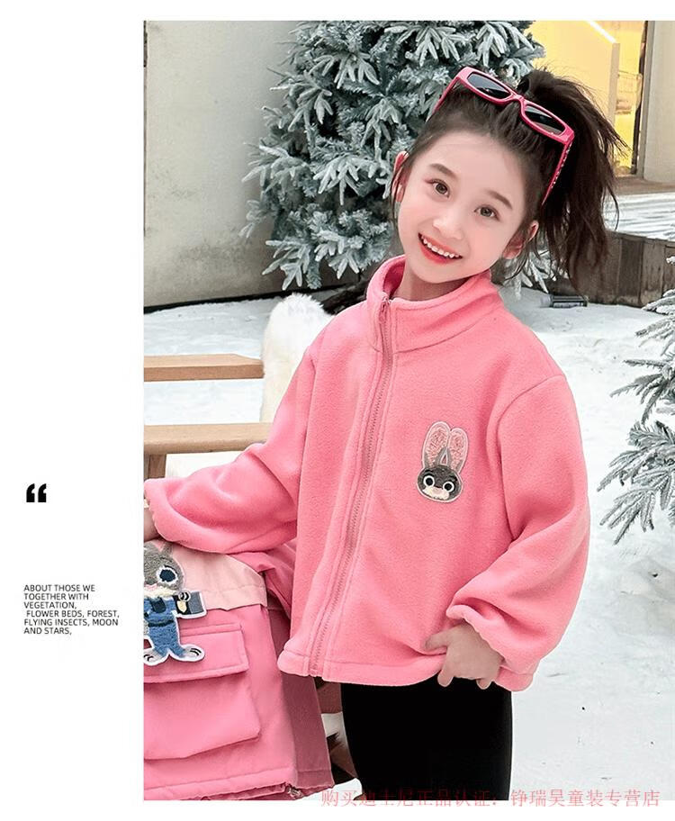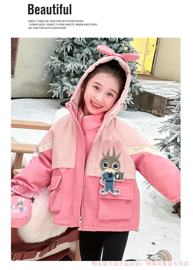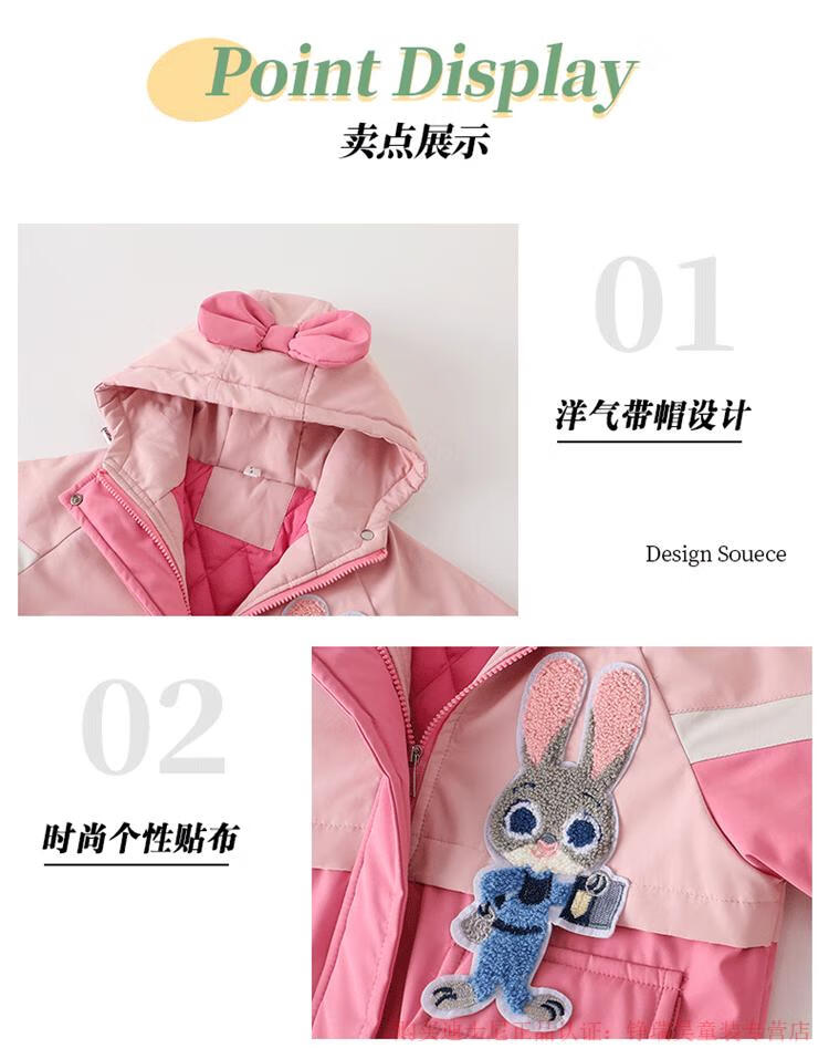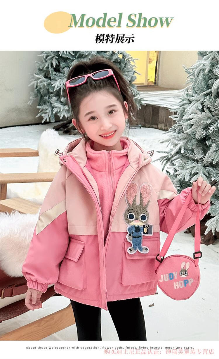 G.DUCKKIDS Girls Rabbit Police Jacket Three-in-one Padded Thickened Jacket Autumn and Winter 2025 New Children's Cotton Clothes Pink Jacket Padded Thickened 110