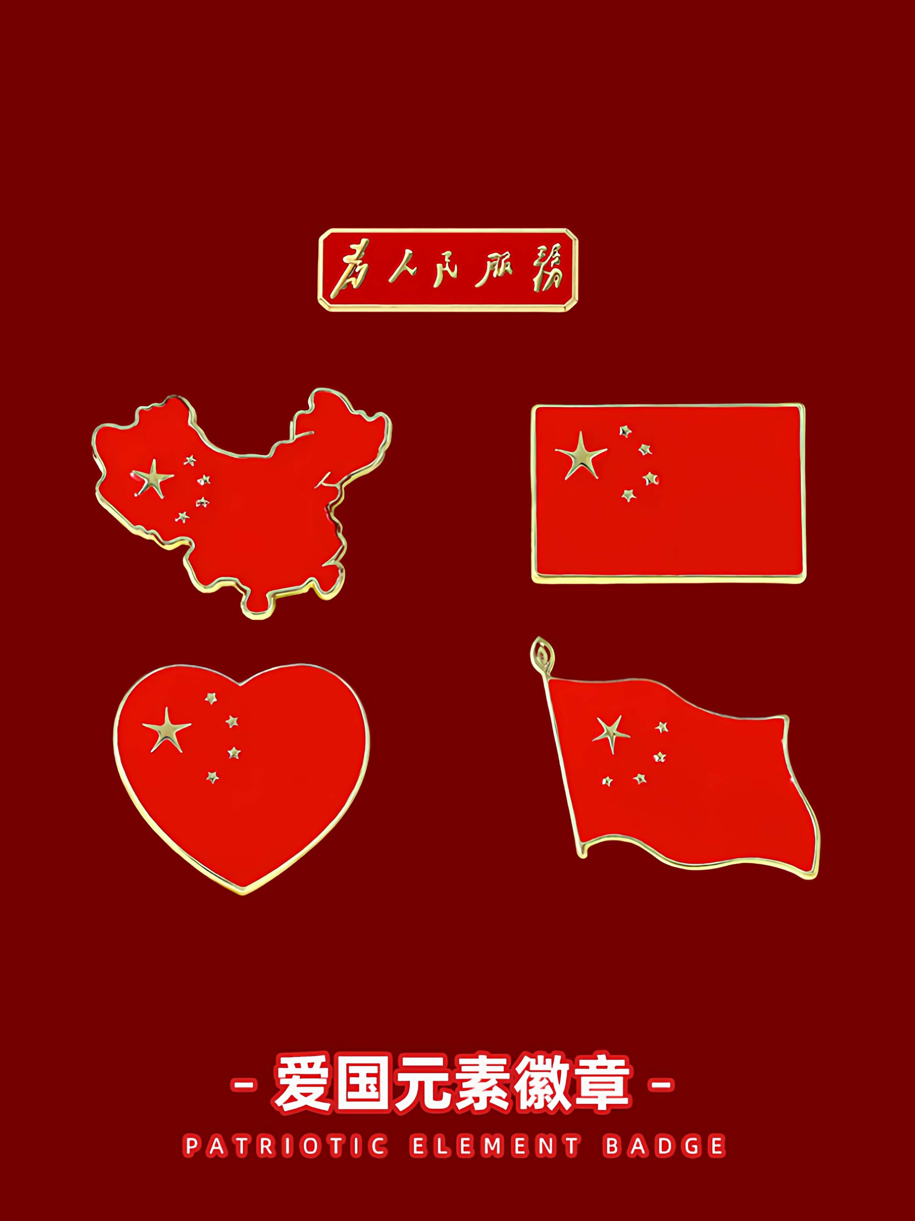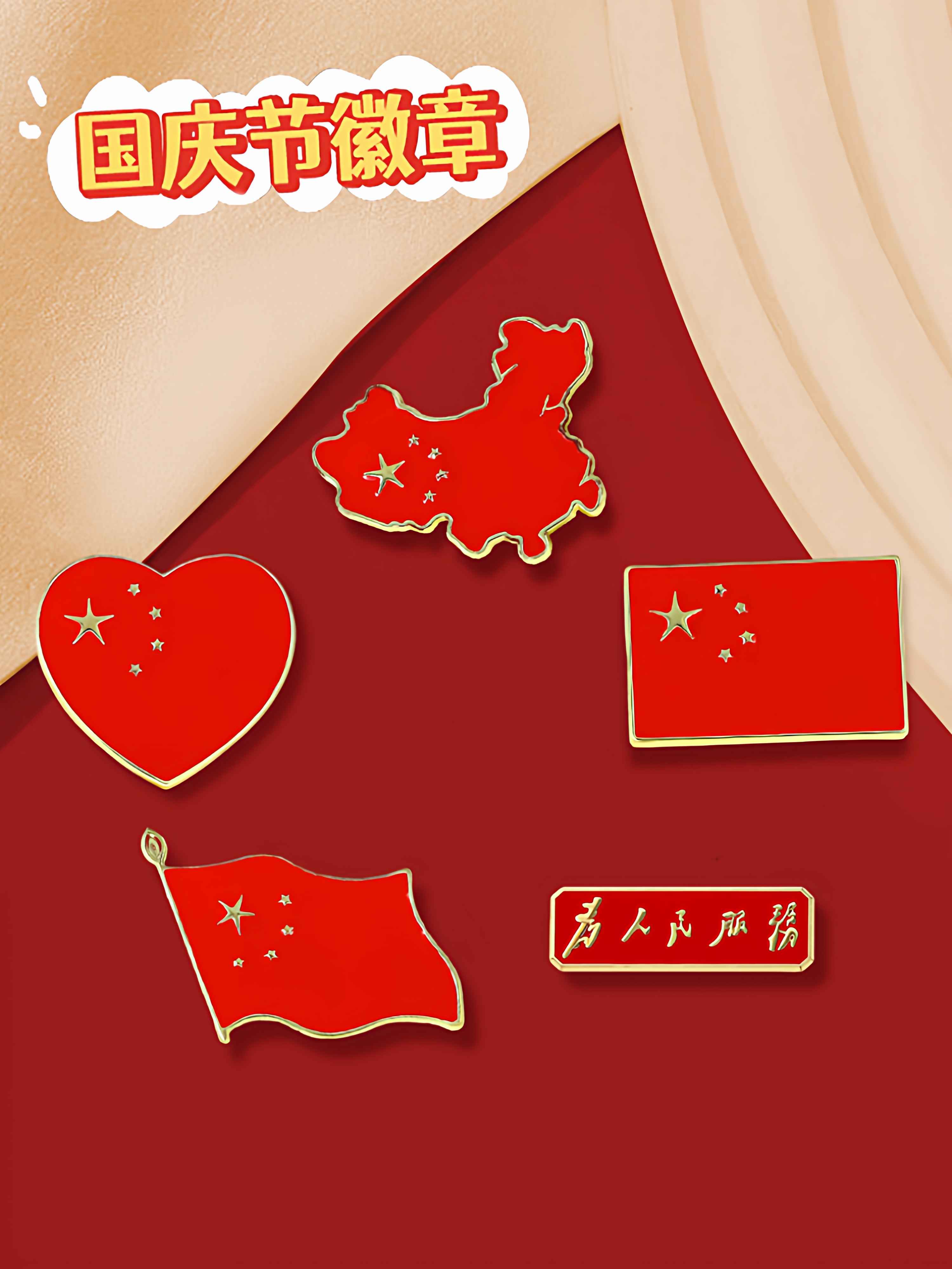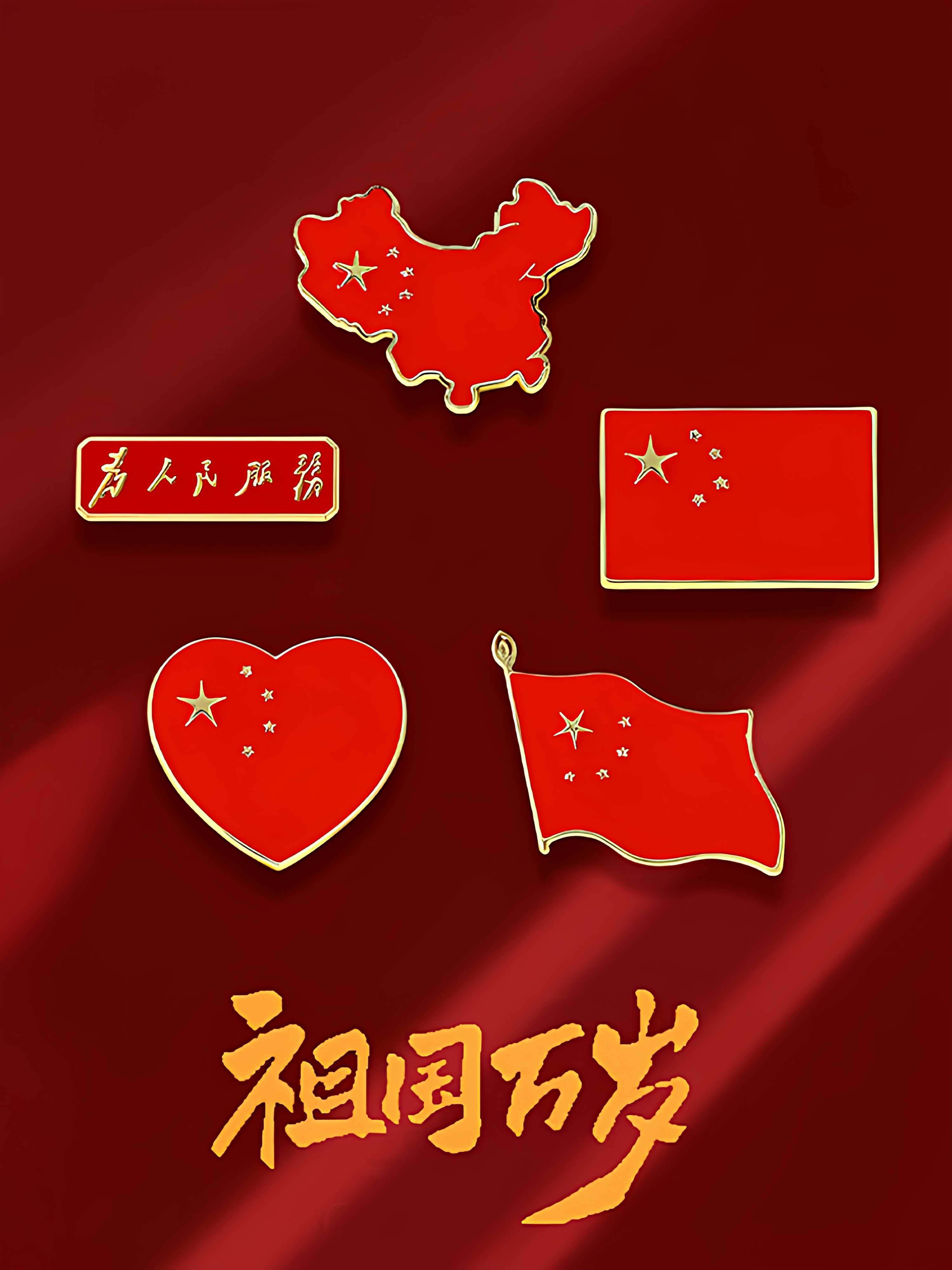 National Day Chinese Style Metal Commemorative Badge Patriotic Text Series Brooch Red Sun Tiananmen Backpack Ornament Patriotic Badge Flag-1