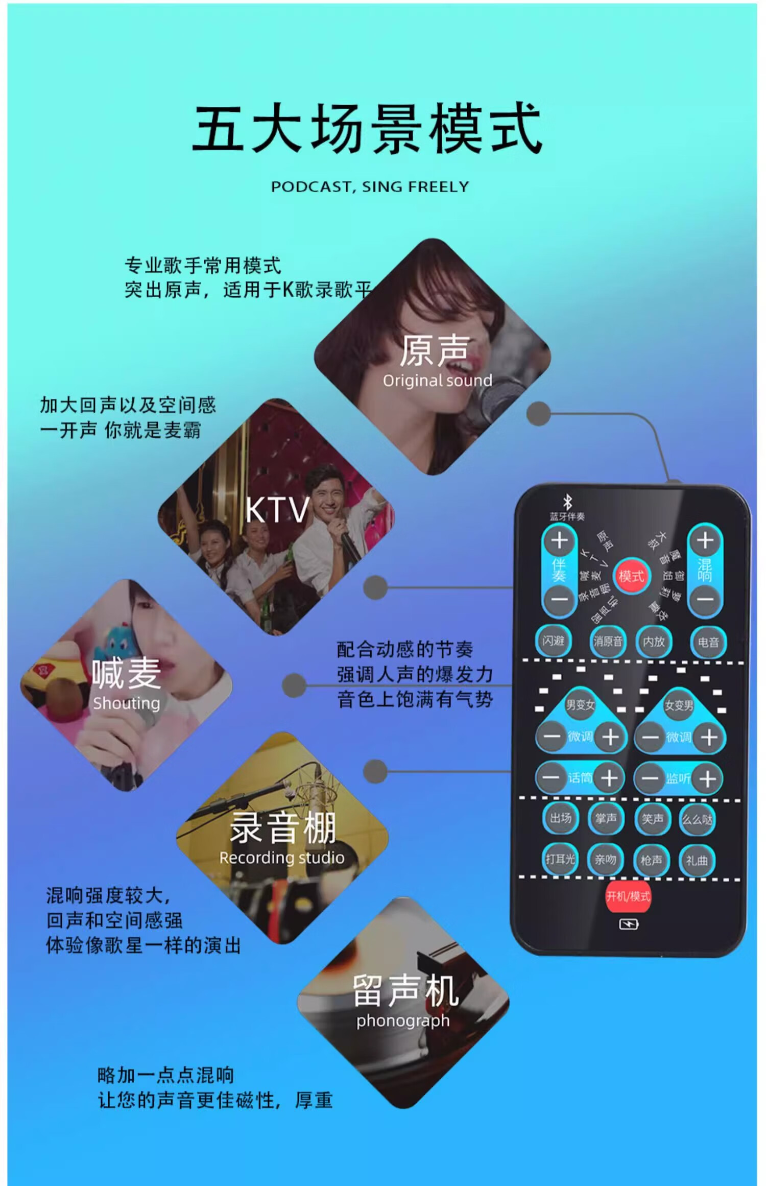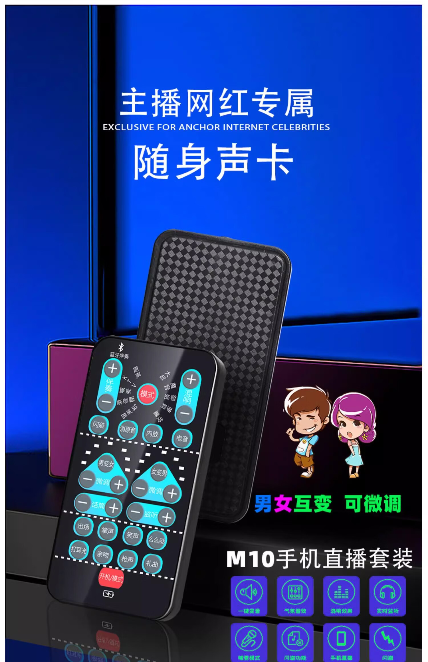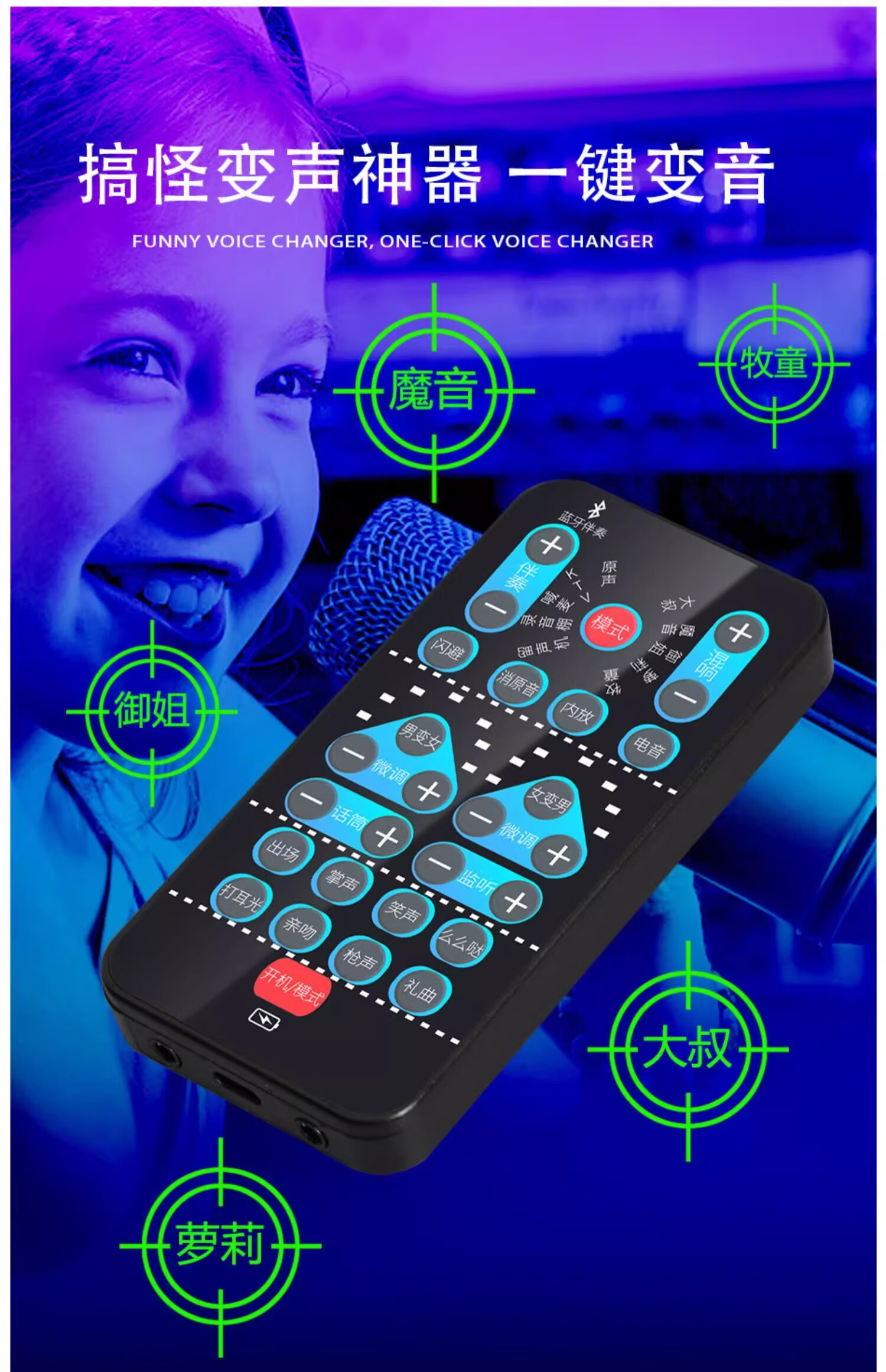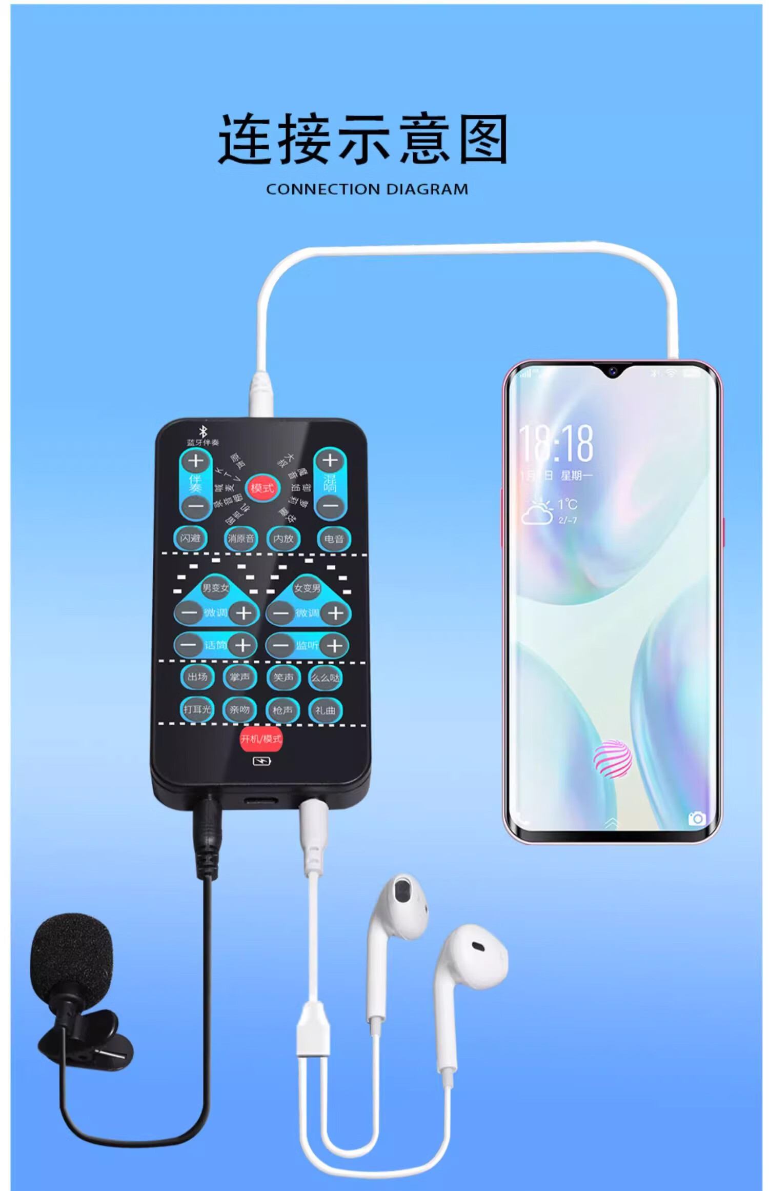 OEING voice changer, mobile phone changes from male to female, real-time voice changing, sound card for making phone calls, portable microphone for eating chicken, e-sports game, voice chat, Bluetooth live sound card, black standard configuration, free charging cable + headphone cable + microphone + black connecting cable, portable microphone for phone games