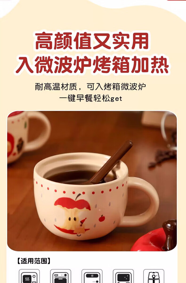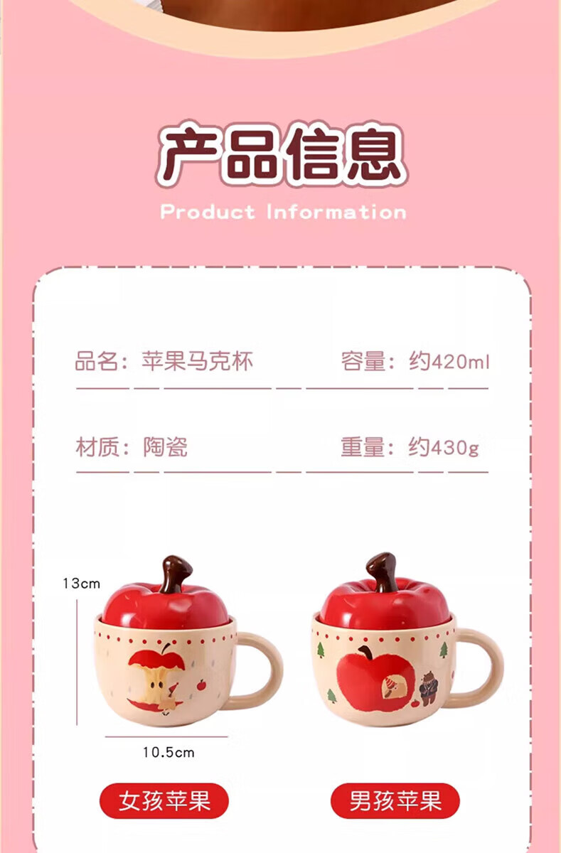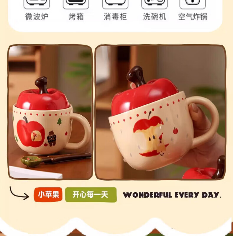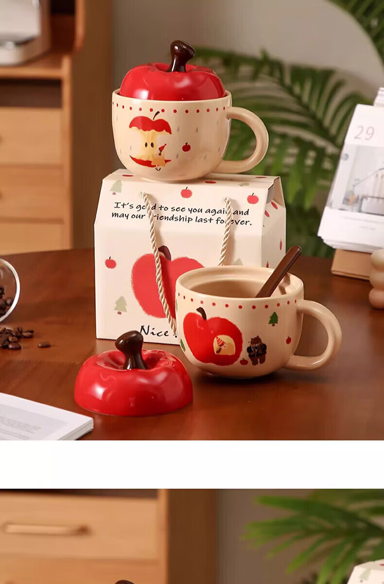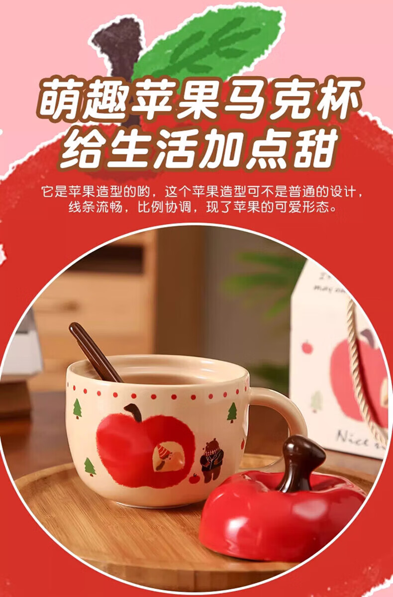Fei Yue Gamak Cup Women's Apple Ceramic Cup with Lid 520 Christmas Gift for Girls and Girlfriends Birthday Couple Cup Apple Bear Mug Spoon Gift Box
