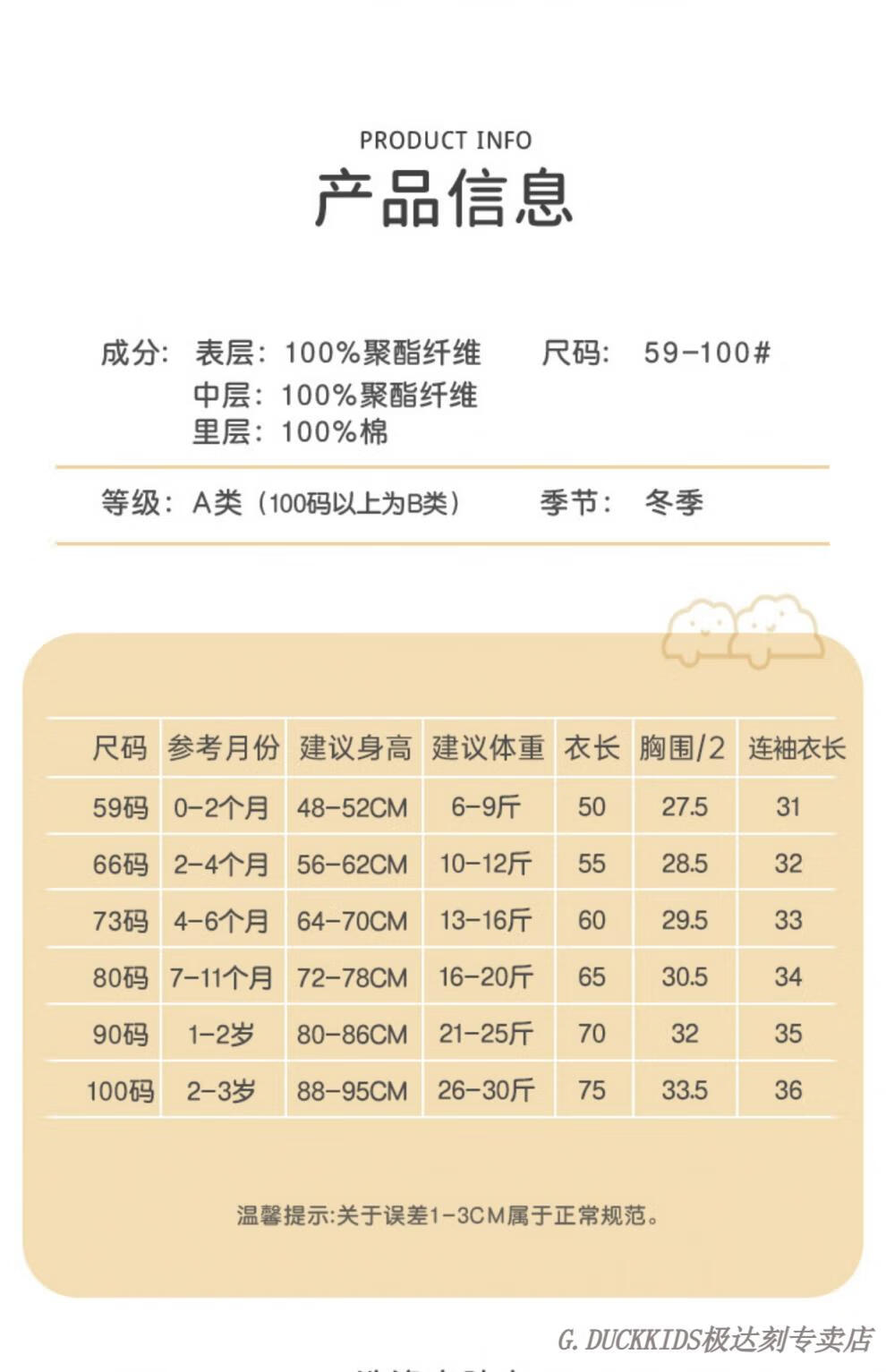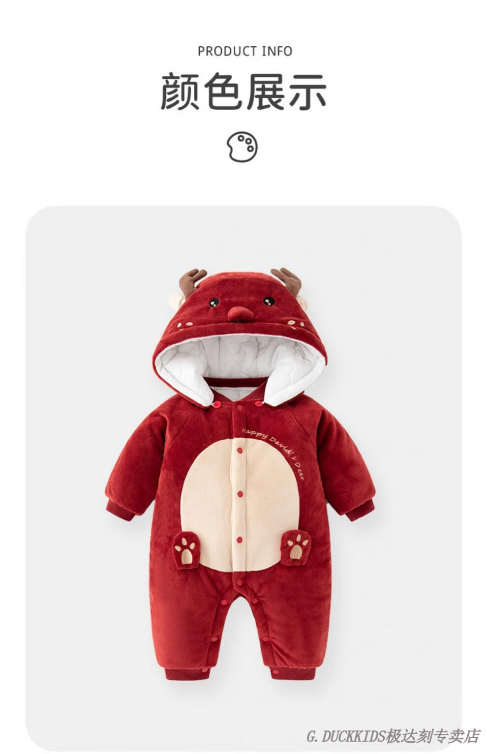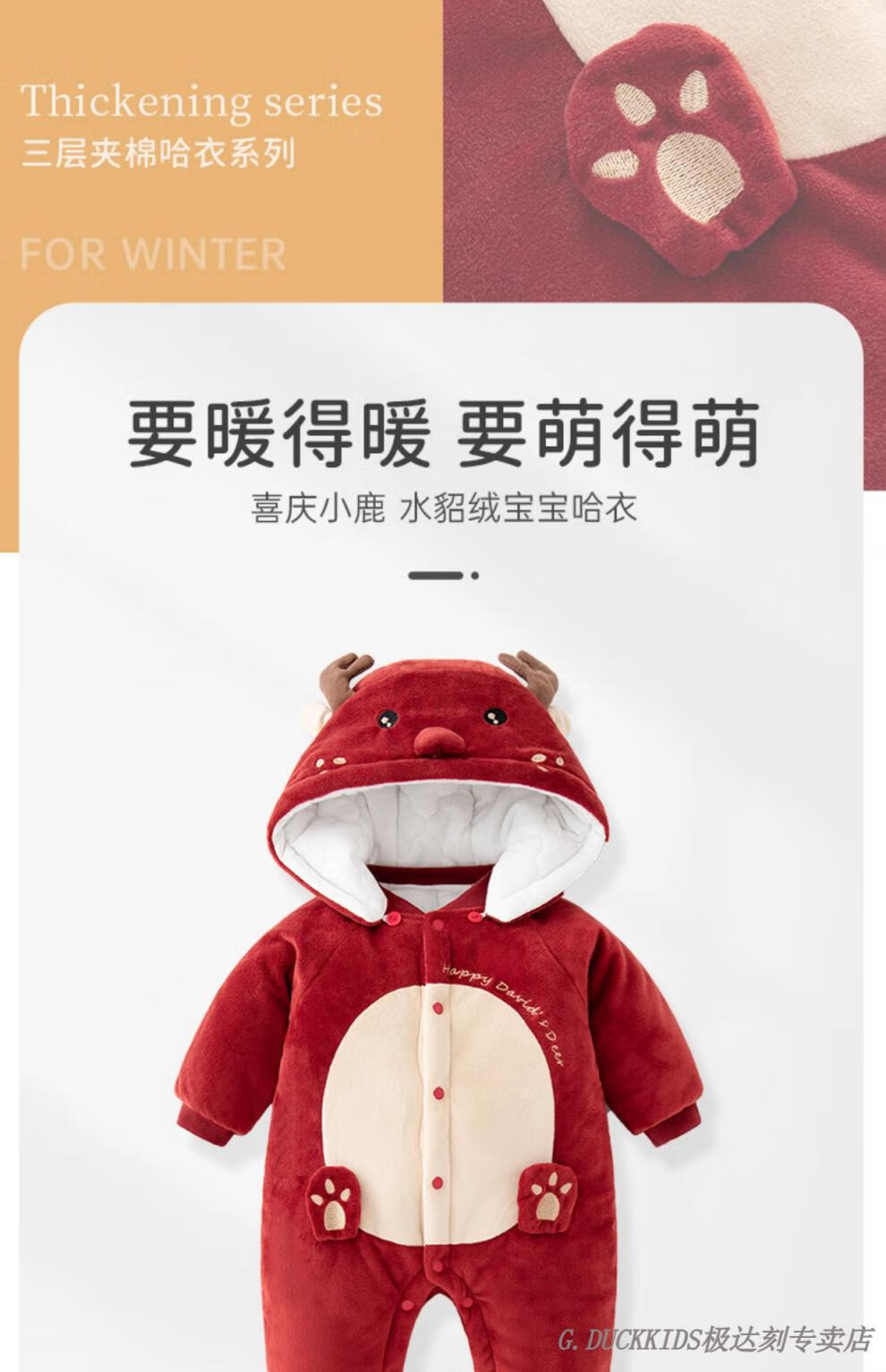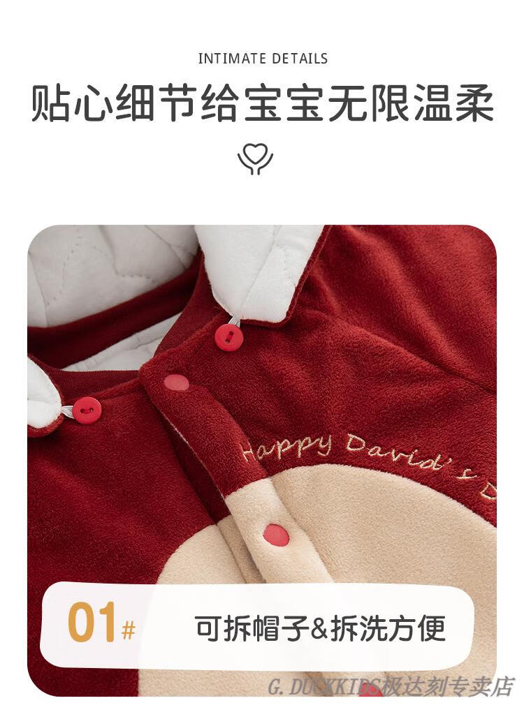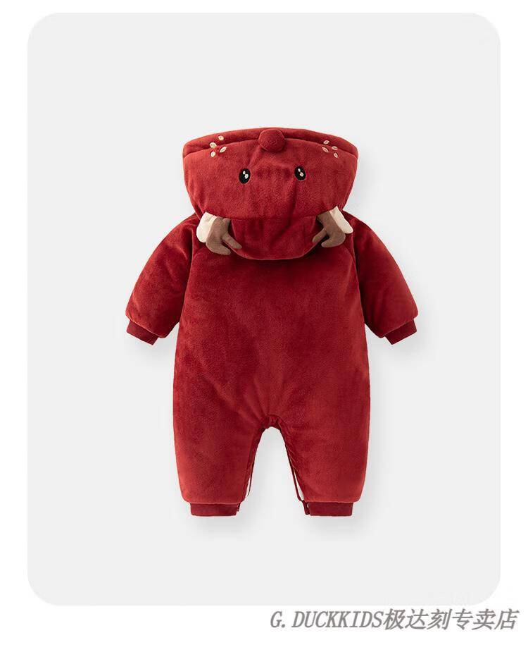 G.duck little yellow duck baby jumpsuit winter quilted plus velvet cotton clothes baby clothes thickened winter clothes for outings to keep warm and festive warm little deer (mink velvet) 59 cm