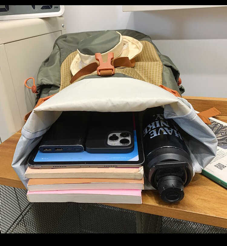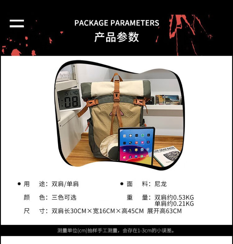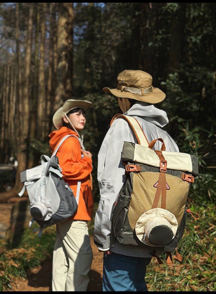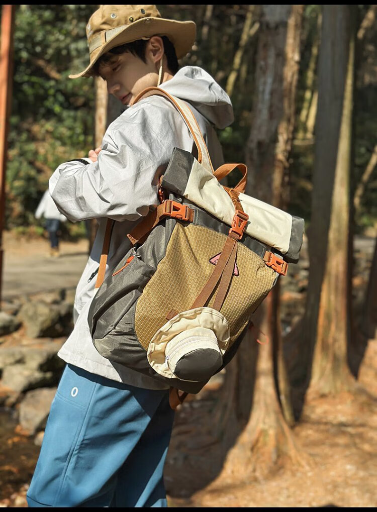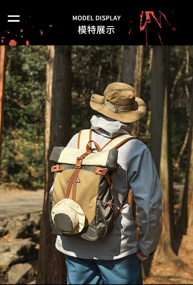 Ershanji Sports Outdoor Hiking Mountain Cycling Motorcycle Backpack Folding Roll Top Backpack Men's Functional Wind Travel Backpack Outdoor Mountaineering Bag Green - Double Back