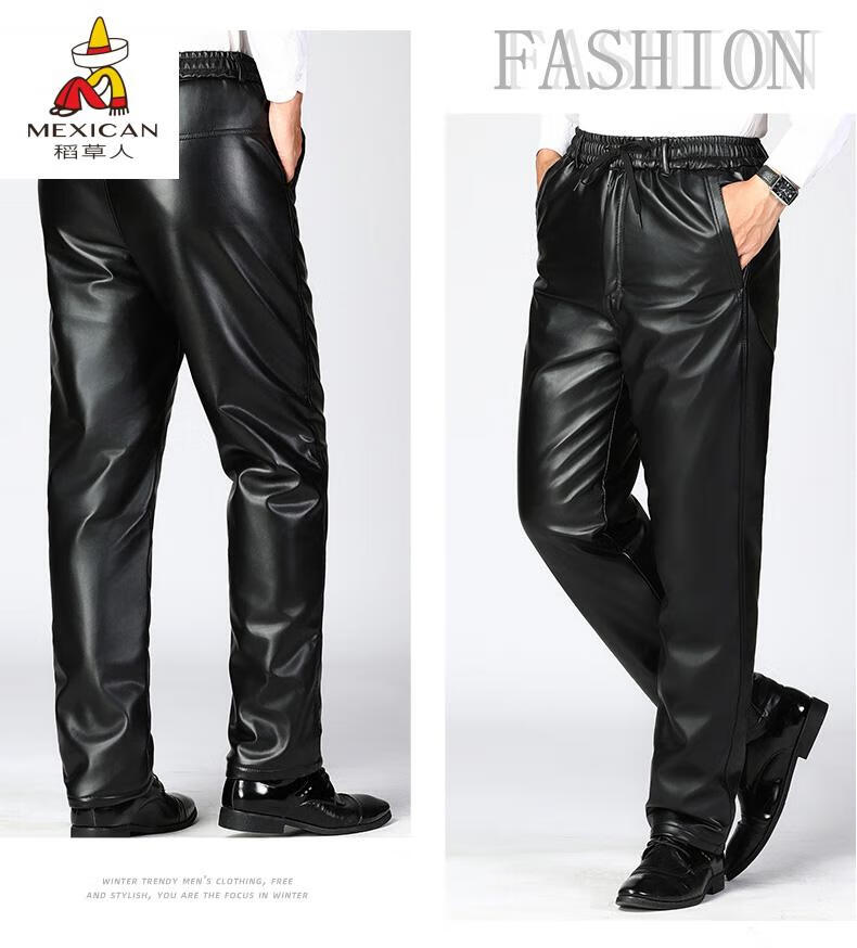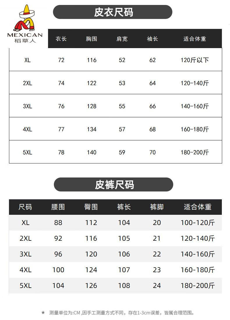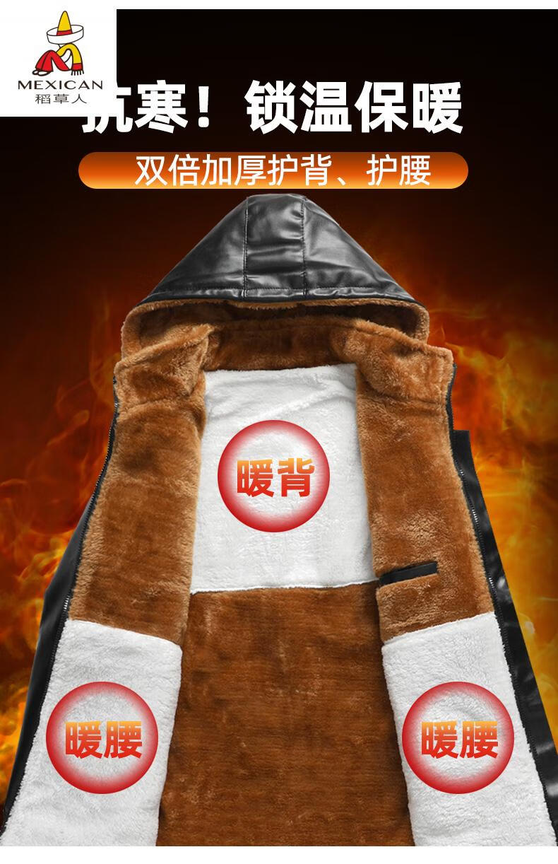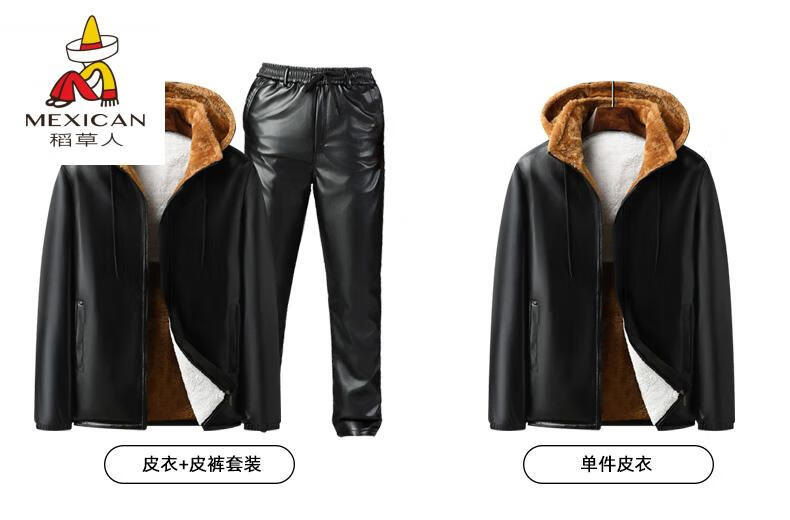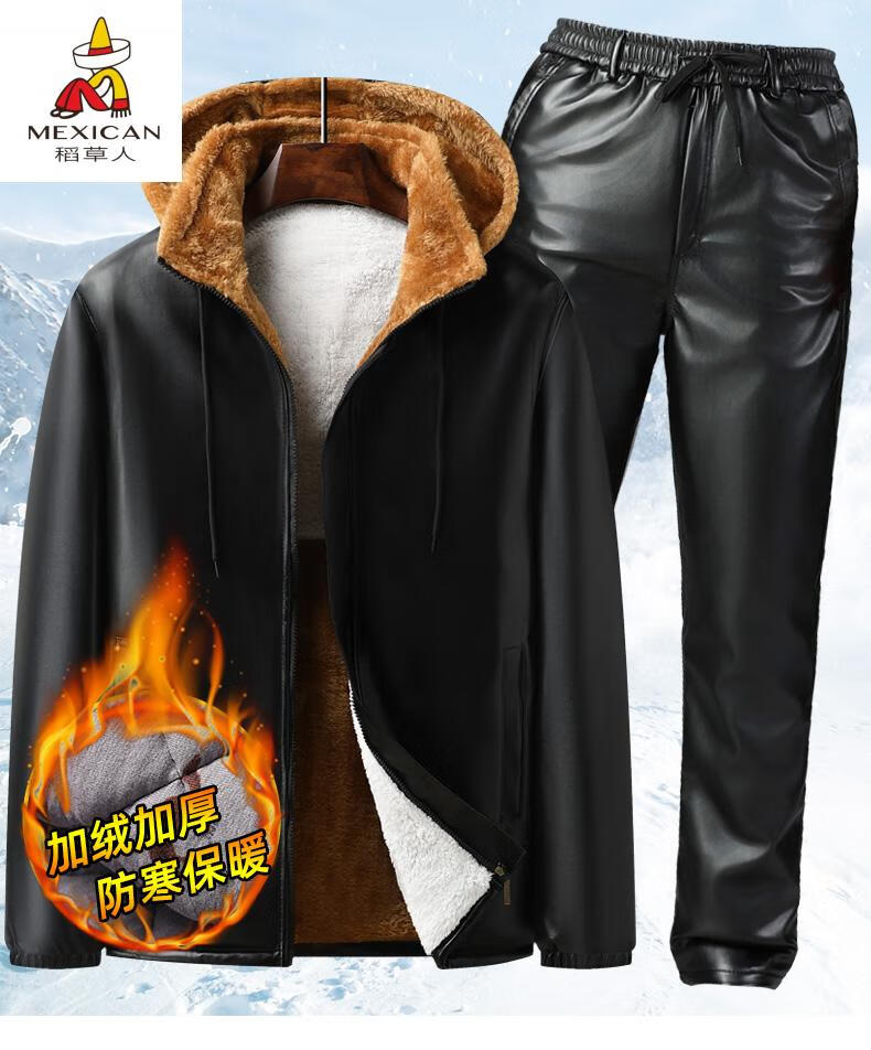 Scarecrow (MEXICAN) Men's Leather Jacket and Leather Pants Suit Plus Velvet Thickened Windproof, Warm and Waterproof Motorcycle and Motorcycle Driving Takeaway Work Clothes Leather Jacket + Semi-Elastic Leather Pants XL Recommended Weight 95120Jin Jin is equal to 0.5kg