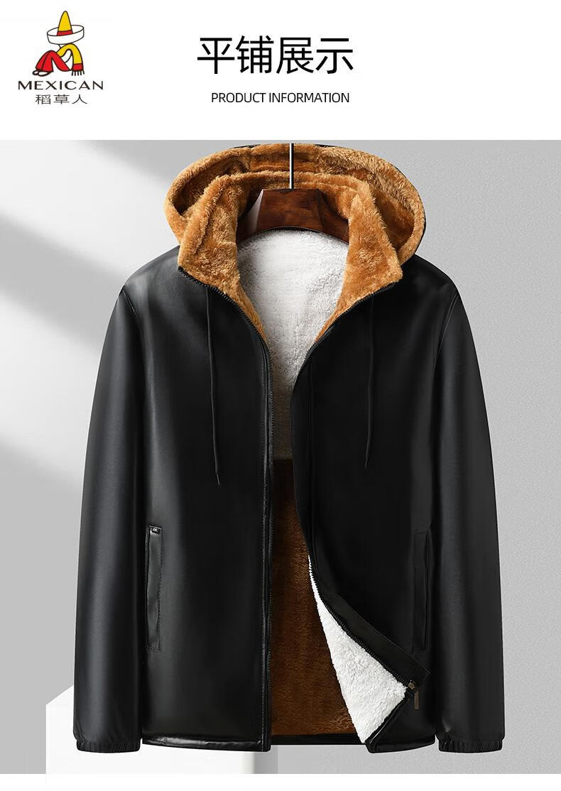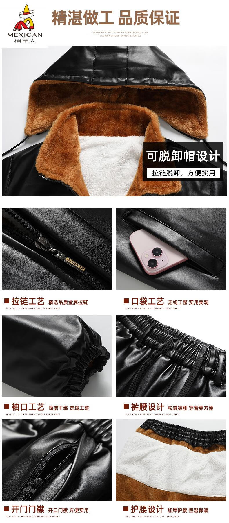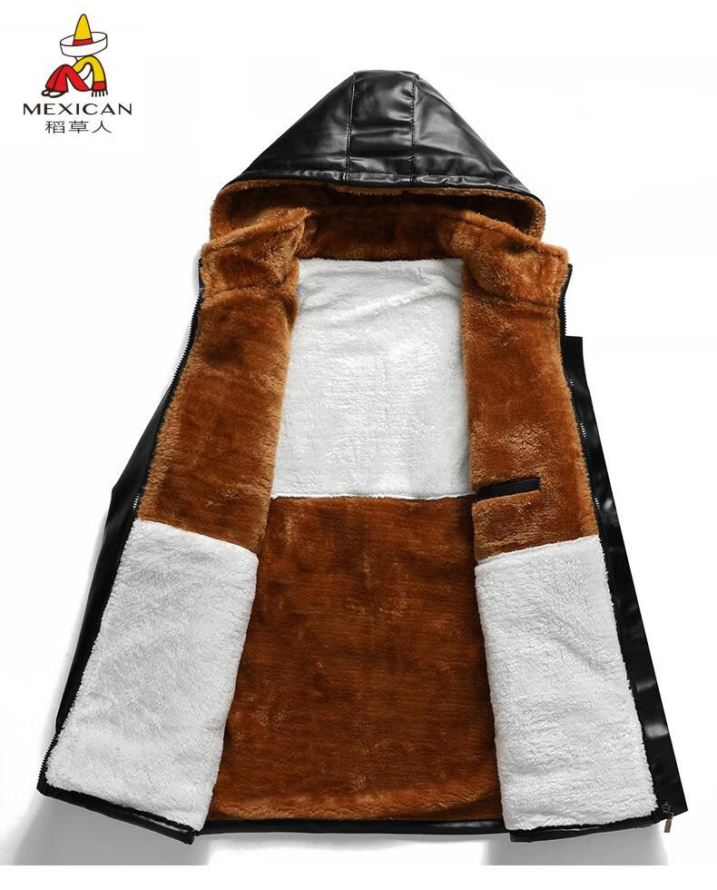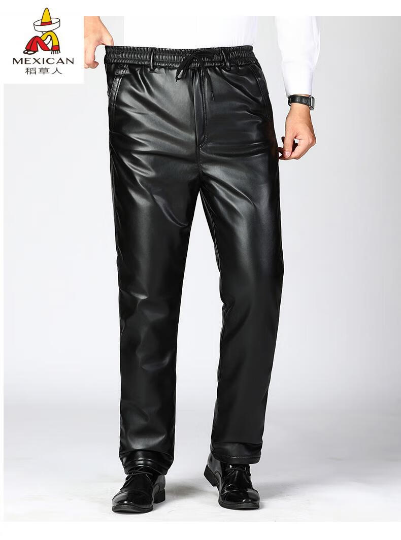 Scarecrow (MEXICAN) Men's Leather Jacket and Leather Pants Suit Plus Velvet Thickened Windproof, Warm and Waterproof Motorcycle and Motorcycle Driving Takeaway Work Clothes Leather Jacket + Semi-Elastic Leather Pants XL Recommended Weight 95120Jin Jin is equal to 0.5kg