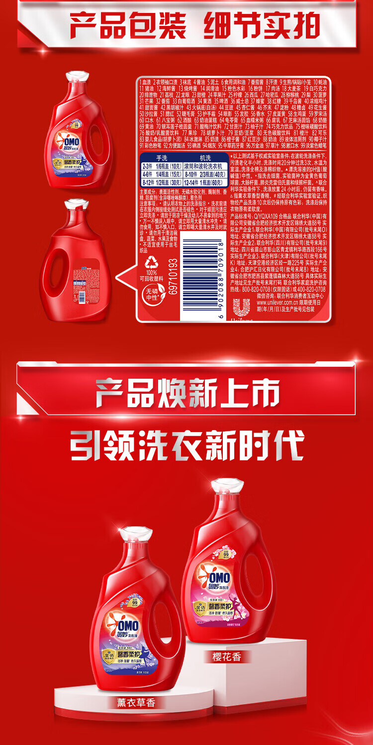 Omi Laundry Detergent, Remove Bacteria and Mites, Long-lasting Fragrance 3-in-1, Gold-Containing Natural Enzymes, Taste Pack, Lavender Fragrance 1.9KG