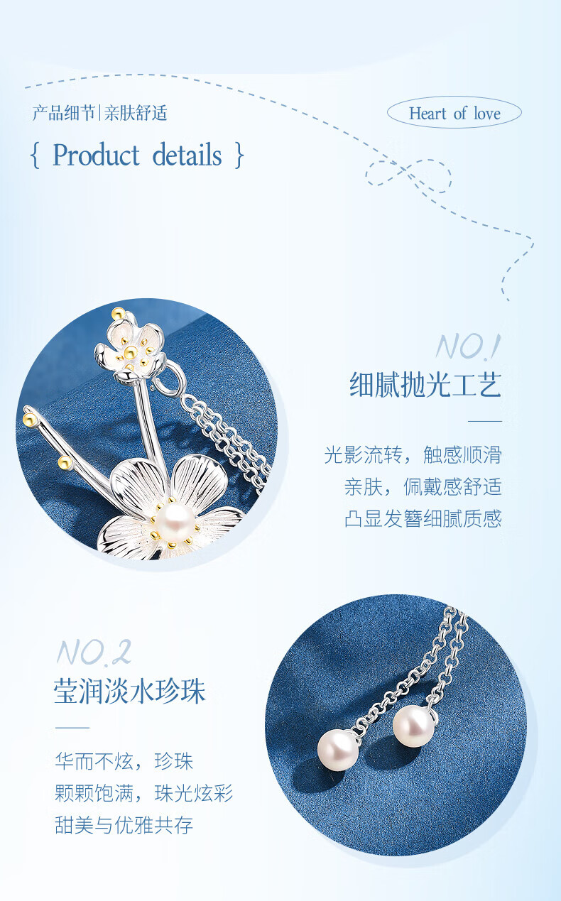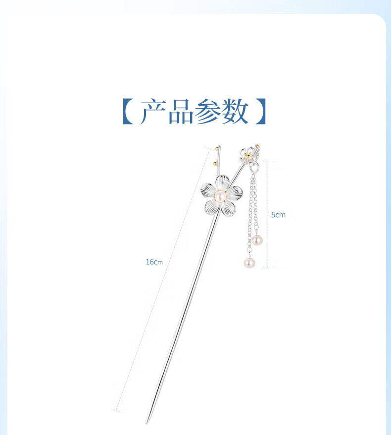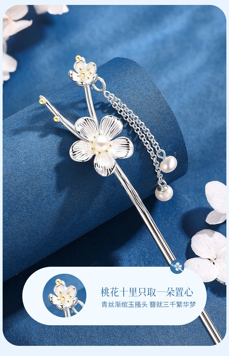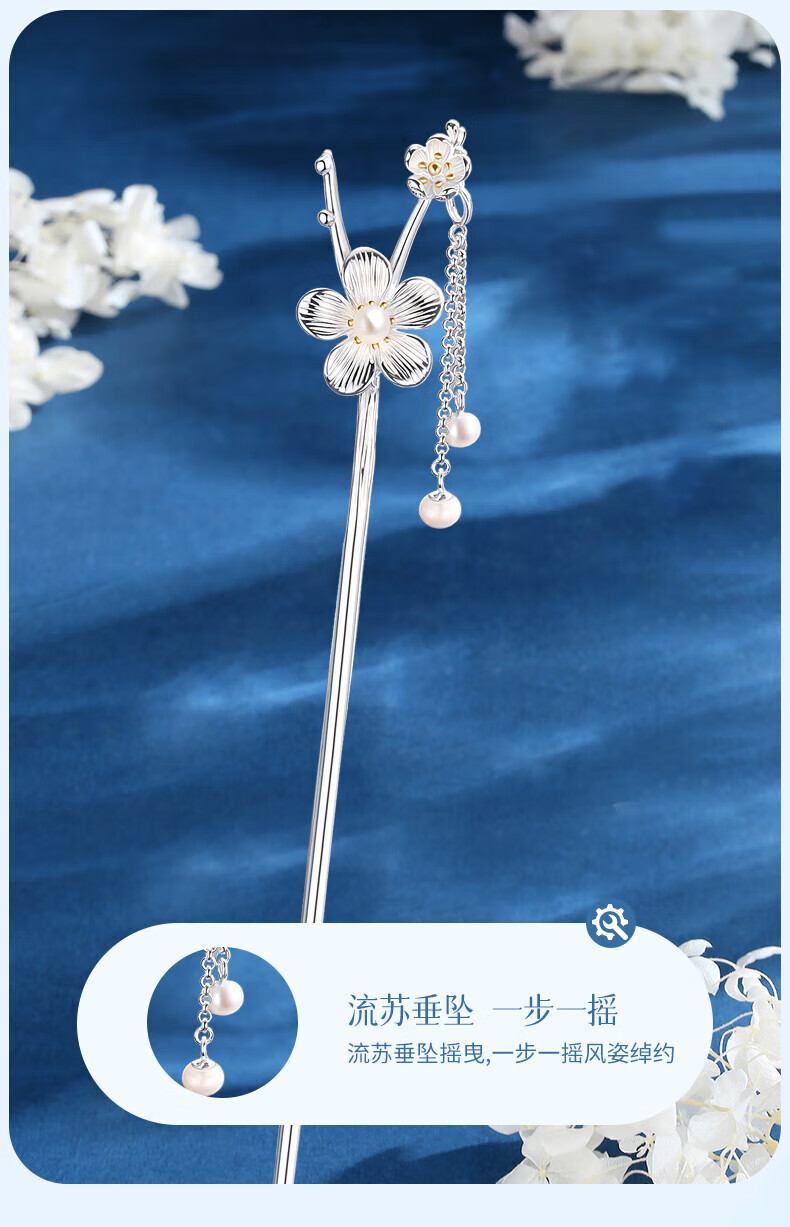 China Gold (CHINA GOLD) Pearl Hairpin Women's New Chinese Style Ancient Style Silver Hairpin Hair Accessory Birthday Gift for Girlfriend and Wife to Commemorate High-end Pearl Butterfly Peach Blossom Branch Tassel Hairpin
