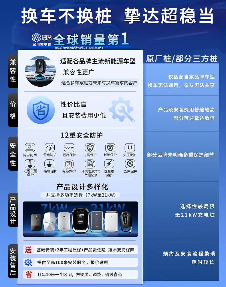 Zhida Guardian AC charging pile 7kw household new energy vehicle charger suitable for BYD Ask the World Huawei Xiaomi Tesla GAC Zhida Guardian stand-alone