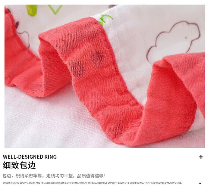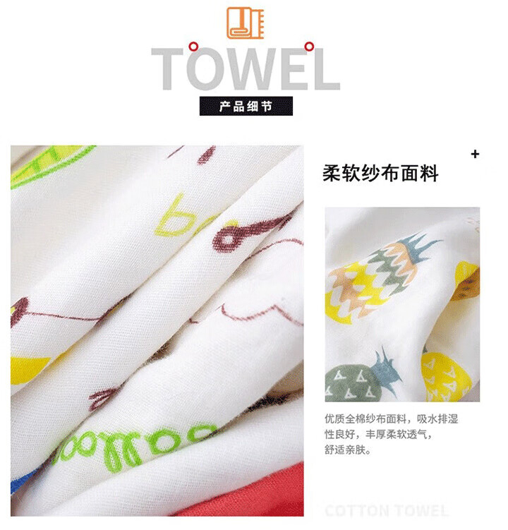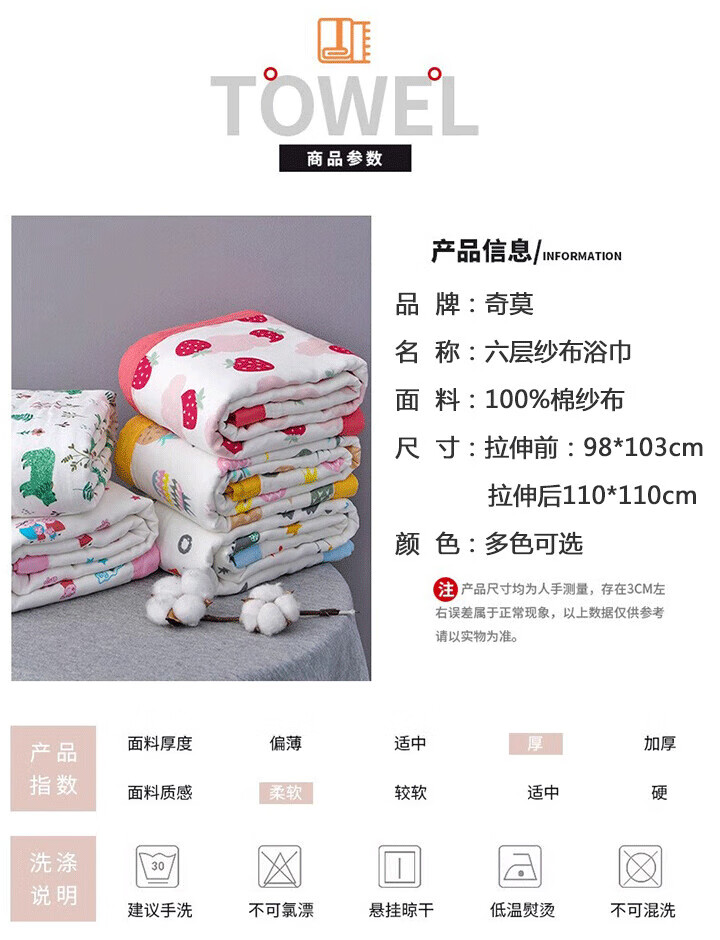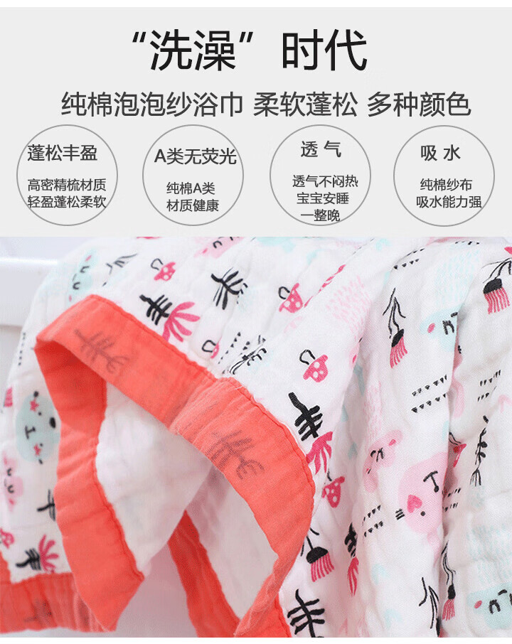 Chimo baby bath towel pure cotton gauze blanket soft absorbent newborn blanket baby bath children's towel quilt wide edge six-layer gauze bath towel-Strawberry 1 piece 105x105cm