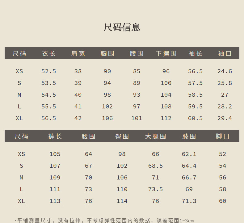Outseam (cm) 99 cm 101.5 cm 104 cm 106.5 cm 109 cm
