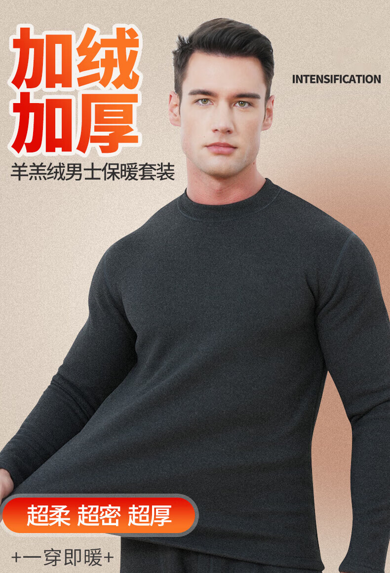 Yalu Thermal Underwear Men's Velvet Thickened Autumn Clothes and Autumn Pants Set Men's German Lamb Velvet Bottoming to Prevent Cold in Northeast Winter Dark Gray Suit Velvet Thickened XL Recommended 110-150Jin Jin equals 0.5 kg
