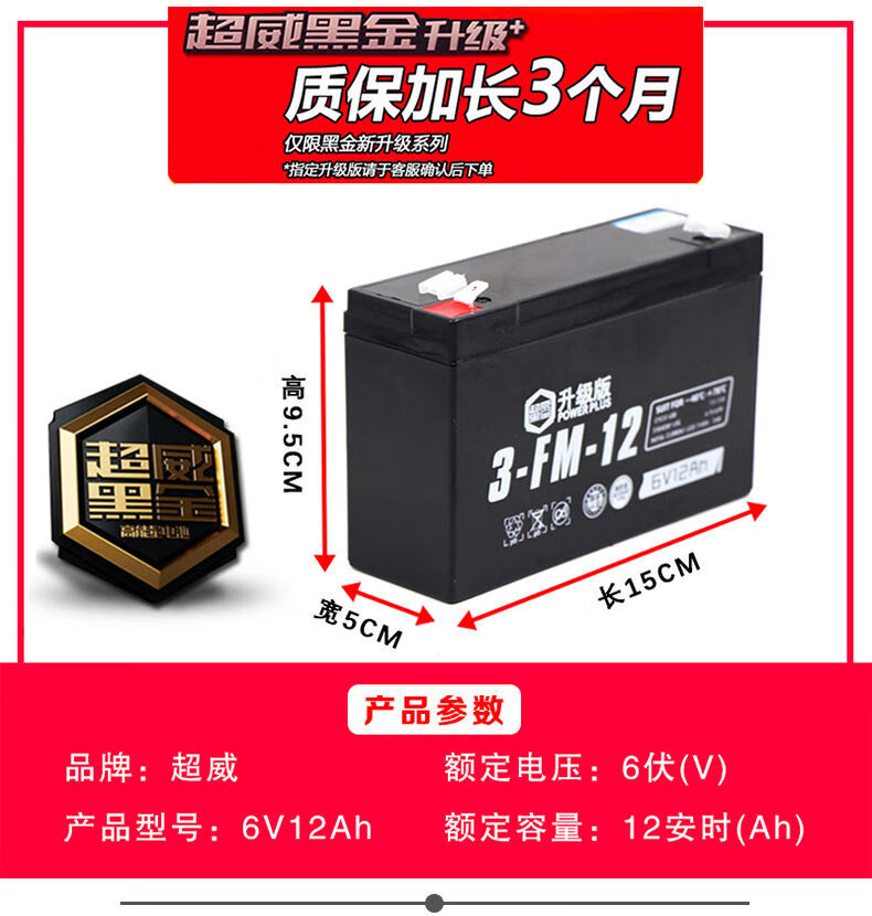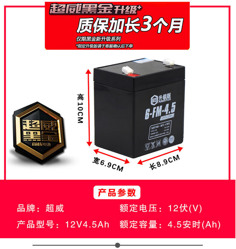 Stroller battery 6V 4A 45A7A10A12A children's tricycle electric toy car car battery Chaowei 12V12AH