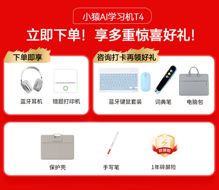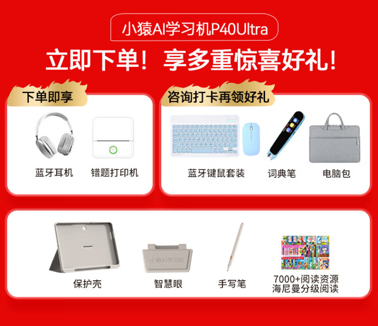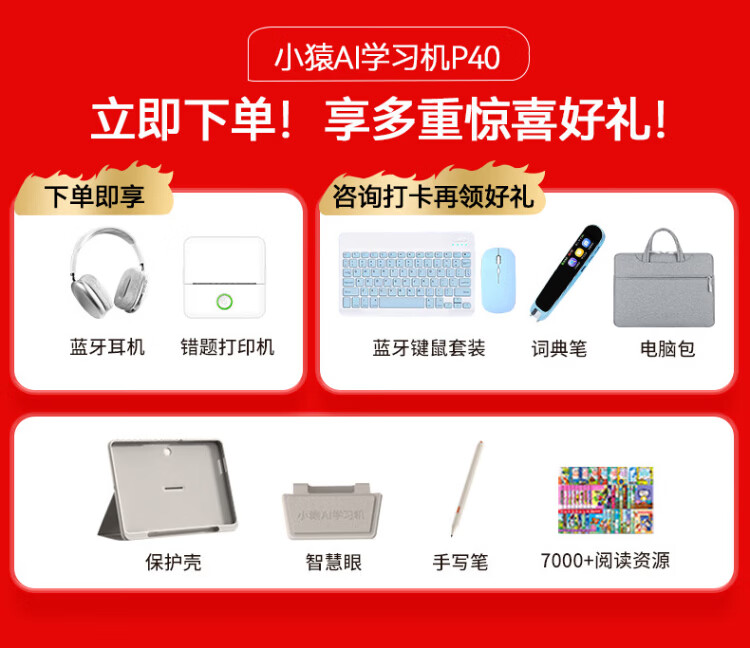 Xiaoyuan AI Learning Machine P40 P40Ultra Learning Machine Yuanfudao Student Tablet Eye Protection Screen Homework Tutoring and Learning Computer Primary School and High School General Subjects Consultation and Discount P40 Ultra/Free Bluetooth Headset + Wrong Question Printer + Keyboard, etc.