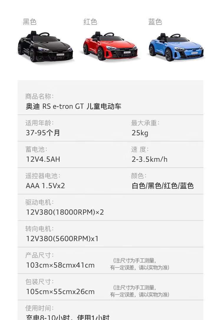 Audi/Audi RS e-tron GT children's electric car electric remote control toy car first-year gift genuine authorized white