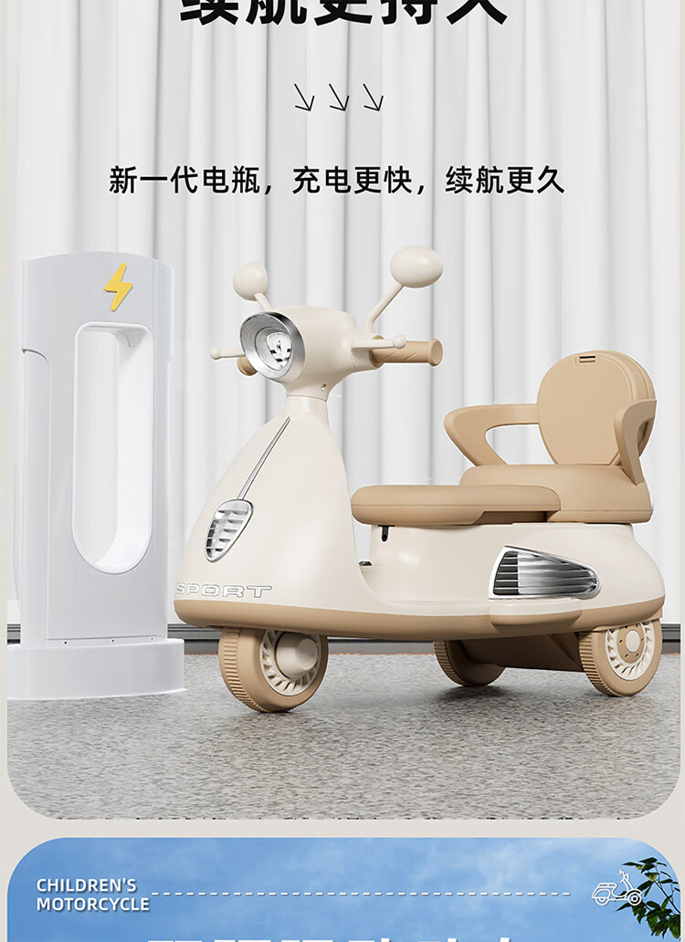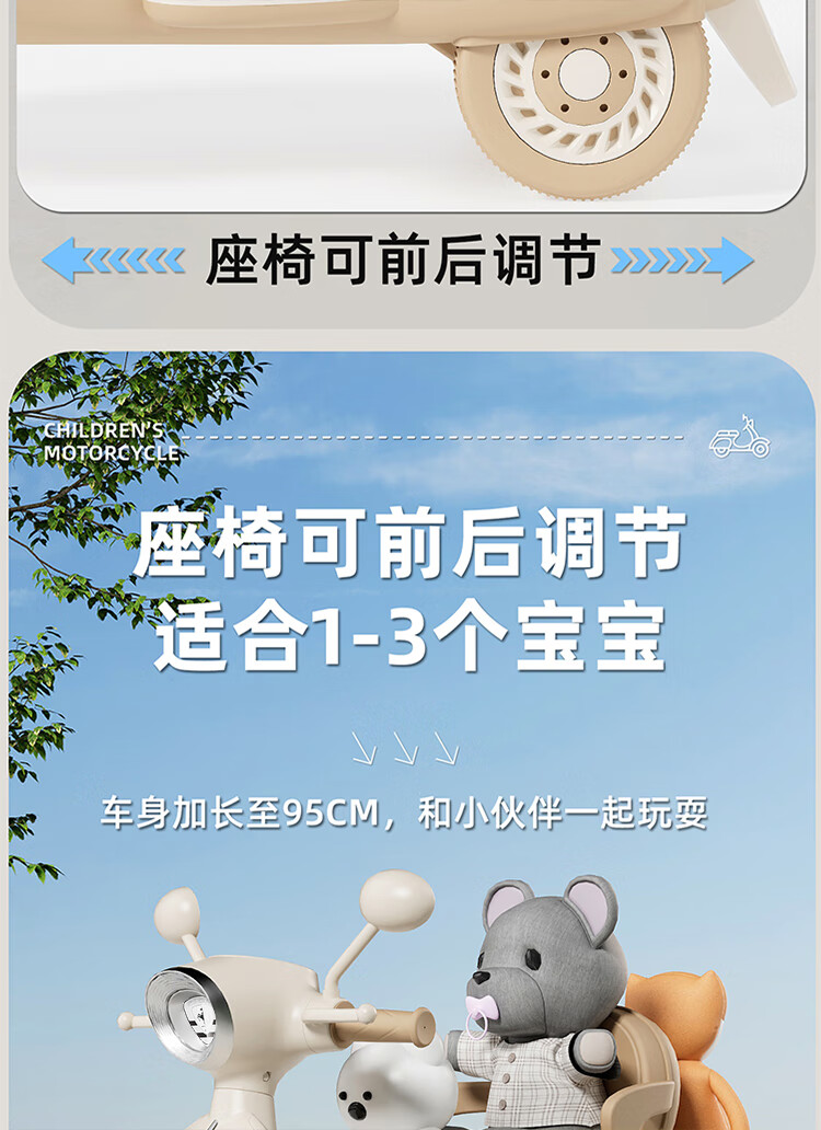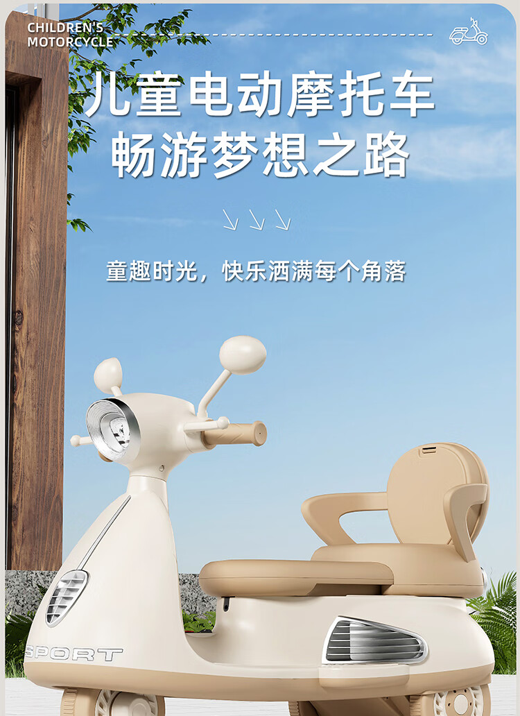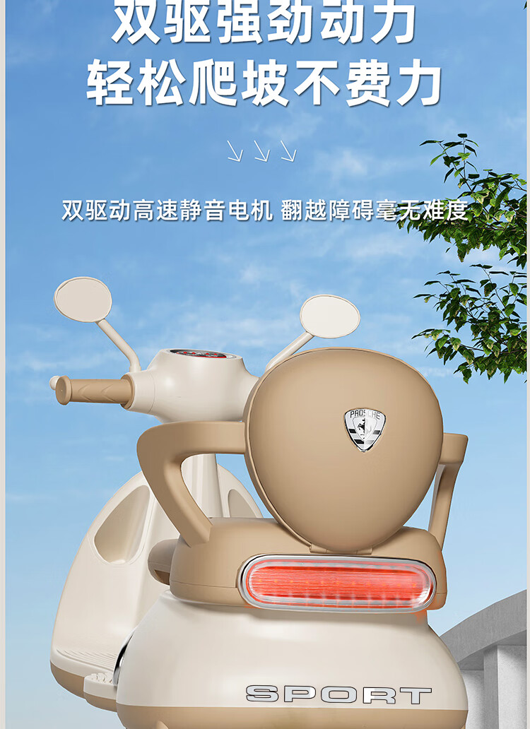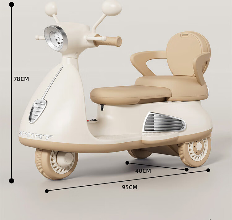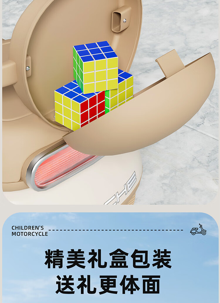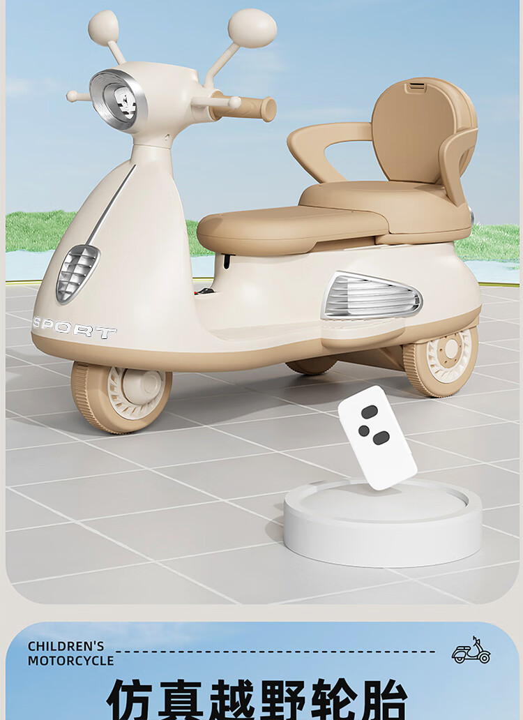 Beibele children's electric motorcycle can sit on a double remote-controlled tricycle and 1-6-year-old boys and girls can drive a toy car. Standard white 6V4 single drive + adjustable seat + early education music. Exquisite gift box packaging. Great gift.